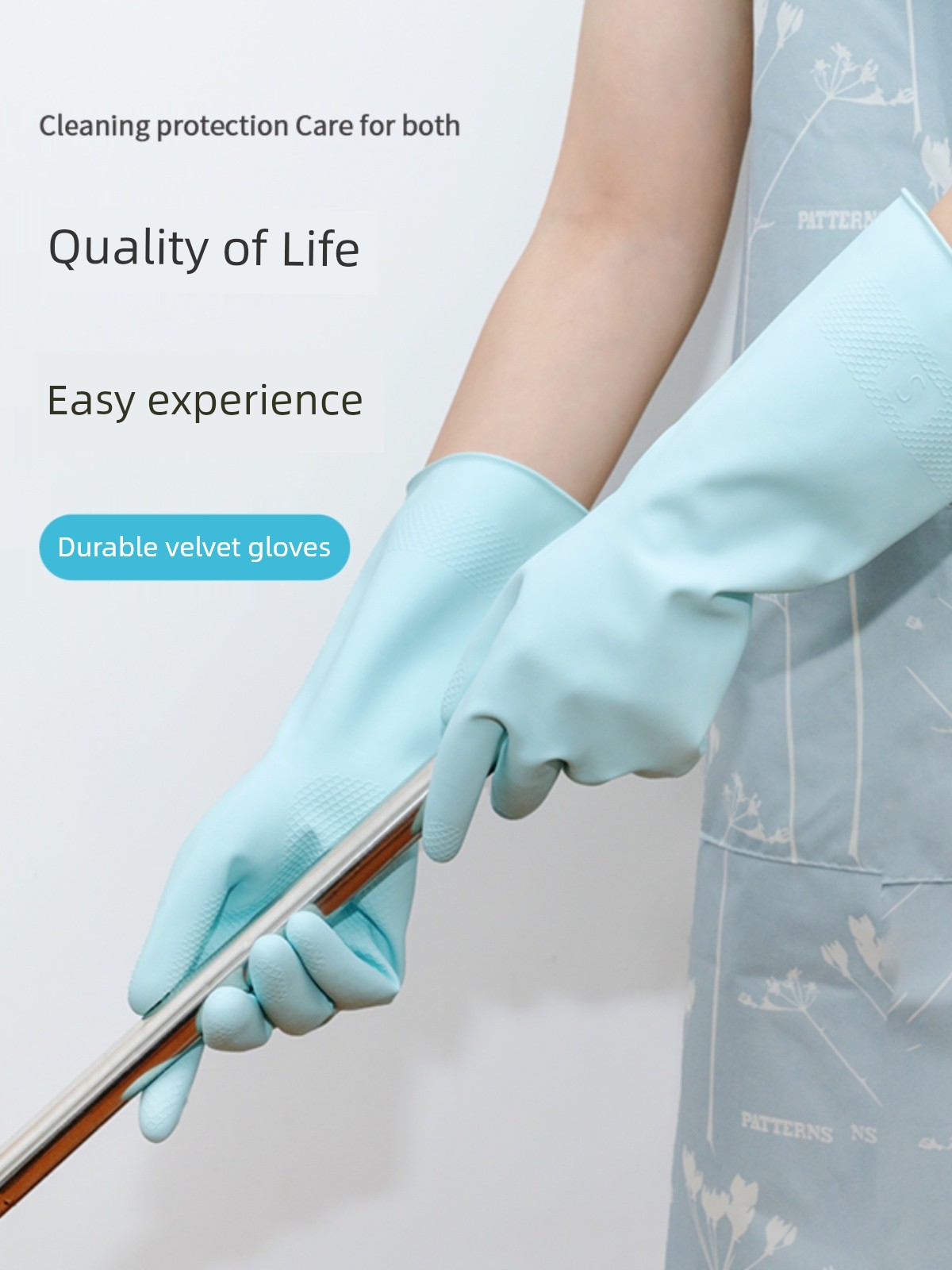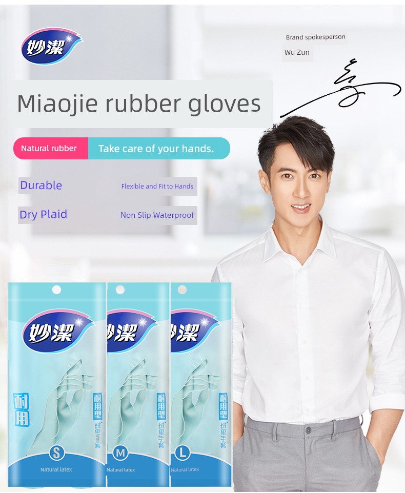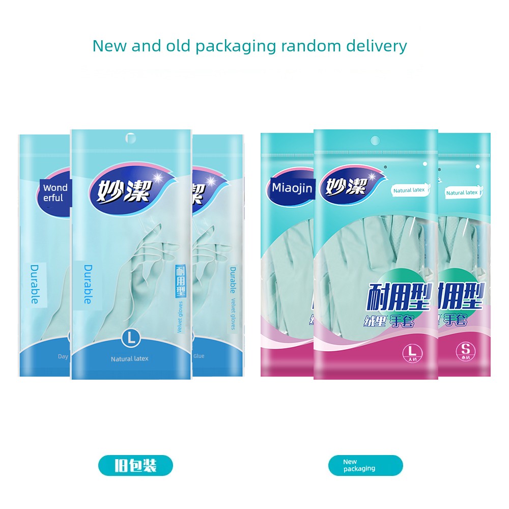 热卖妙洁洗碗手套家用洗衣服厨房家务耐用防水清洁橡胶耐磨绒里实惠装
