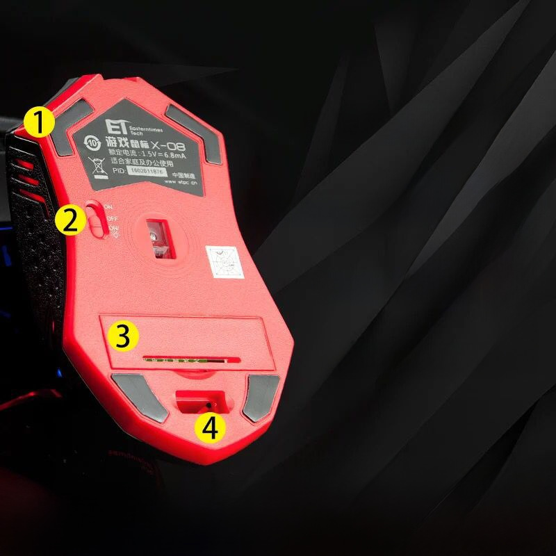 ET X-08诛魔 2.4Ghz 2400DPI 5档可调速 静音无线游戏鼠标 7键设计 蓝光/红光可选 智能自动断电 可开关LED灯光 原装正品 30米有效距离