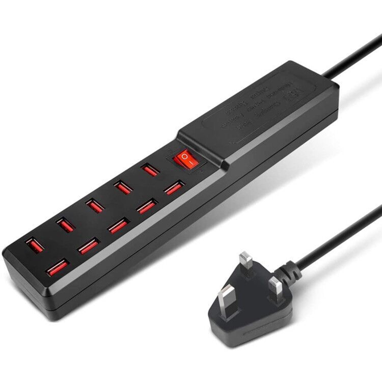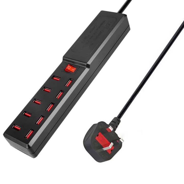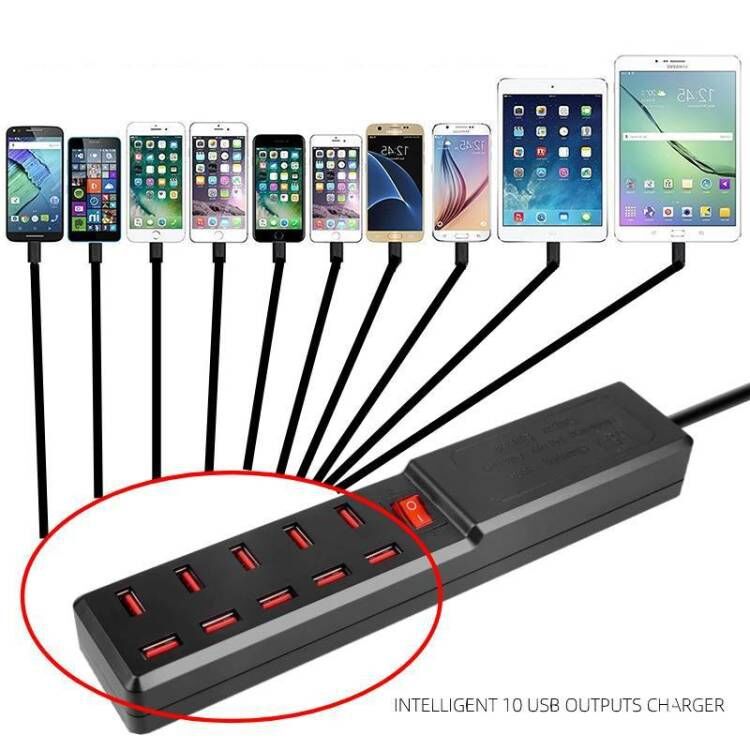 10- port USB charging port, 10 ports of 5V/2.4VA , can feed your hungry smart devices.