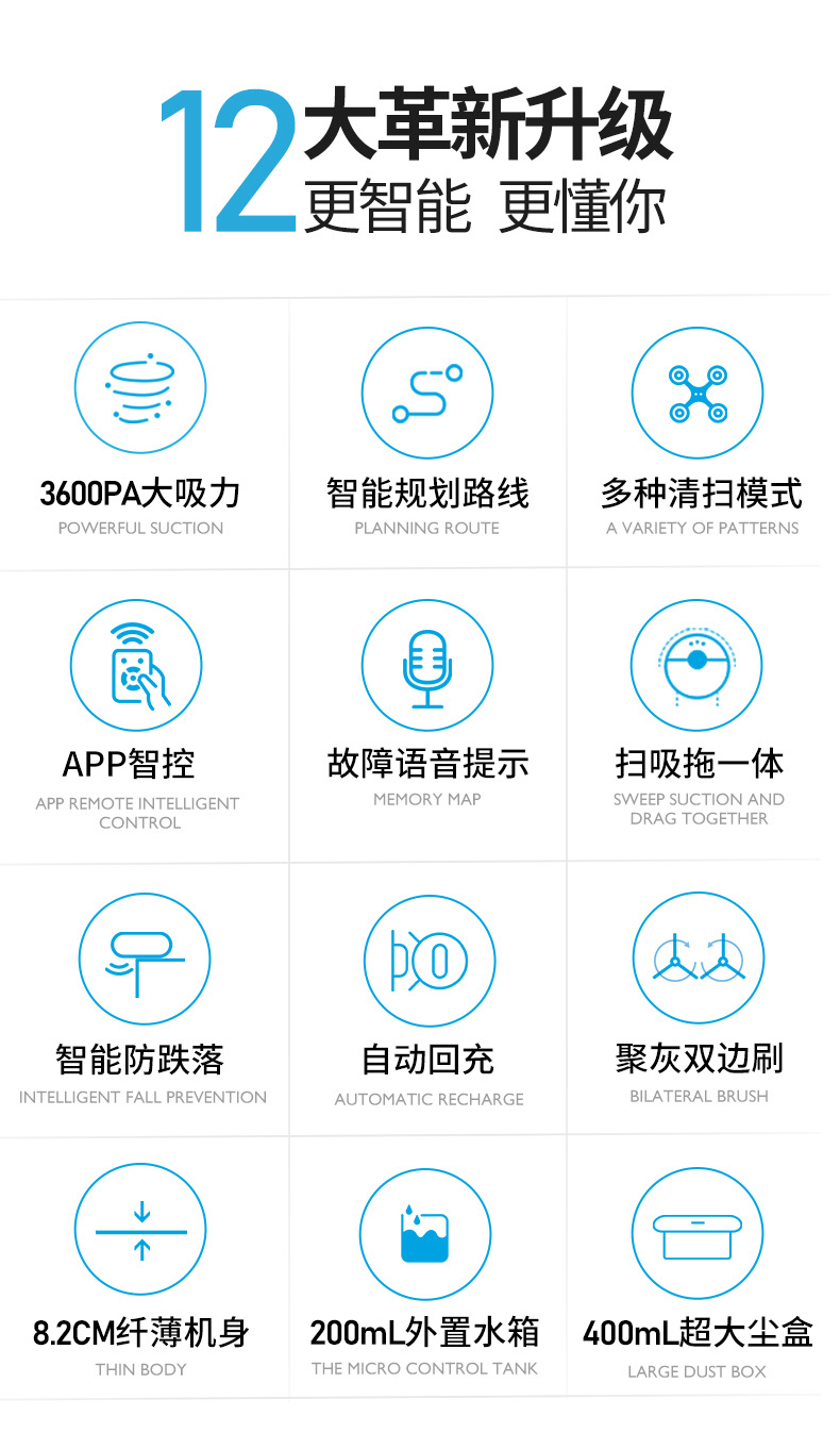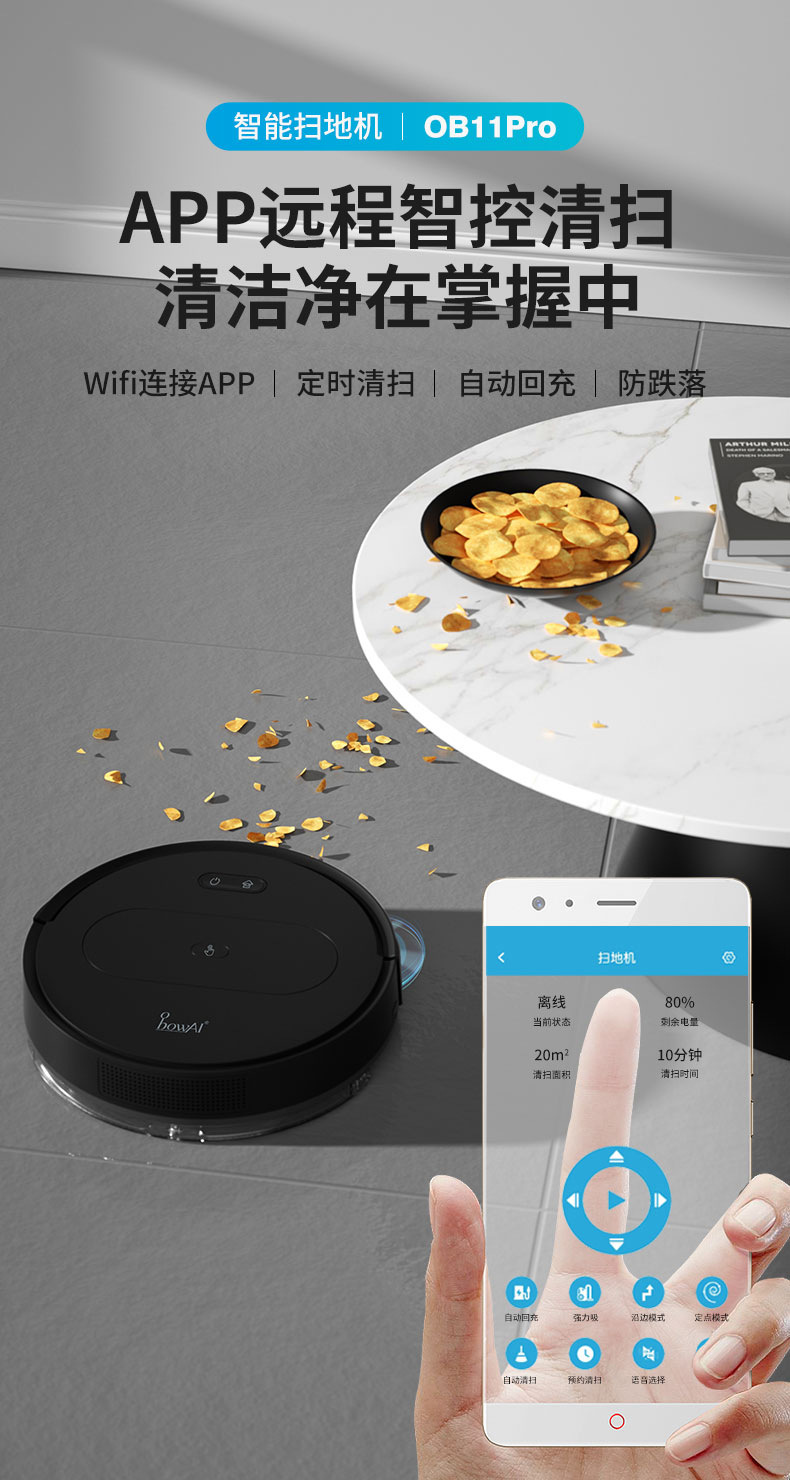 热卖欧堡智能扫地机器人自动充电带水箱跨境扫吸拖一体家用扫地机器人