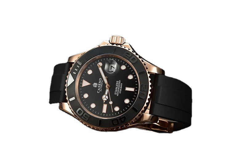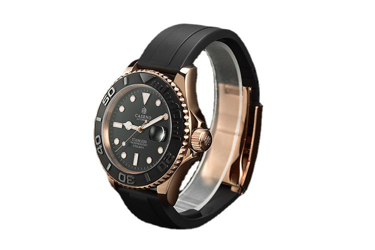 热卖CASENO游艇硅胶表带21MM全自动机械运动男士手表防水蓝宝石镜面