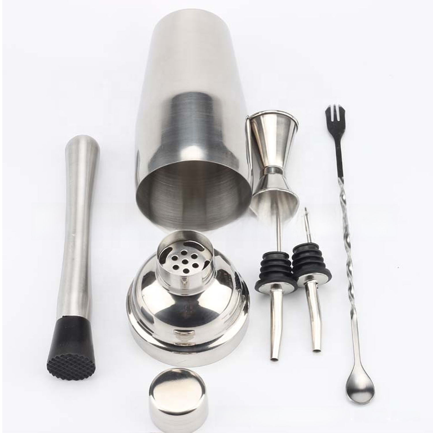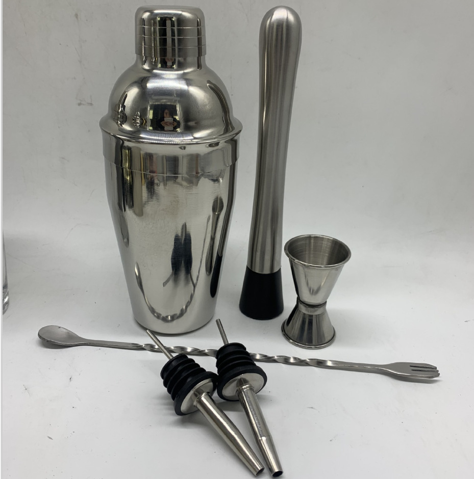 热卖跨境热销调酒器套装 酒吧工具鸡尾酒不锈钢调酒器套装6件套多色