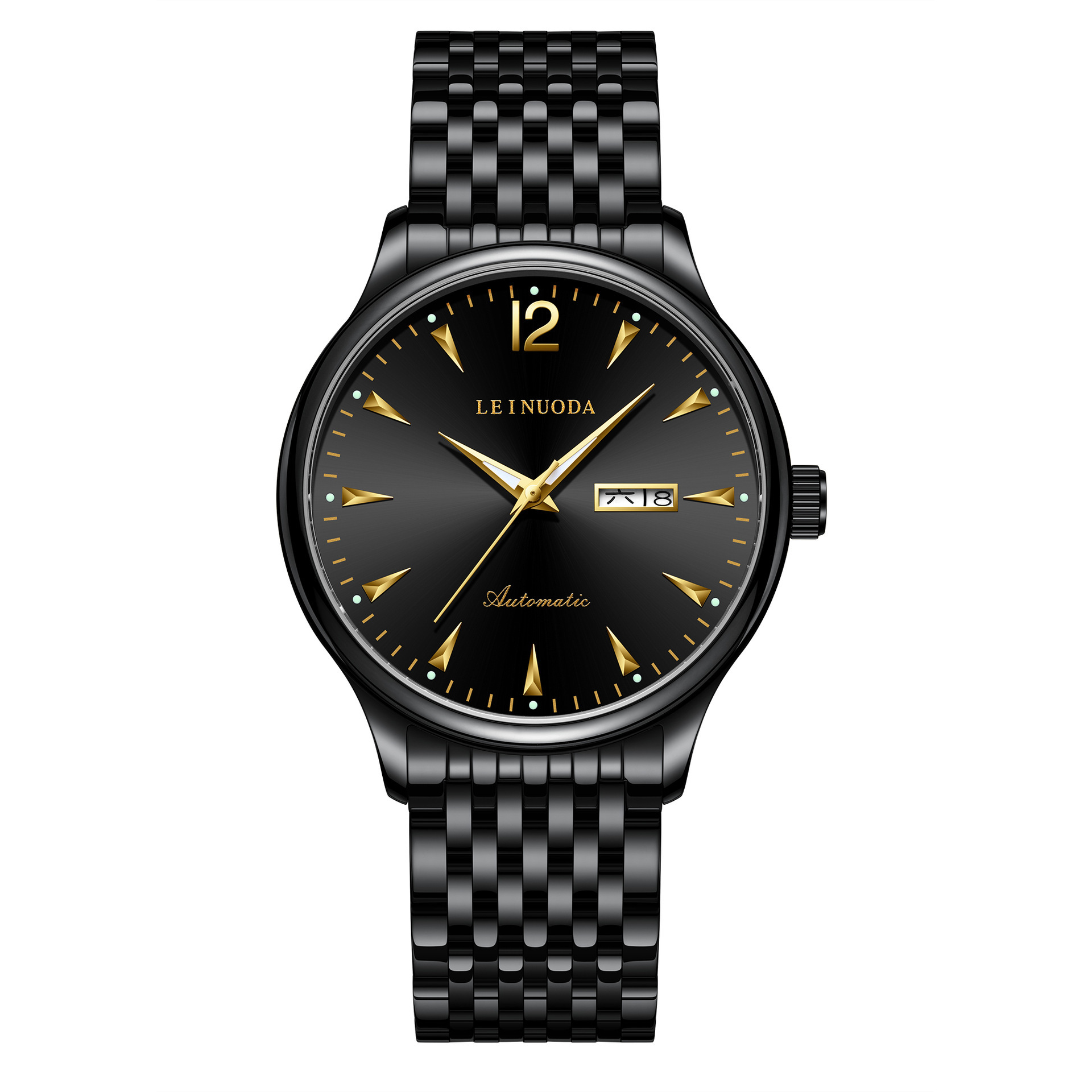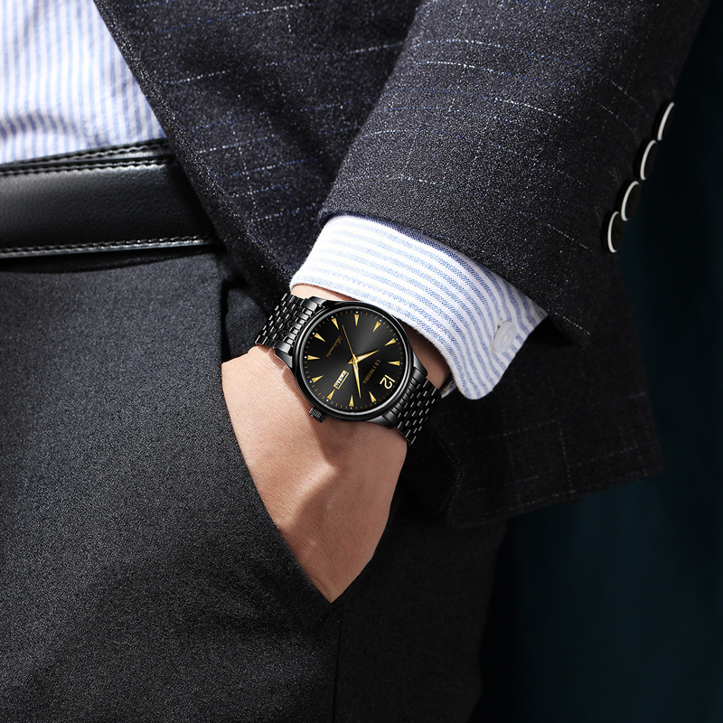 热卖23年源头厂家男士双日历机械手表防水经典表盘精钢腕表全自动腕表