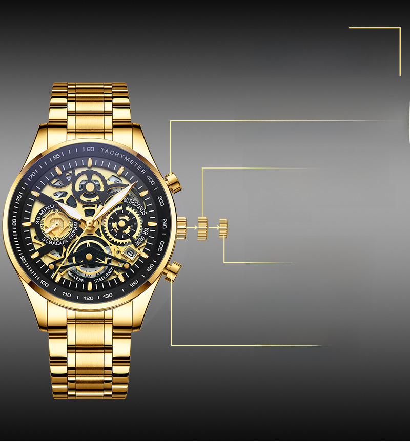 热卖网红nibosi新款腕表 休闲镂空机械设计男士手表 多功能石英学生表