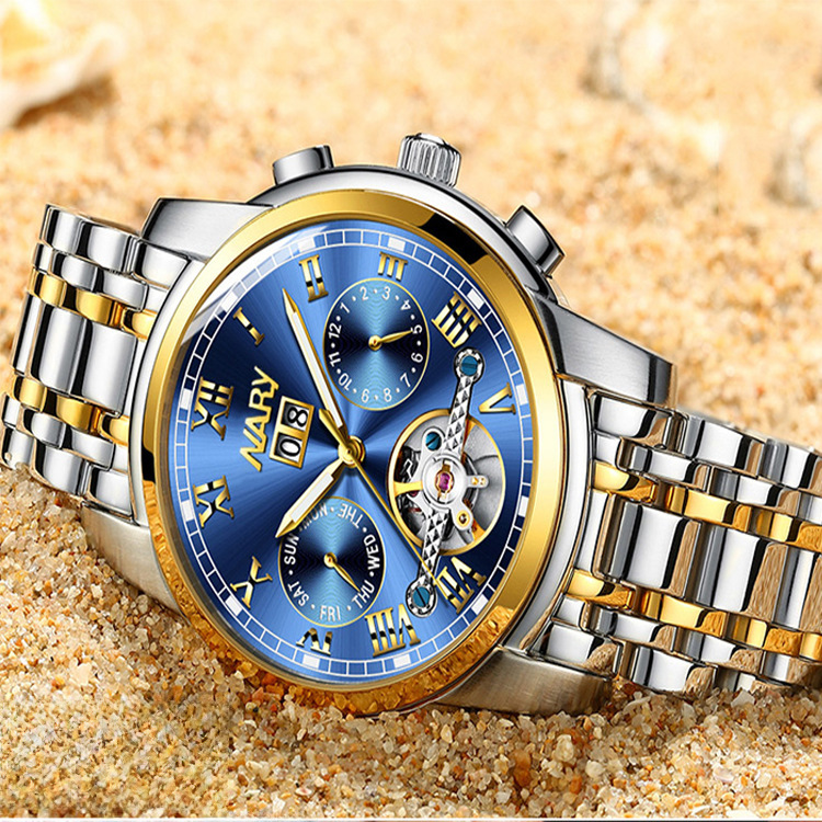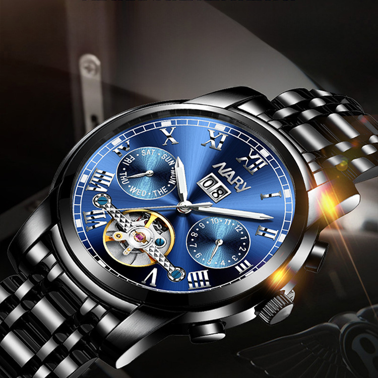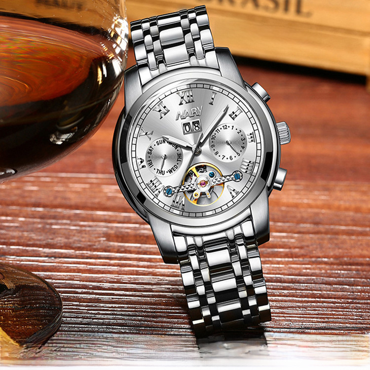热卖NARY/耐瑞 全自动陀飞轮男士手表多功能镂空机械表18005C