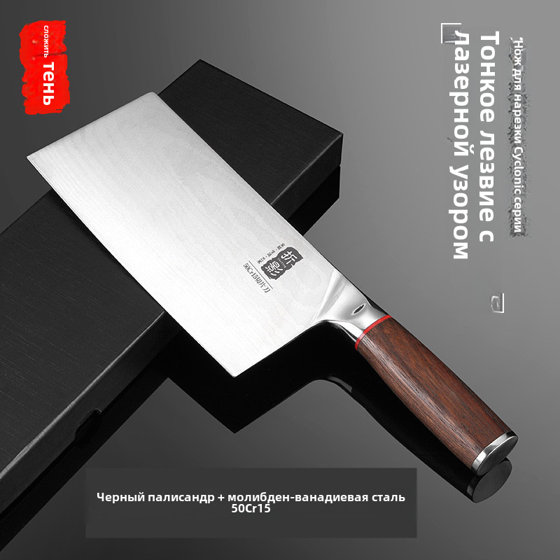 热卖新款中式菜刀50CrMoV木柄大马士革纹锋利砍斩切刀厨师专用切片刀