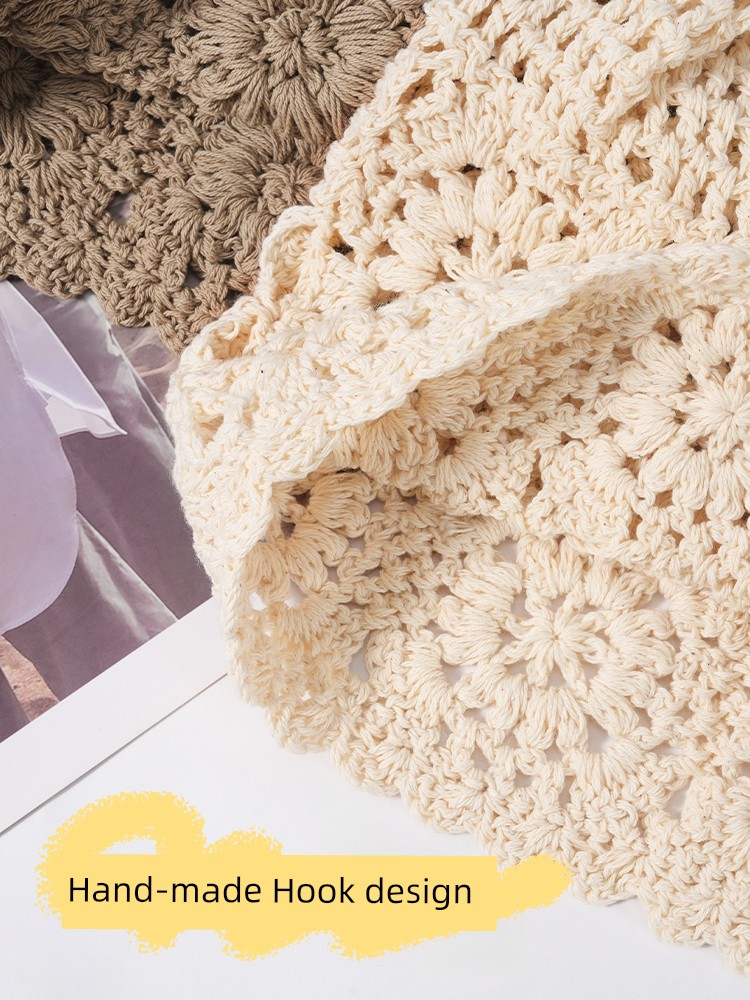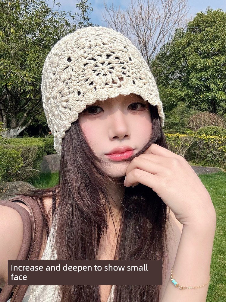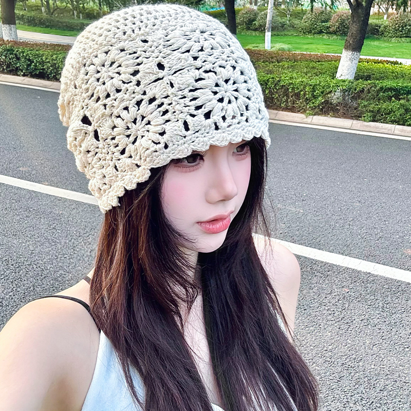 热卖型公馆钩花包头帽子蕾丝女薄款镂空毛线帽夏季