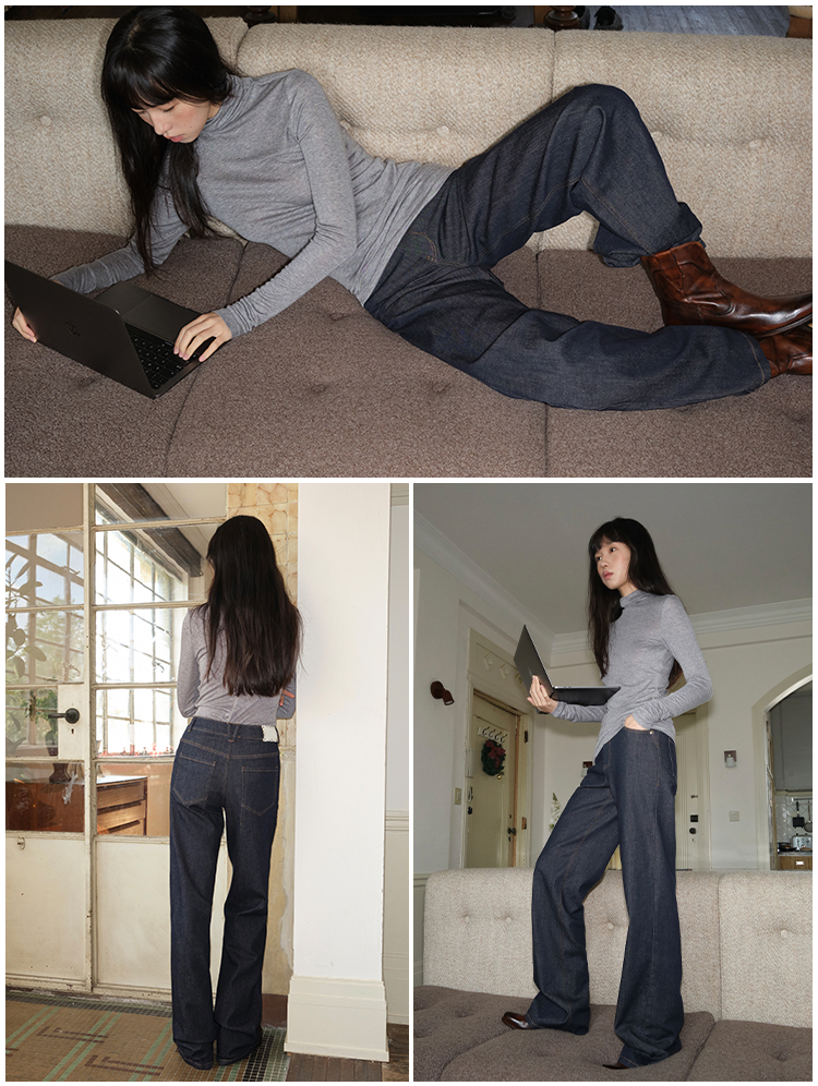 热卖TDDP 三重丹宁 重磅酵洗不掉色窄版原牛色直筒牛仔长裤女早秋宽松