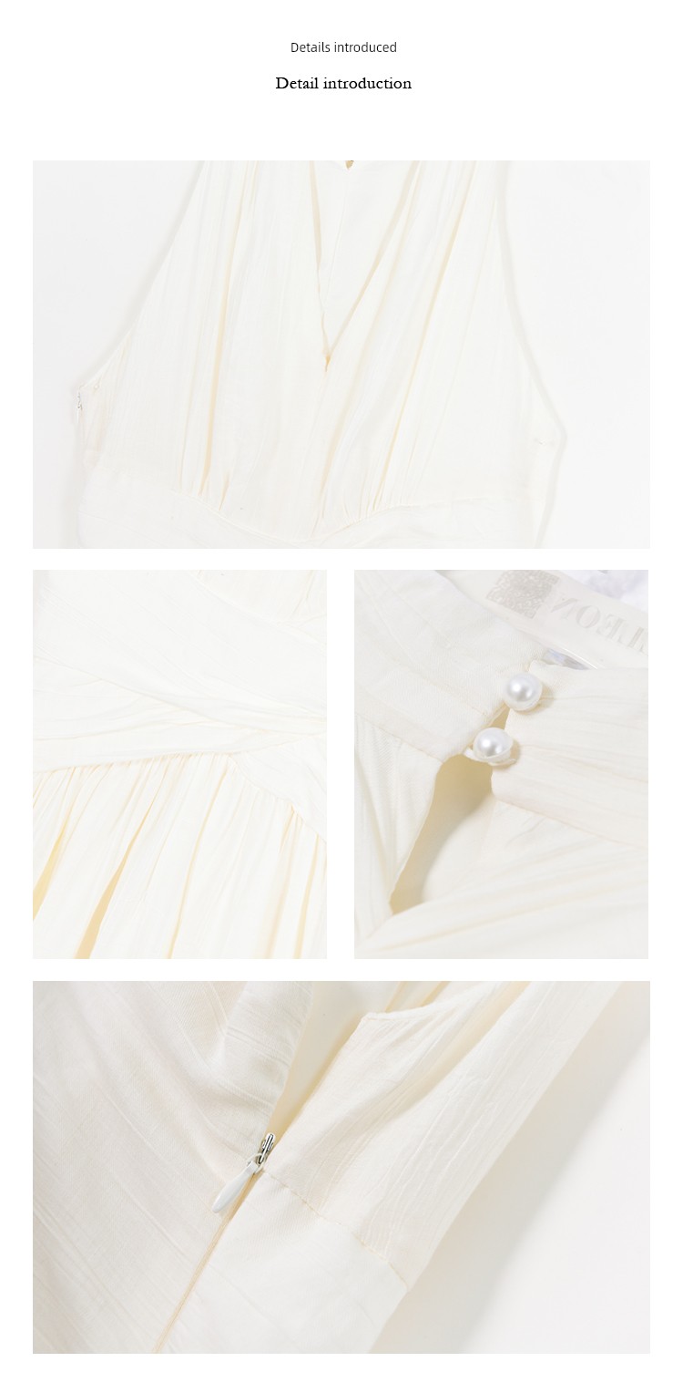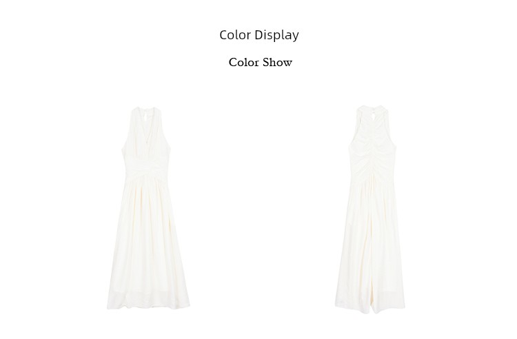 热卖JWUNIQUE酒窝米白色挂脖无袖收腰连衣裙女2025夏季新款大摆长裙子