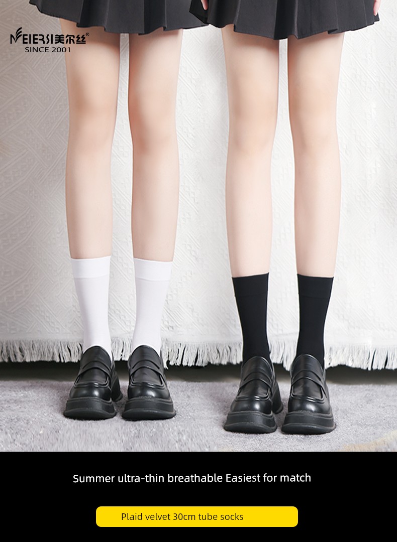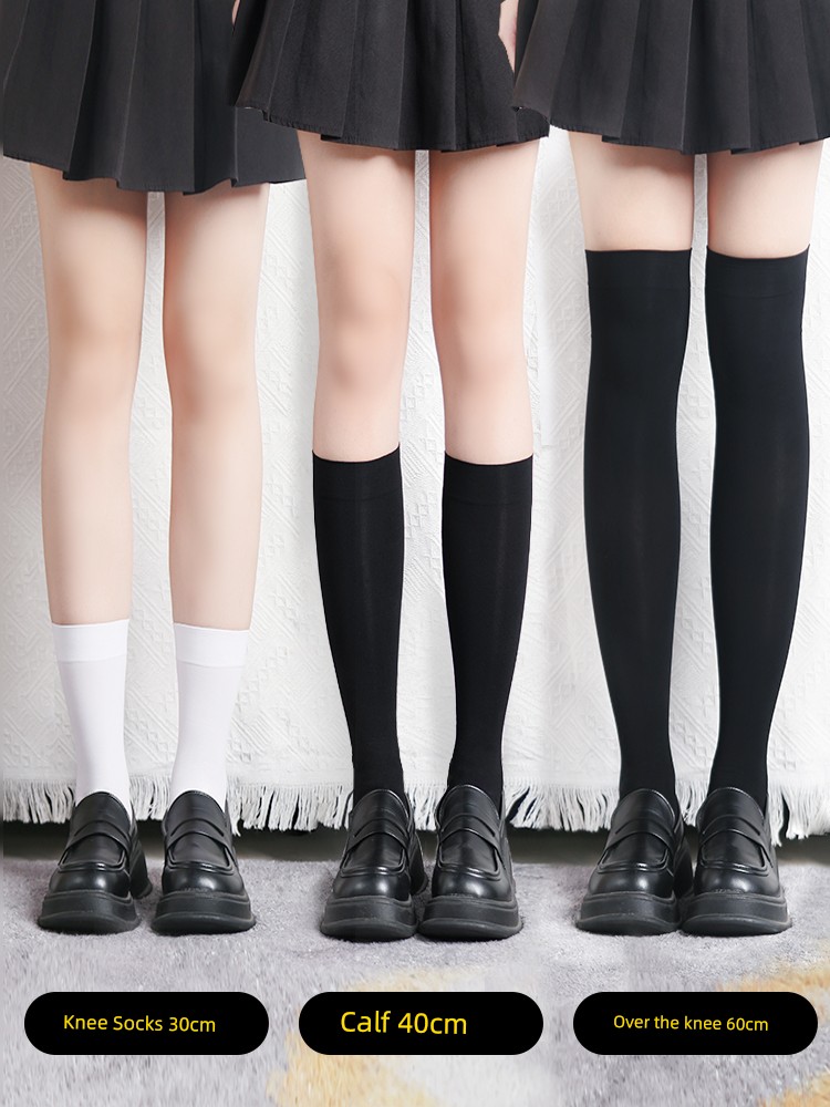 热卖小腿袜女夏季薄款压力瘦腿显瘦jk中筒袜白色黑色过膝半筒长筒袜子