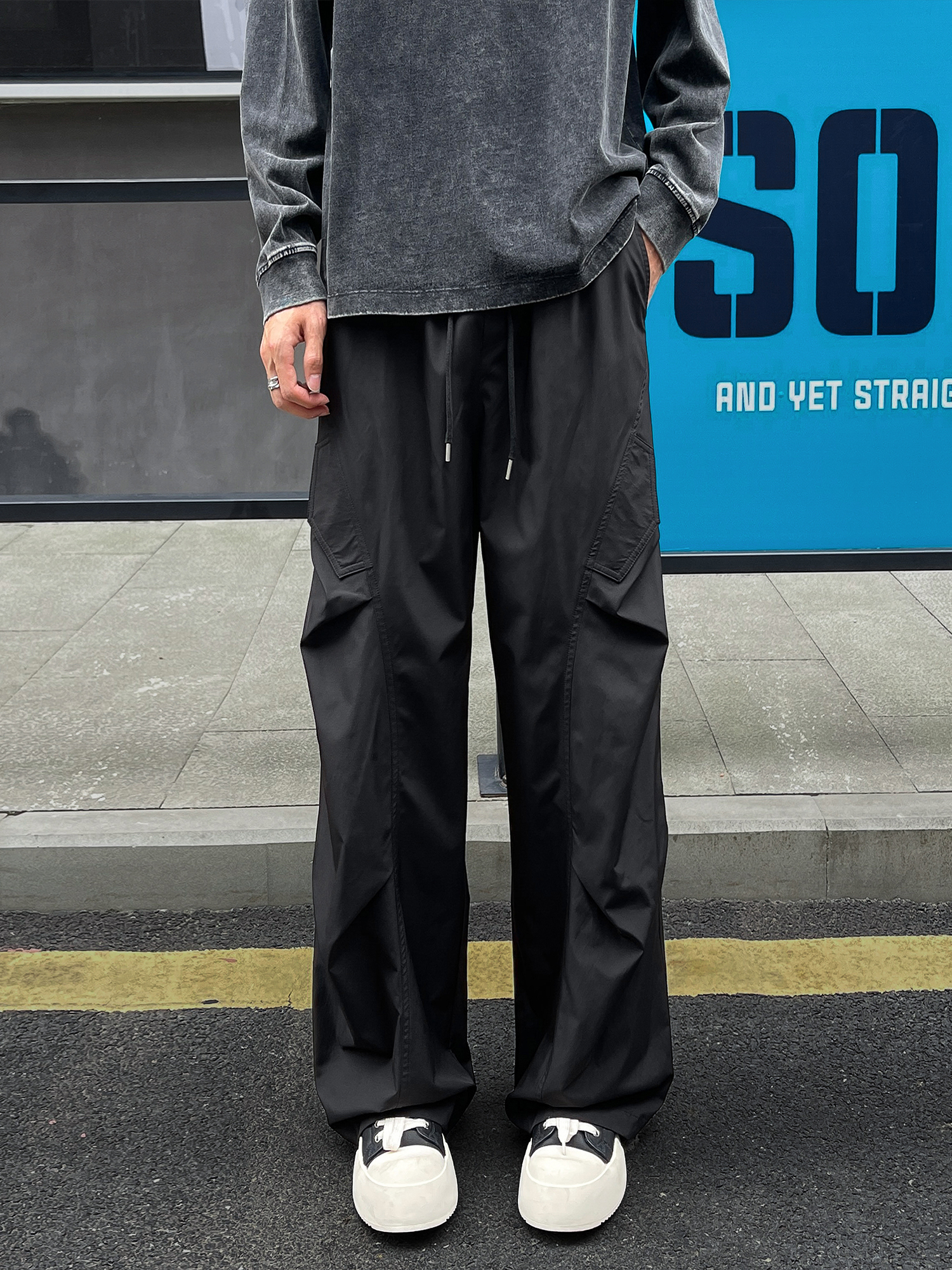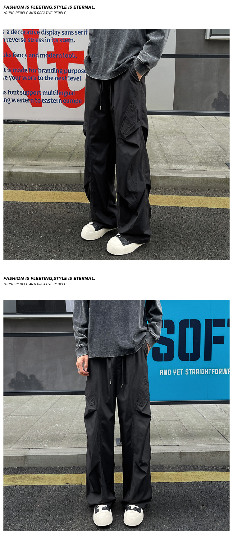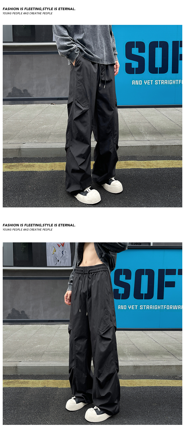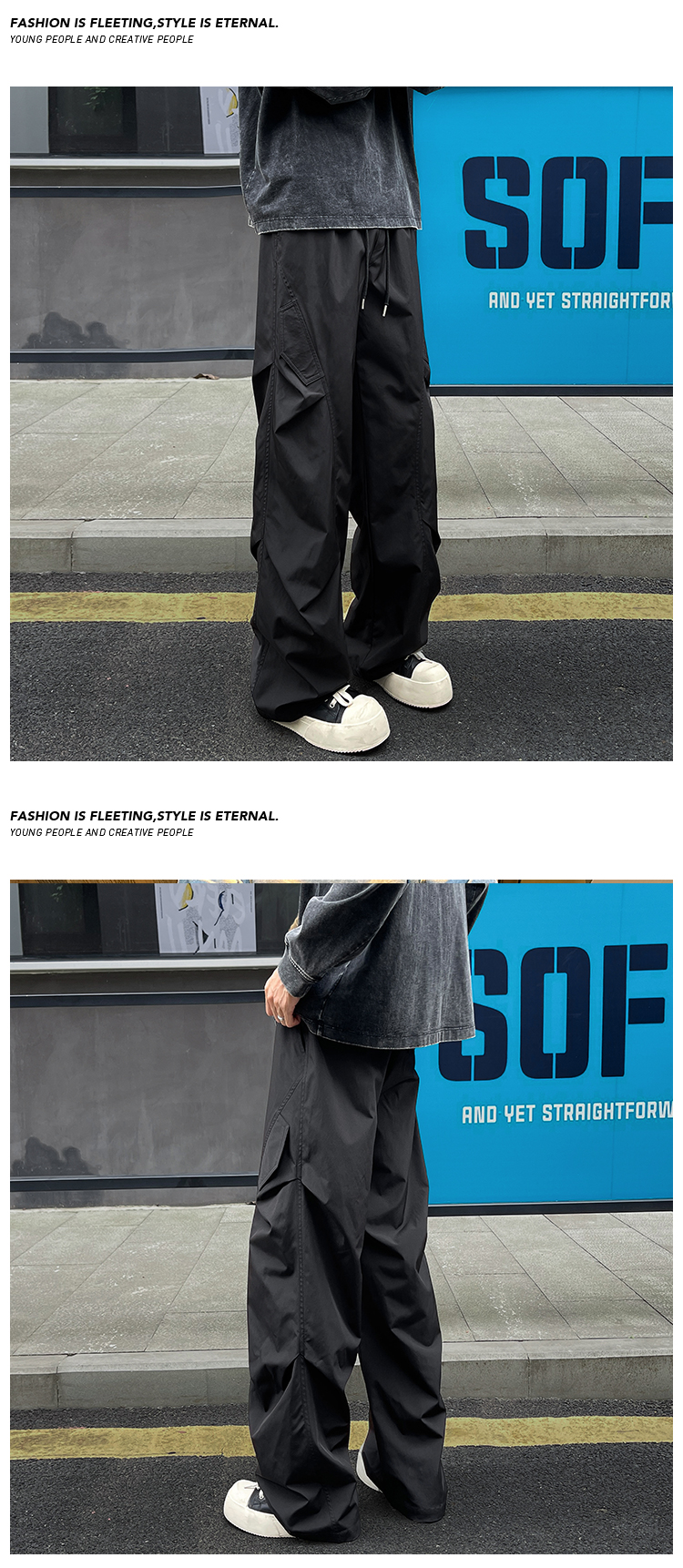 热卖美式工装伞兵裤男秋季2025新款直筒宽松黑色长裤潮牌运动休闲裤子