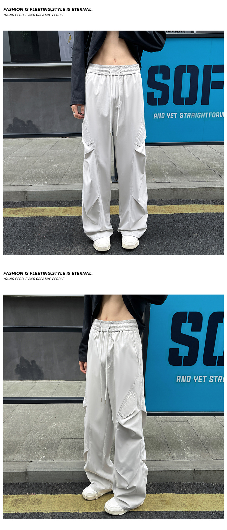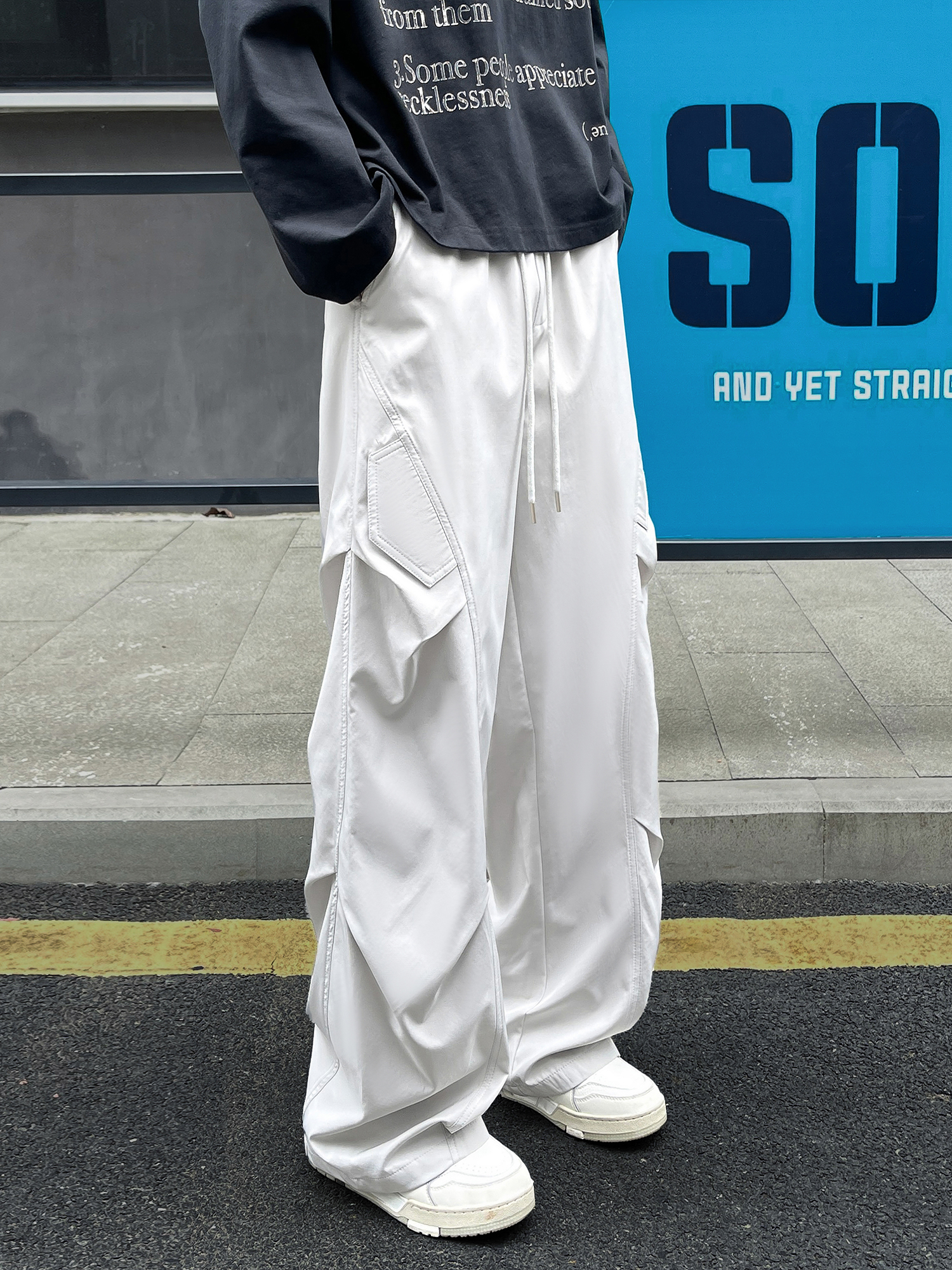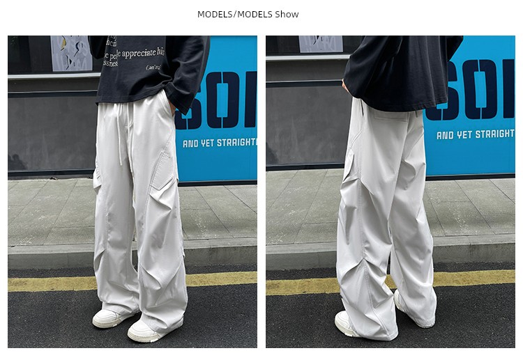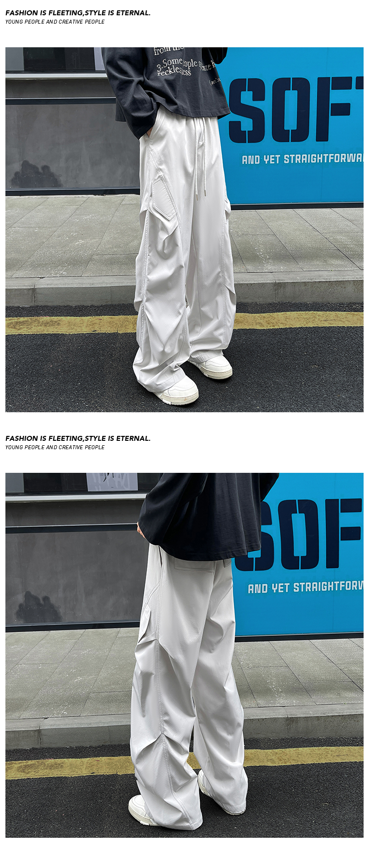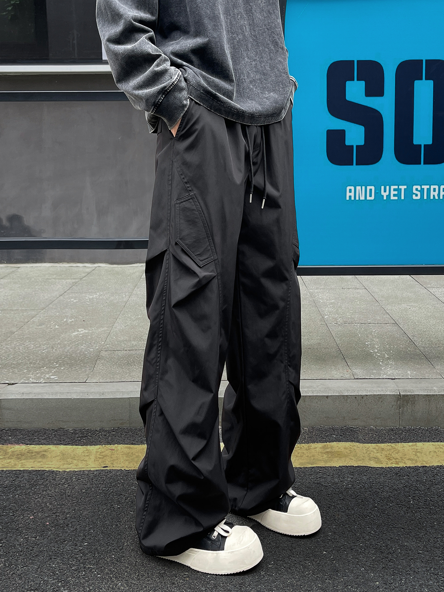 热卖美式工装伞兵裤男秋季2025新款直筒宽松黑色长裤潮牌运动休闲裤子