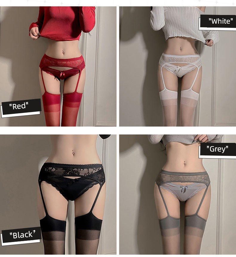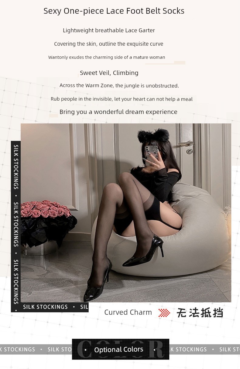 热卖空姐灰丝袜长筒吊带一体丝袜过膝情调蕾丝边春秋超薄款防勾丝袜女