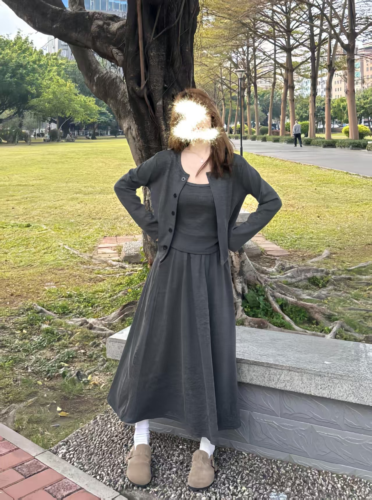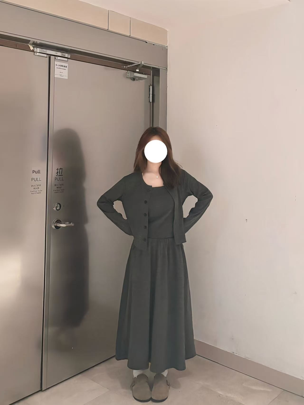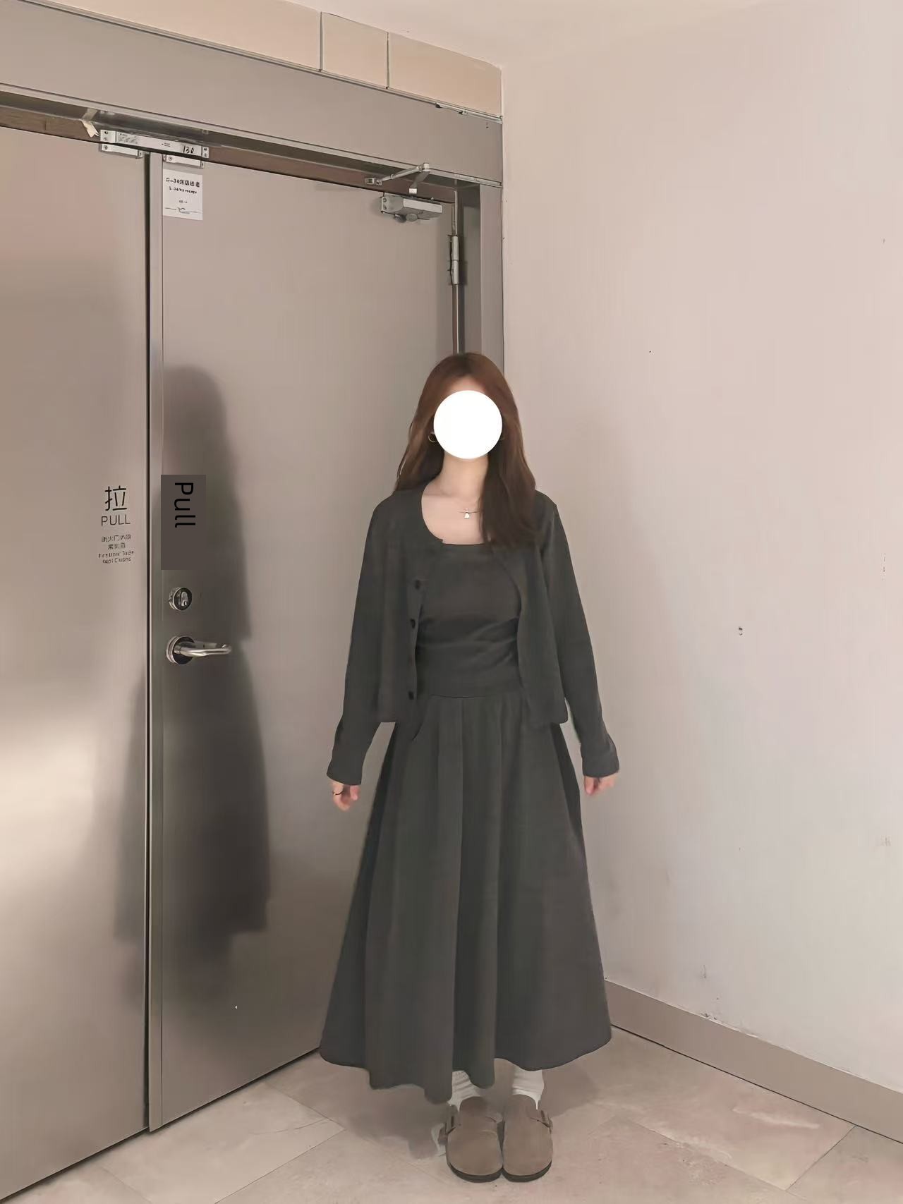 热卖大码韩系气质针织开衫吊带半身裙三件套女春秋梨型身材显瘦小套装