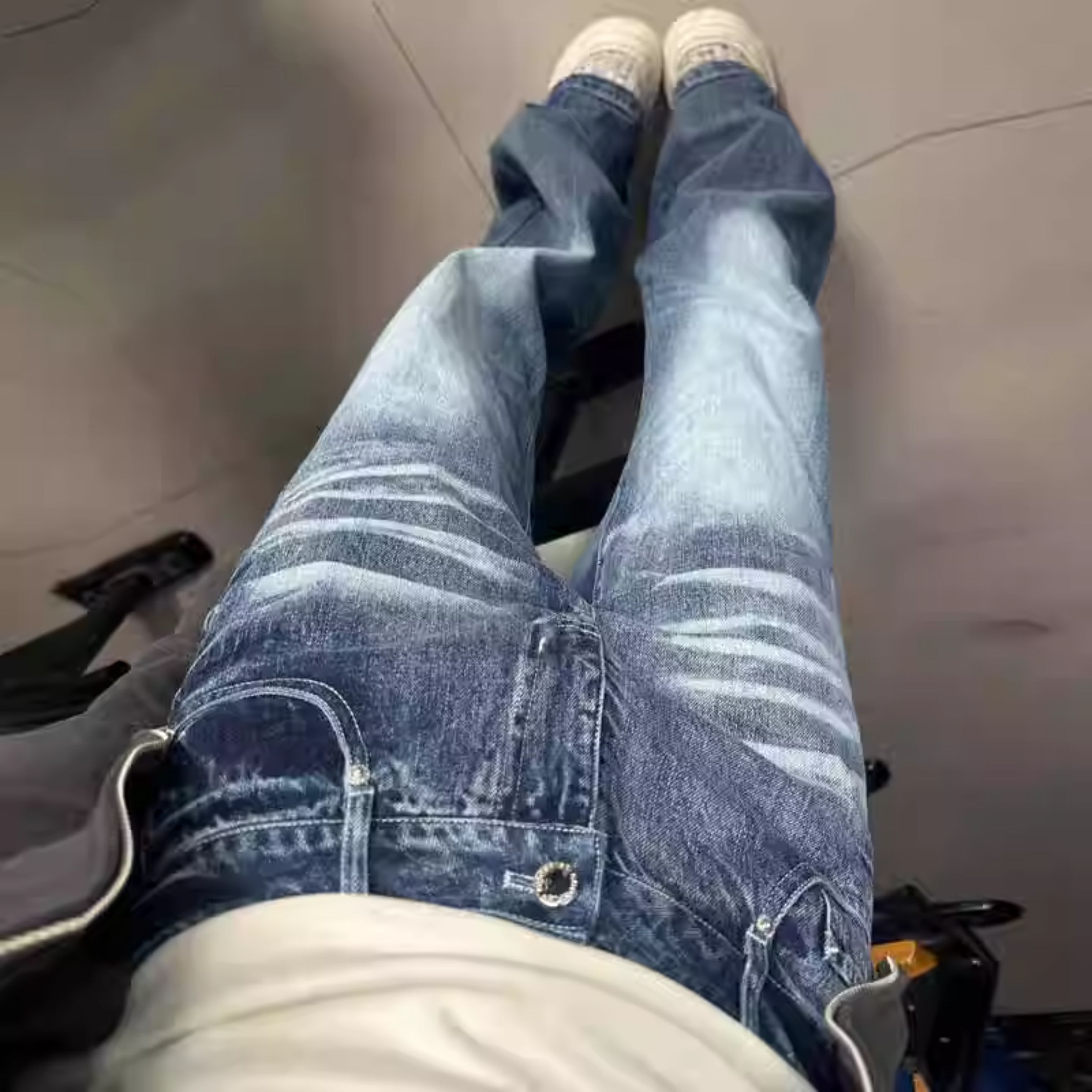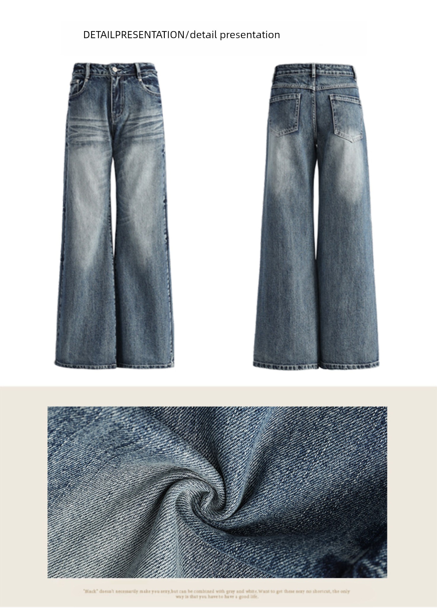 热卖高个子加长版美式复古直筒裤牛仔裤女宽松高腰显瘦微喇叭阔腿裤子