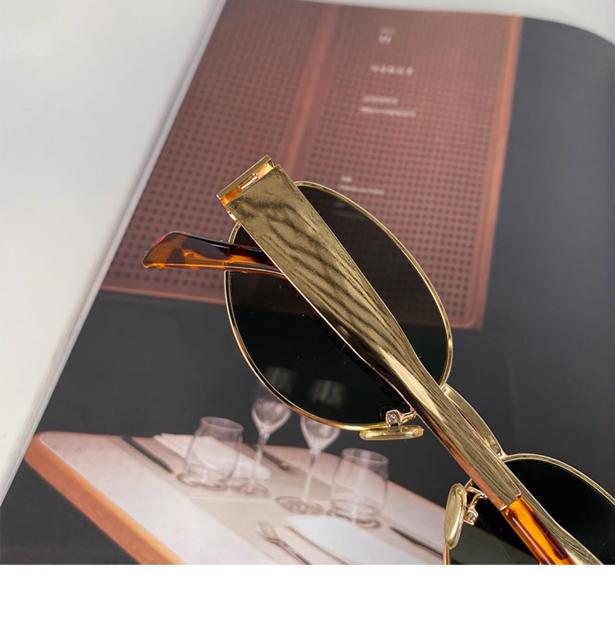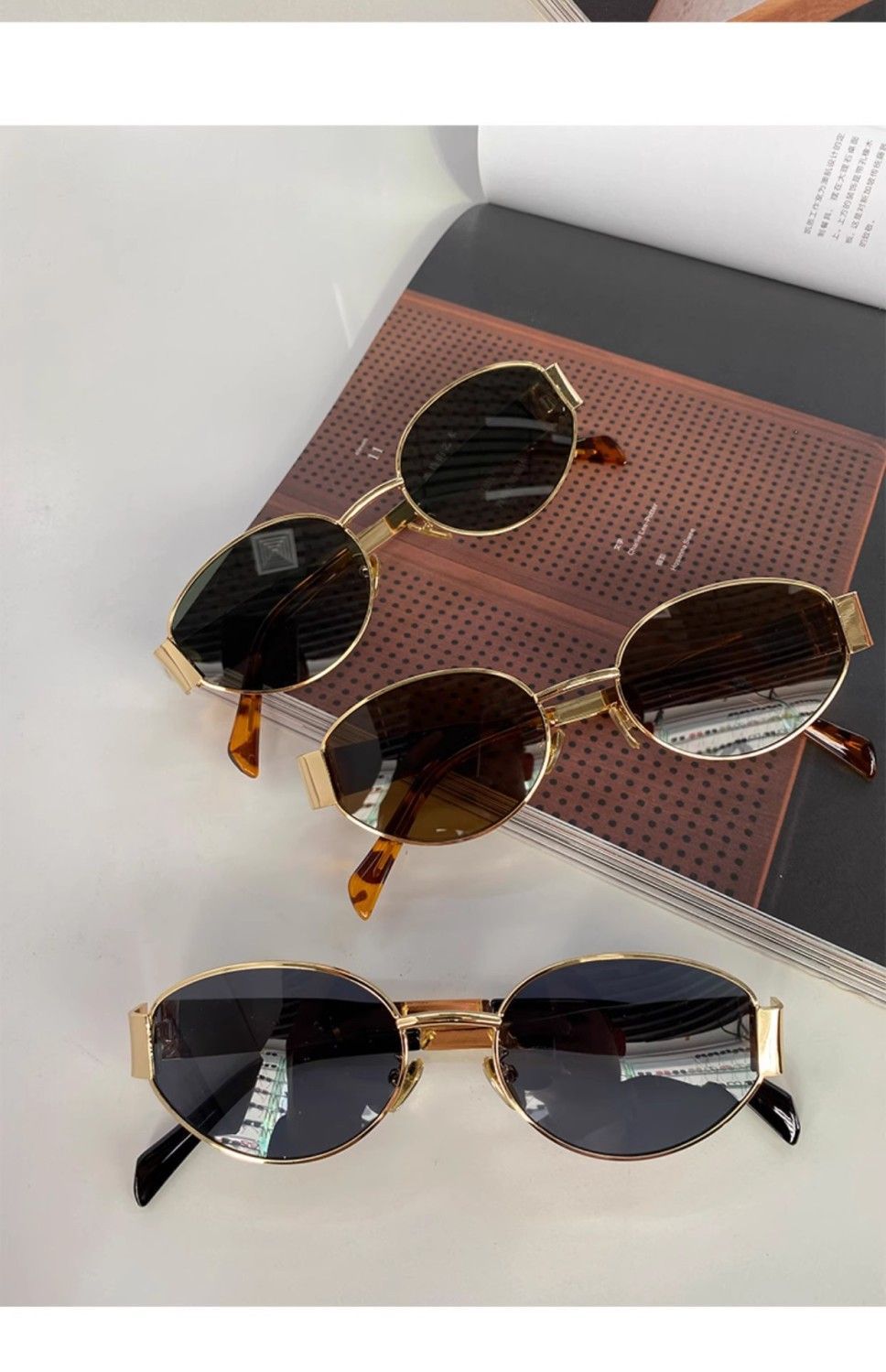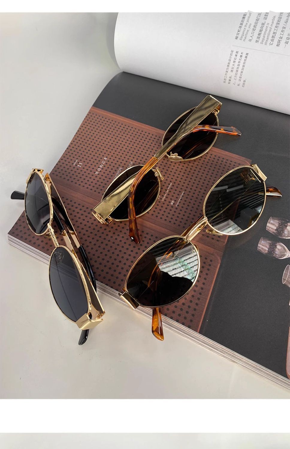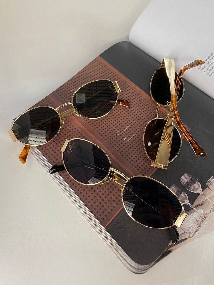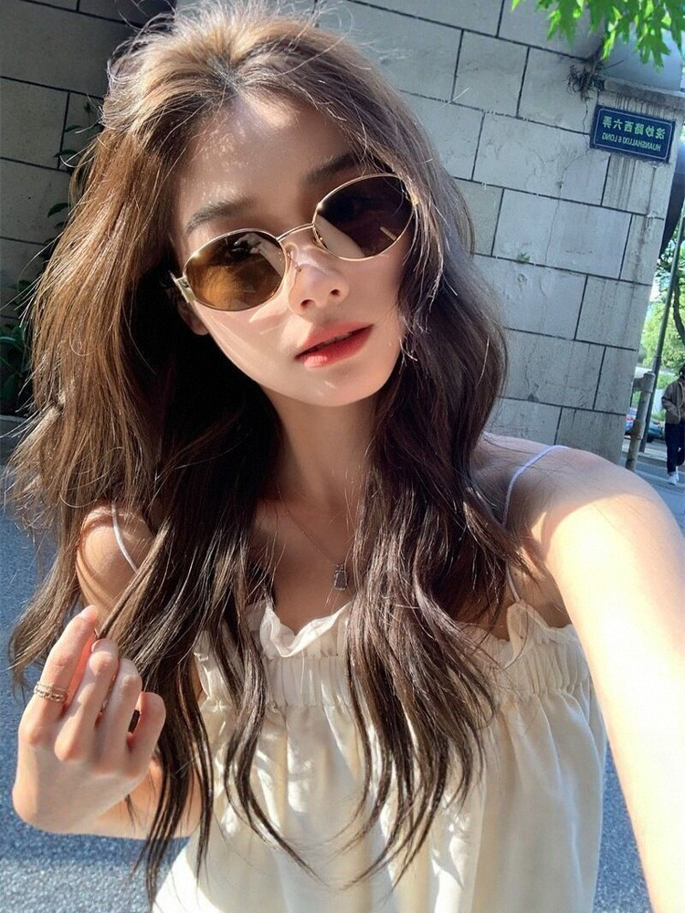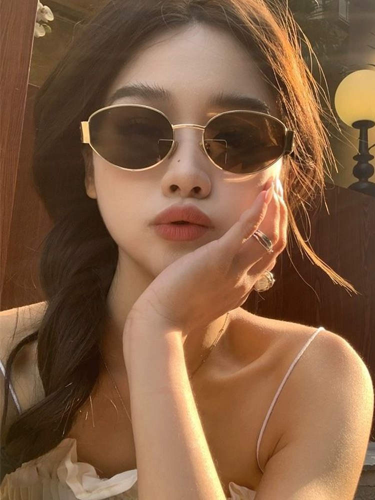 热卖复古老钱风金属椭圆形墨镜女款防晒高级感小框港风凹造型太阳眼镜