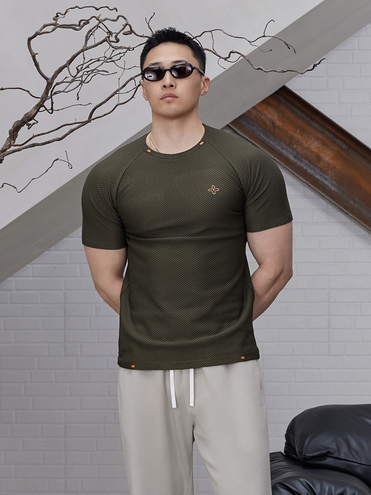 热卖Basic Unit 基本单元 网眼透气弹力紧身运动T恤男款健身衣服显大