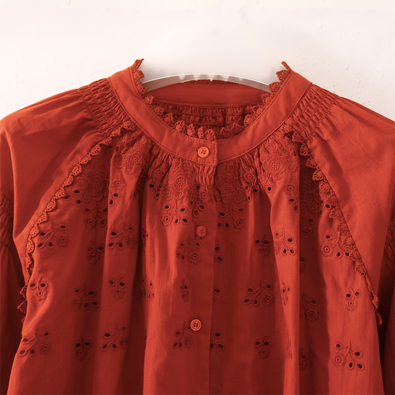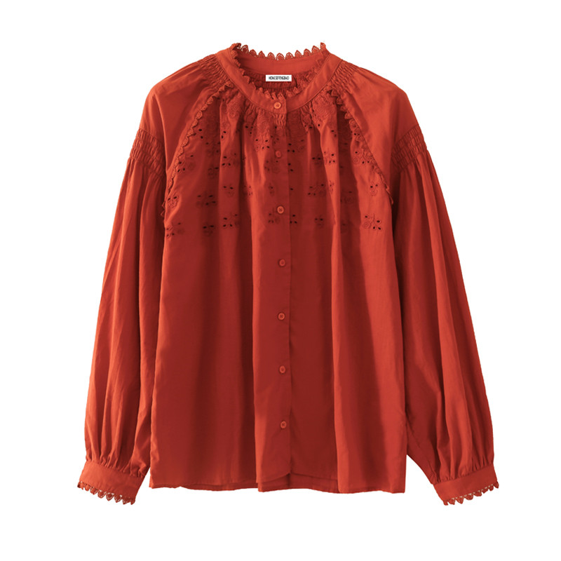热卖现货LI GHT法式衬衫女2025年秋季新款复古设计感缕空刺绣长袖上衣