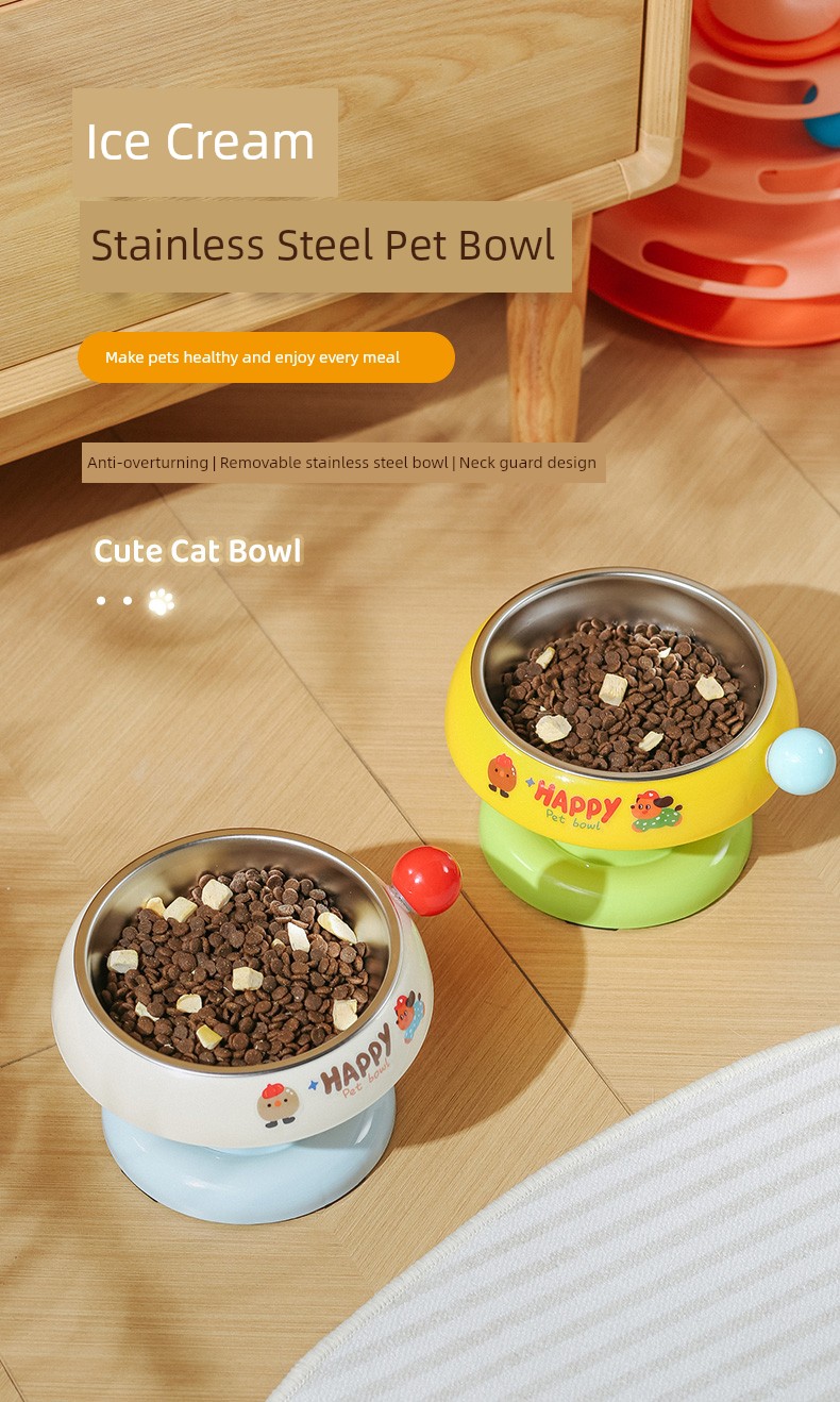 热卖猫碗不锈钢猫食盆猫咪饭碗粮碗喝水碗狗碗加高护颈狗盆增高宠物碗