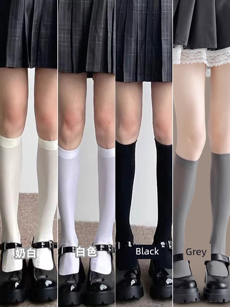 热卖奶白袜子女春夏季薄款长筒堆堆袜中筒丝袜jk乐福鞋小腿袜白色长袜
