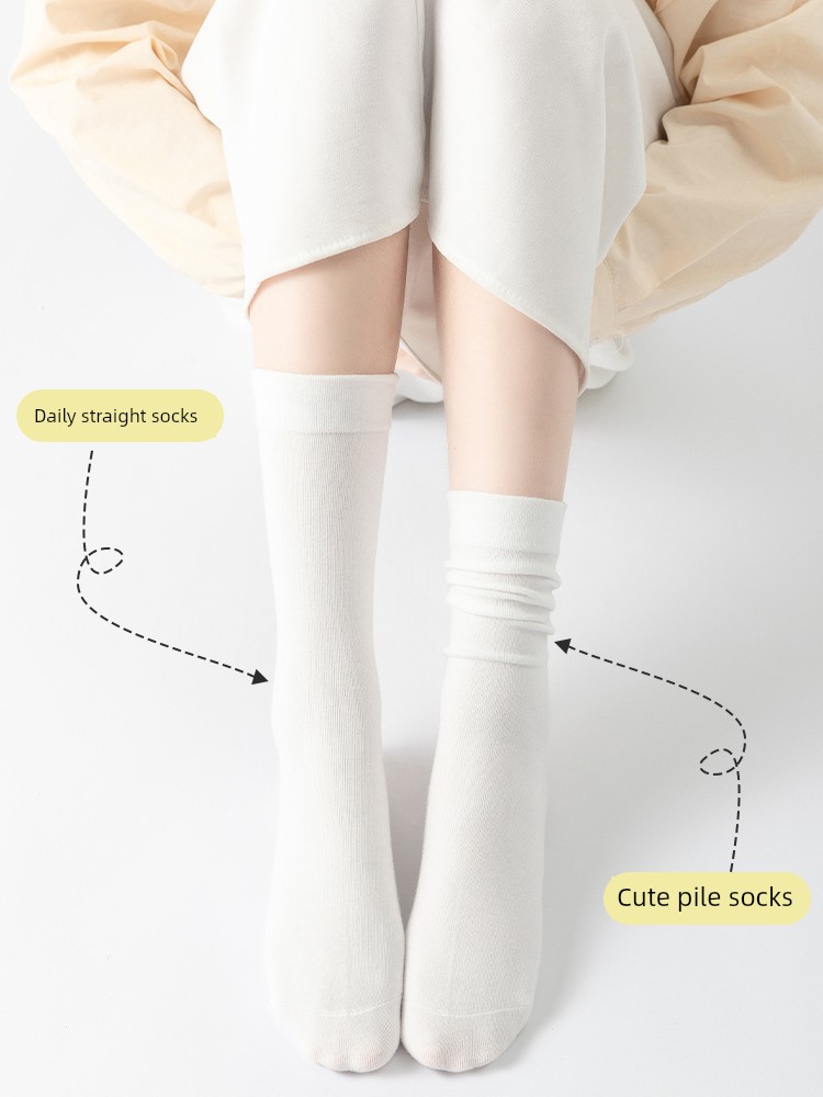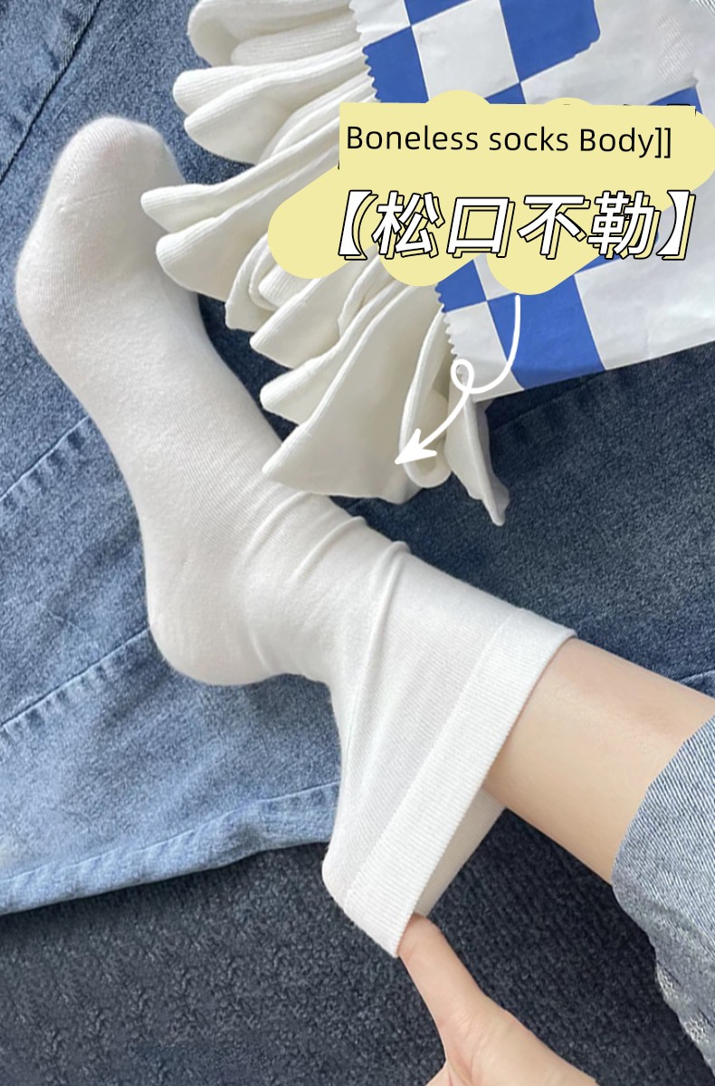 热卖无骨袜子女中筒袜纯棉ins潮春秋款黑白色堆堆袜夏季月子松口长袜
