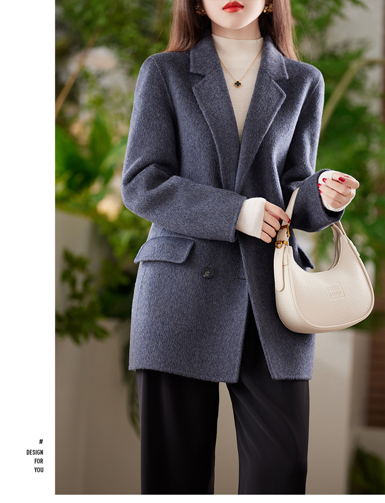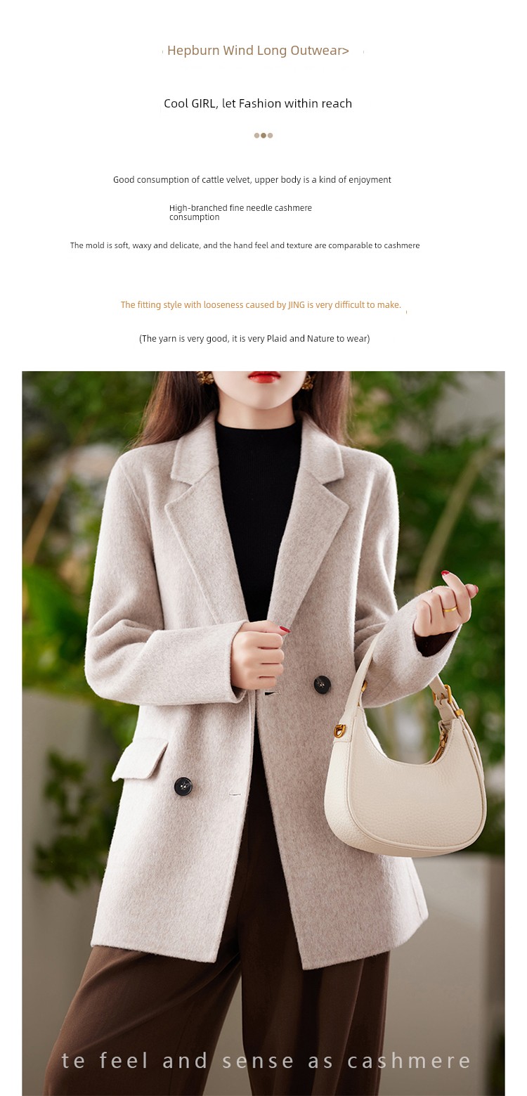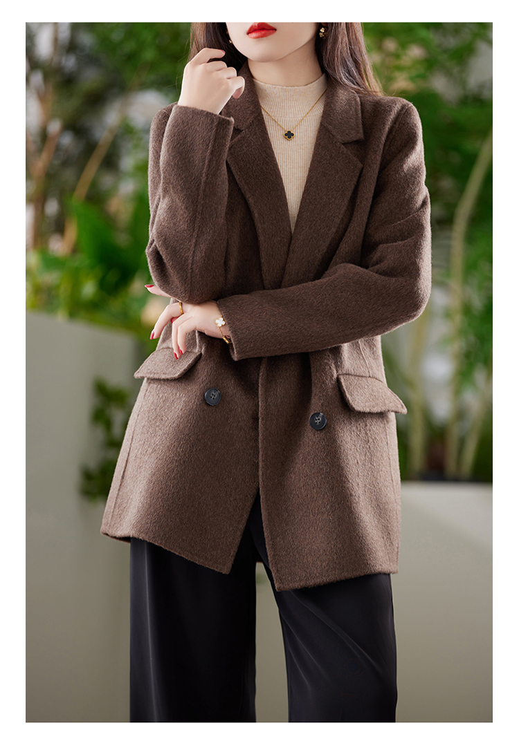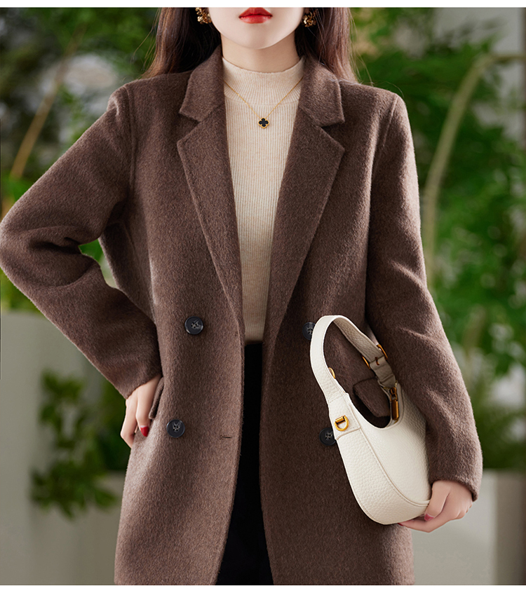热卖2025秋冬新款双面牦牛绒大衣女中长款西装领宽松休闲显瘦百搭外套