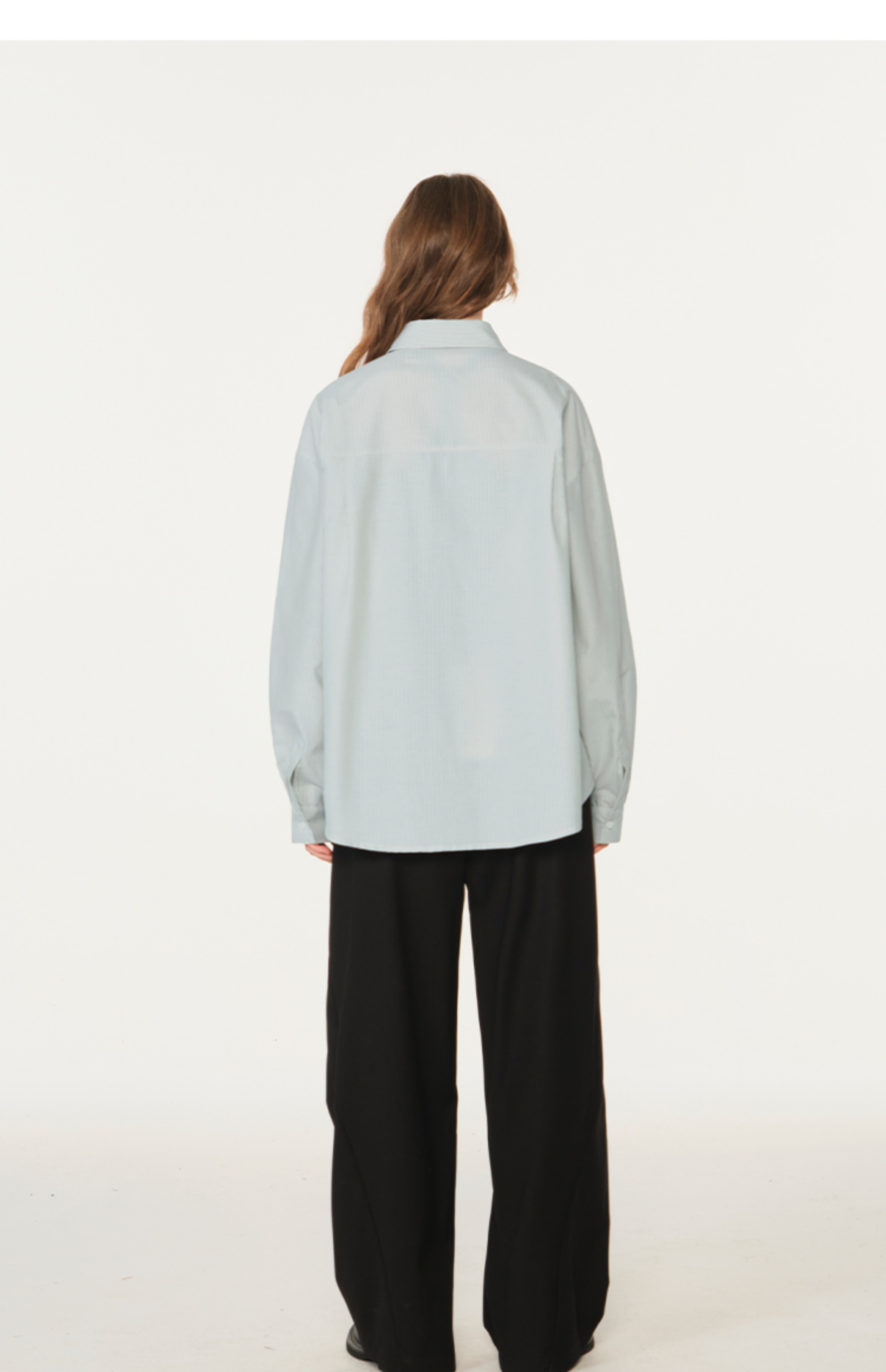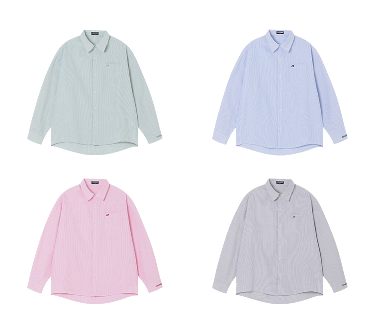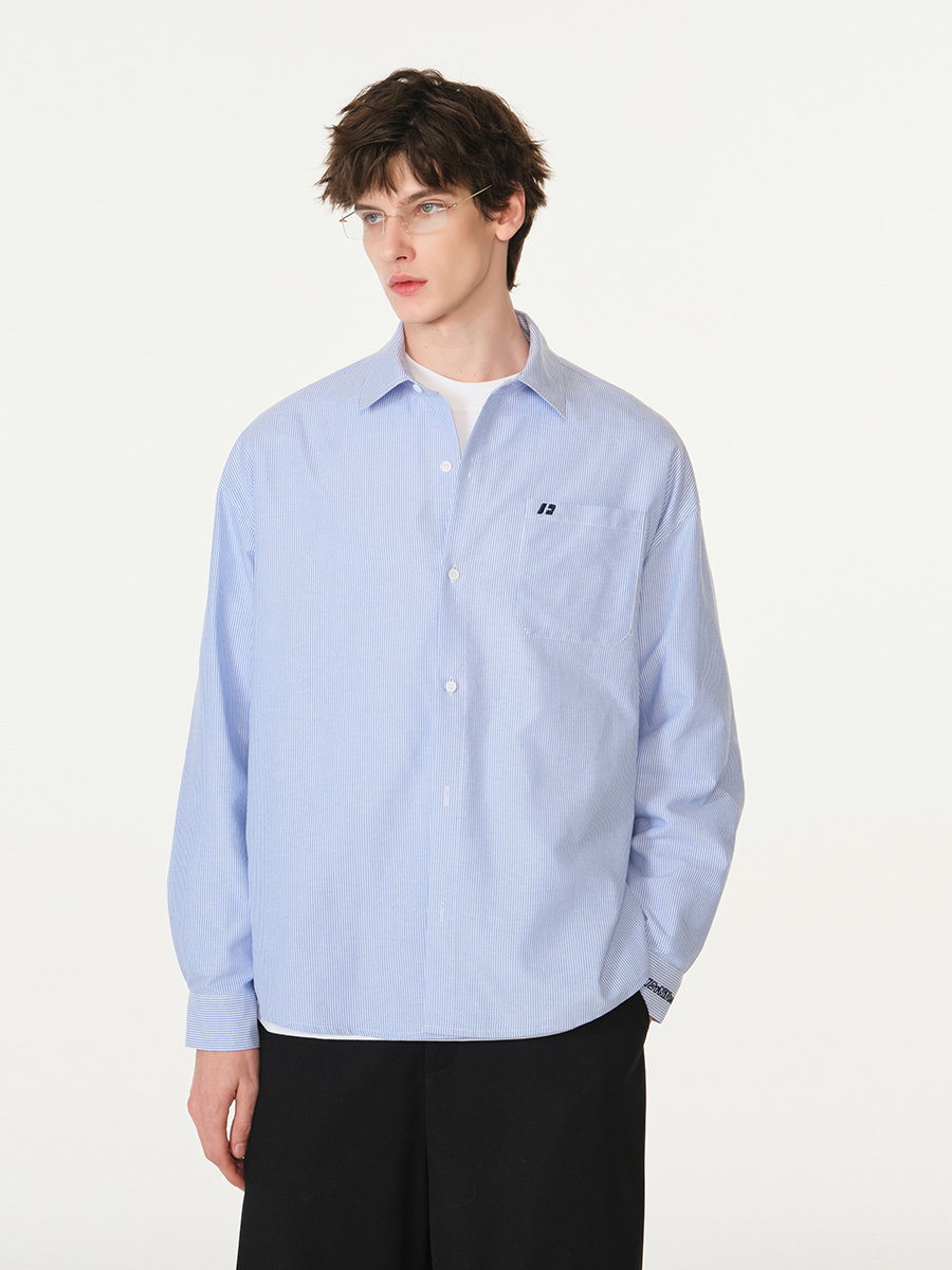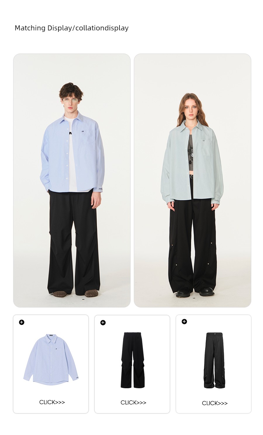 热卖FORNINES刺绣竖条纹蓝色长袖衬衫男女情侣装上衣潮牌春秋休闲外套