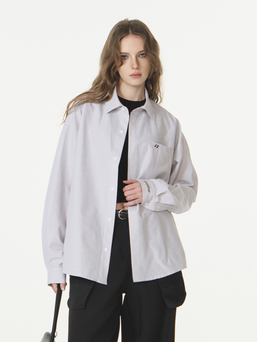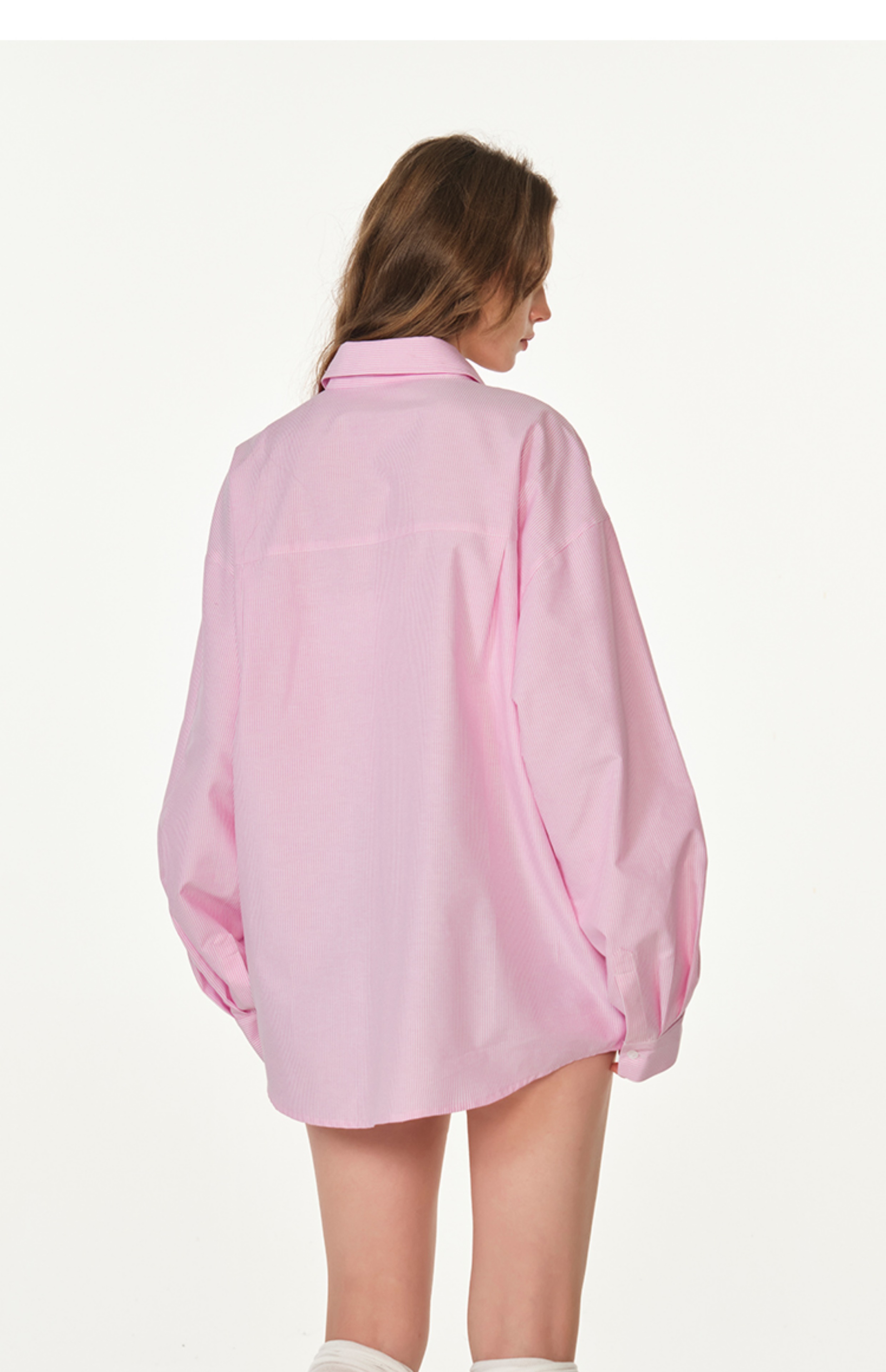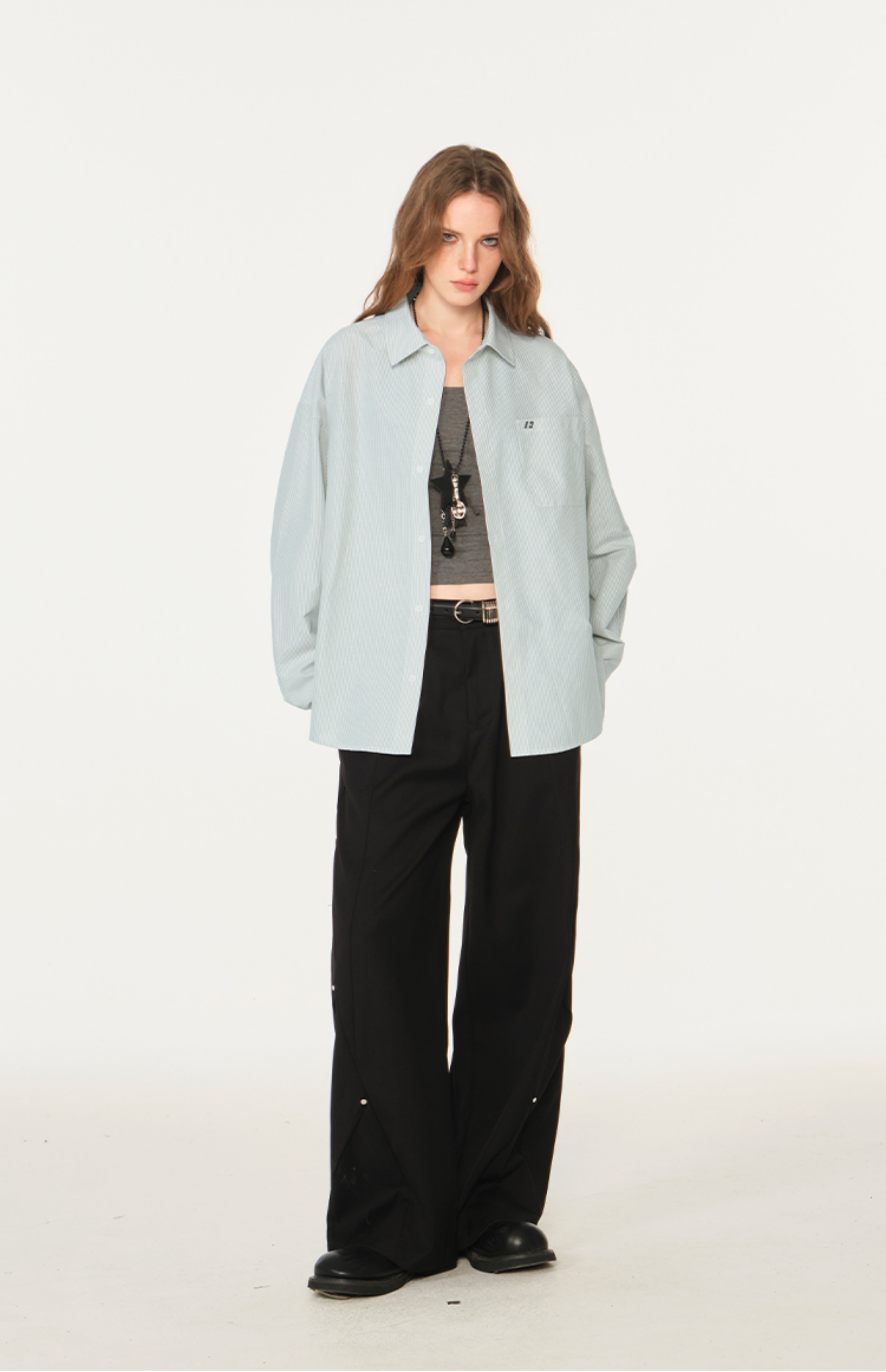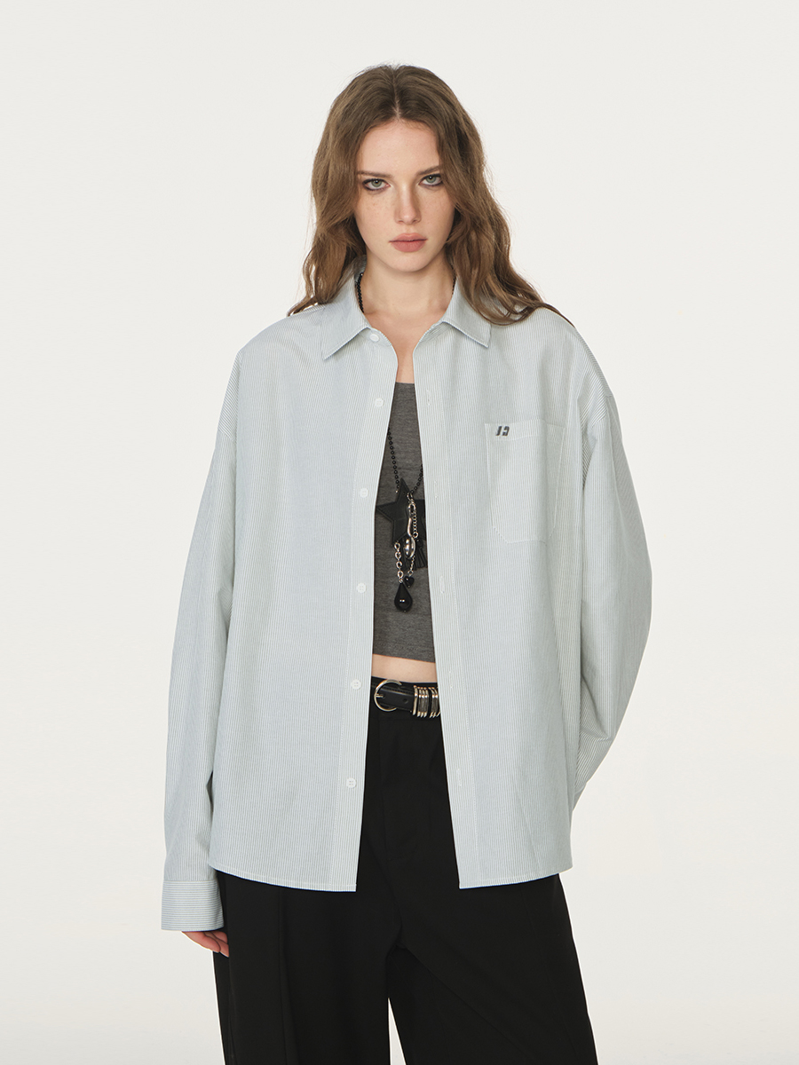 热卖FORNINES刺绣竖条纹蓝色长袖衬衫男女情侣装上衣潮牌春秋休闲外套