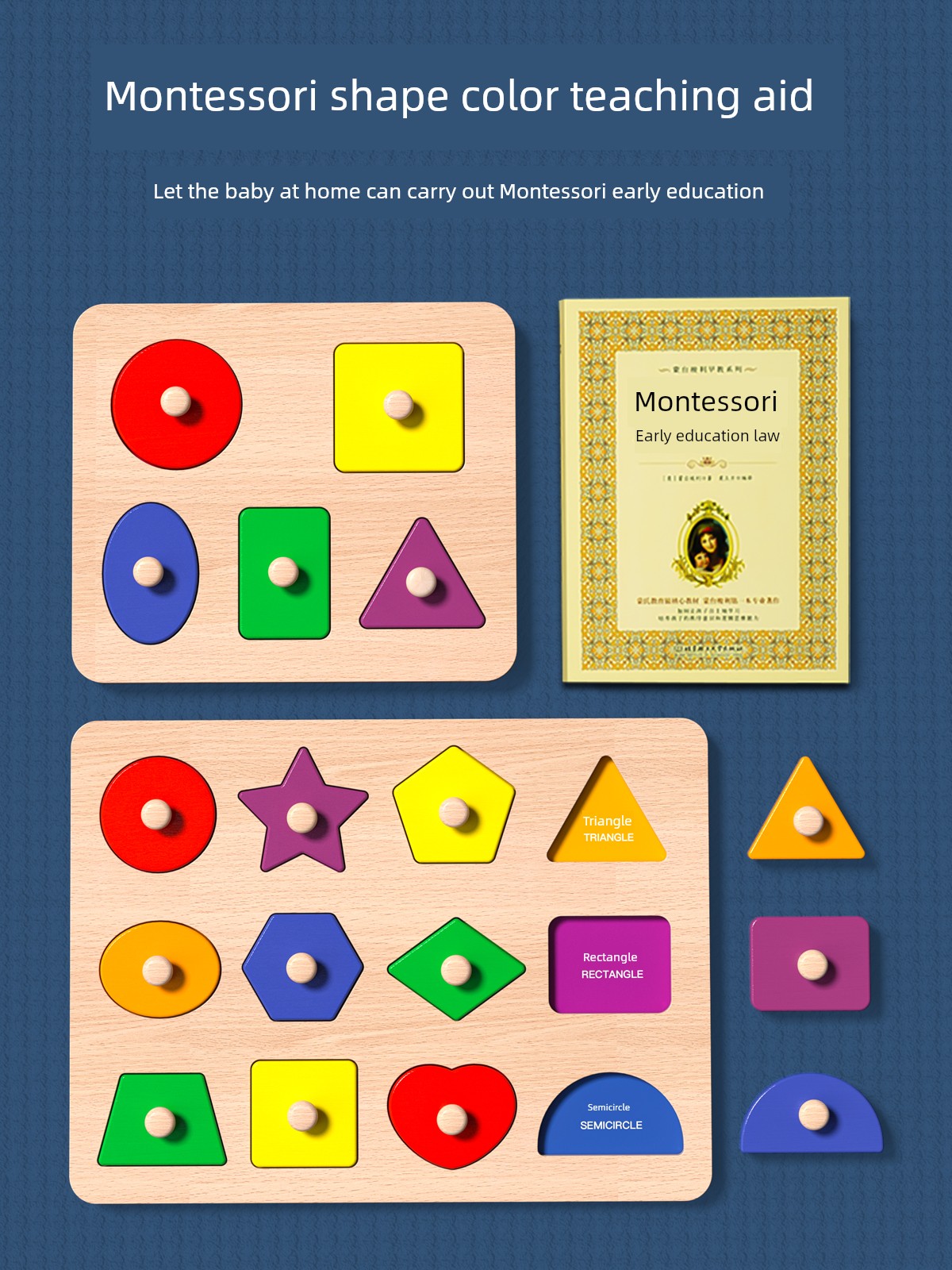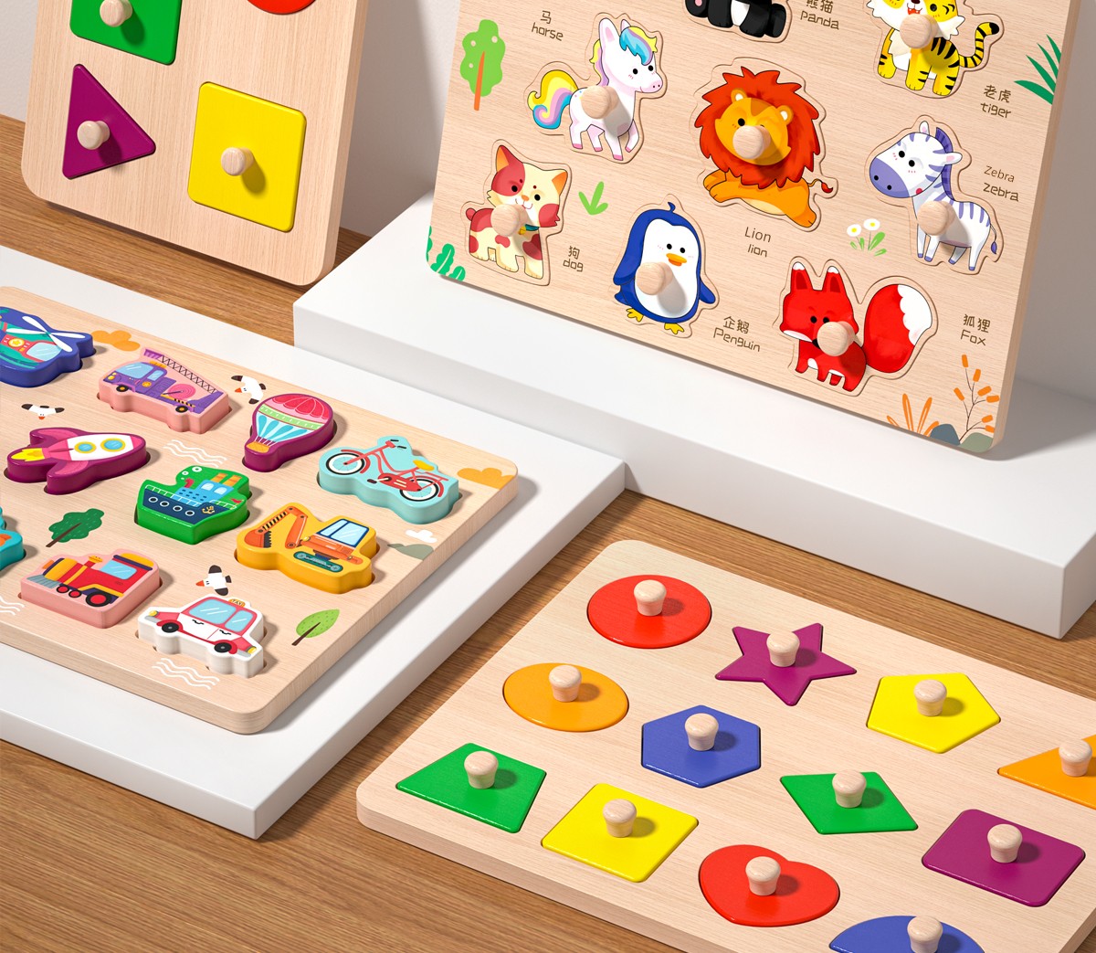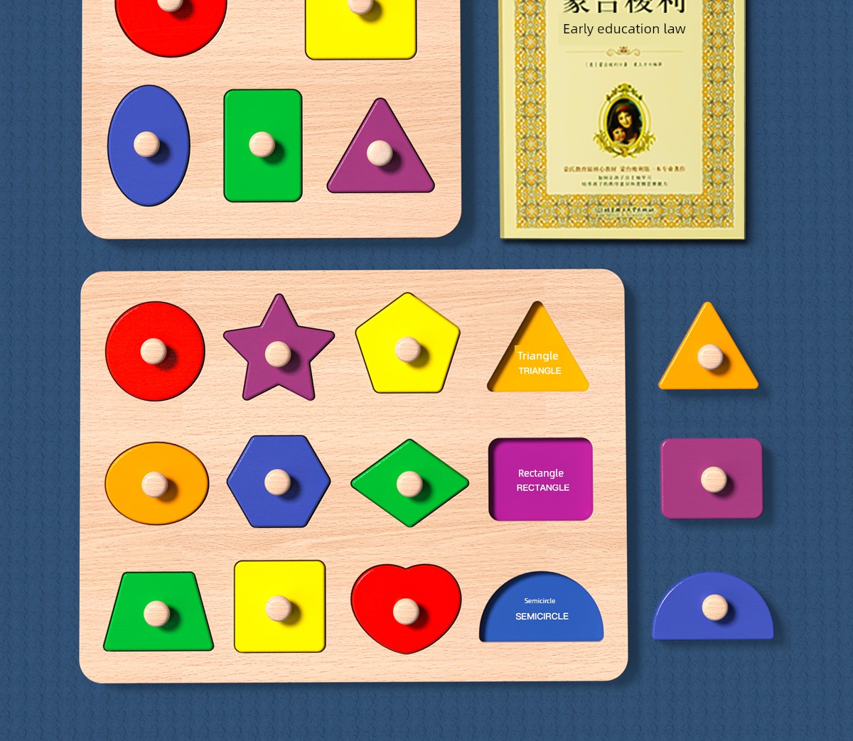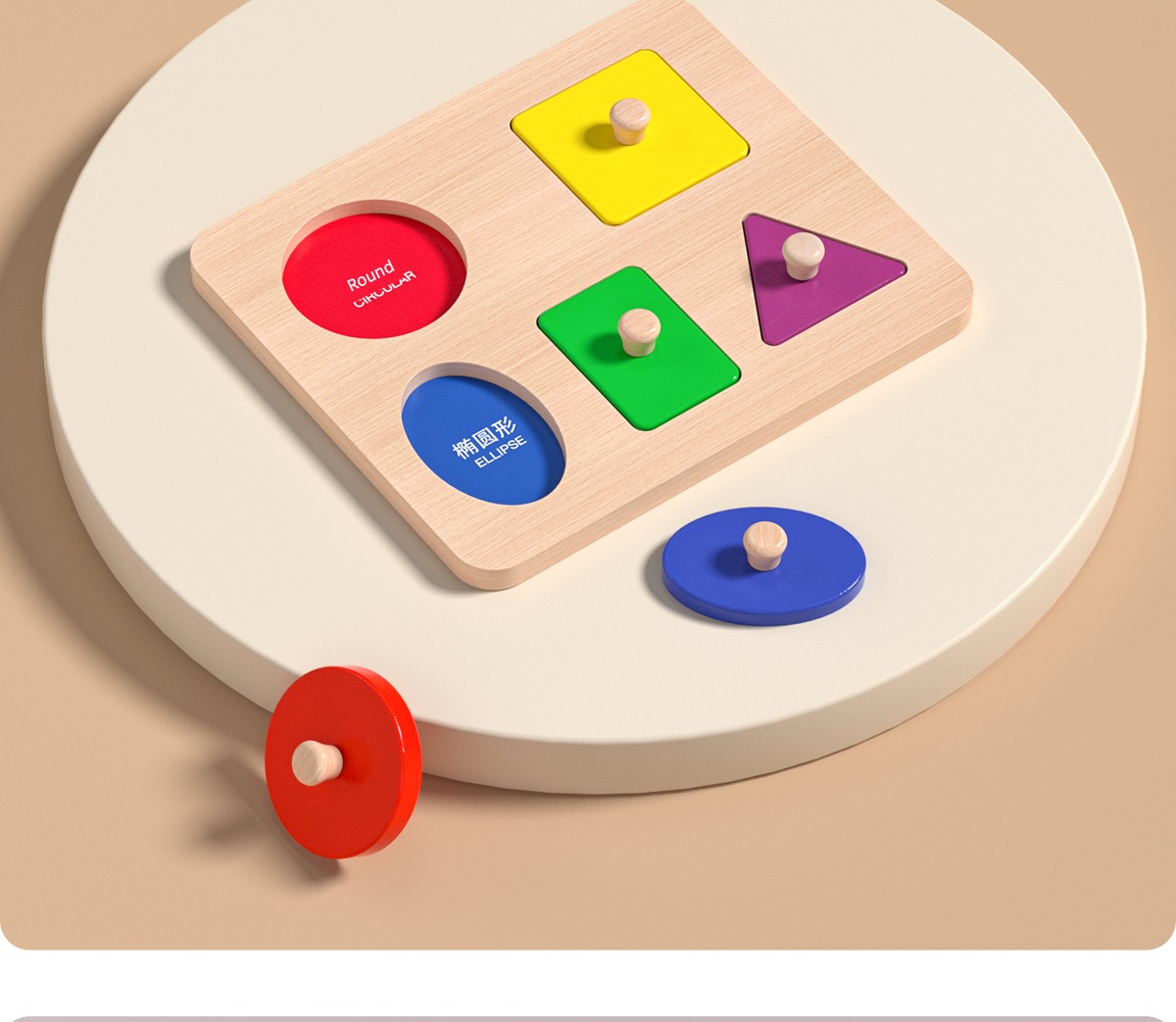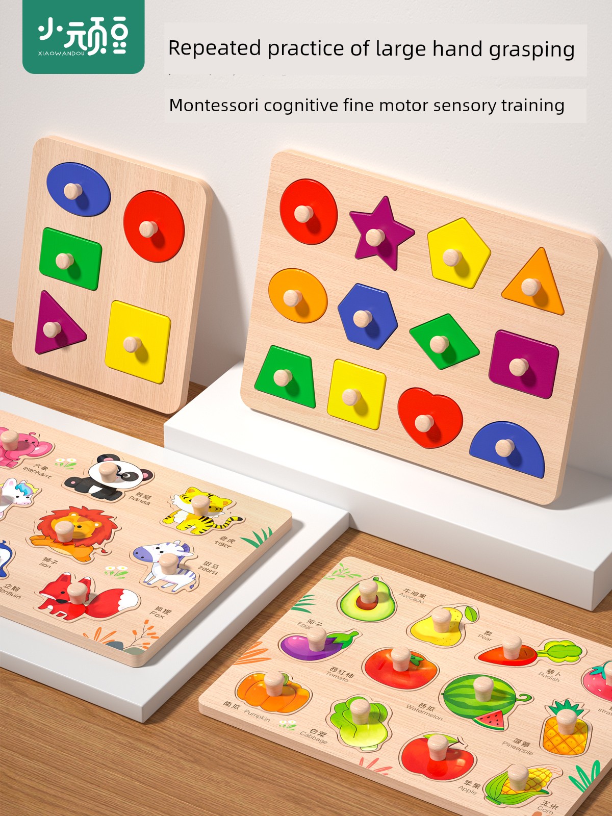热卖蒙氏拼图1一2儿童形状配对手抓板