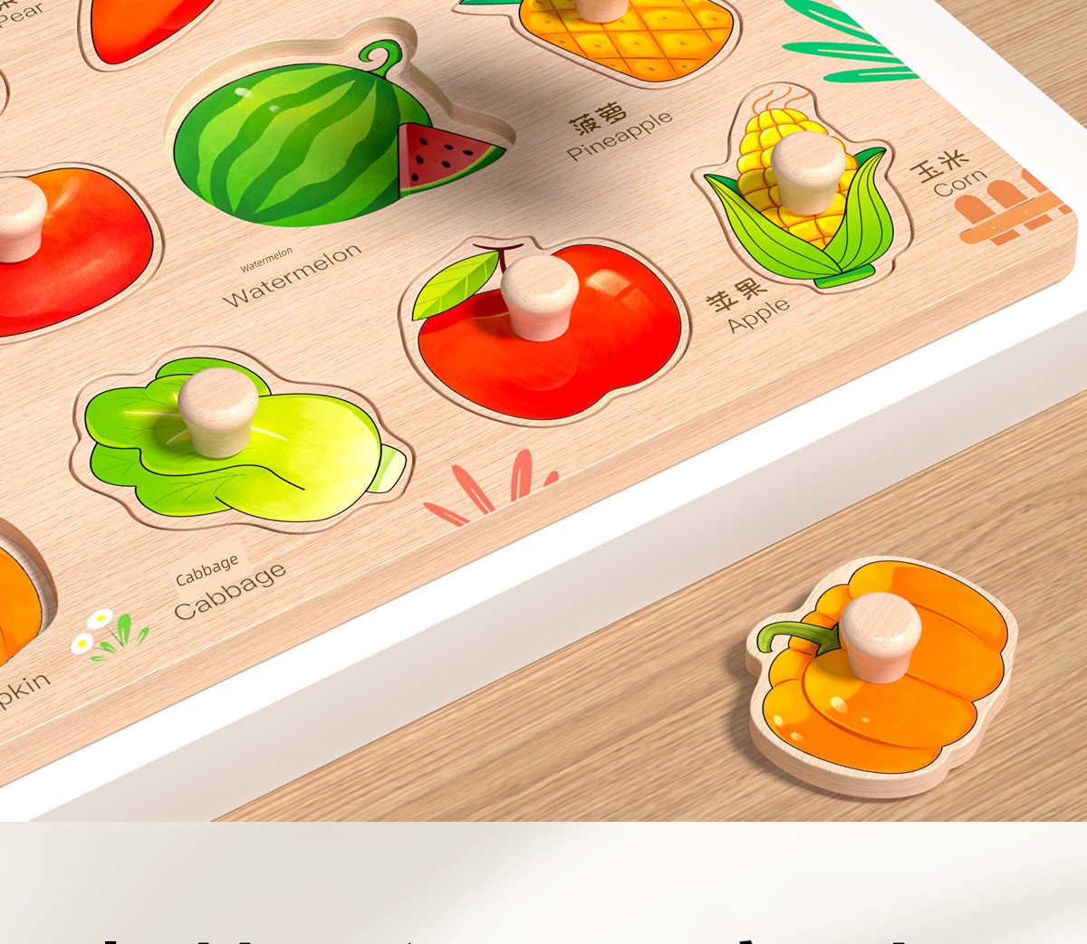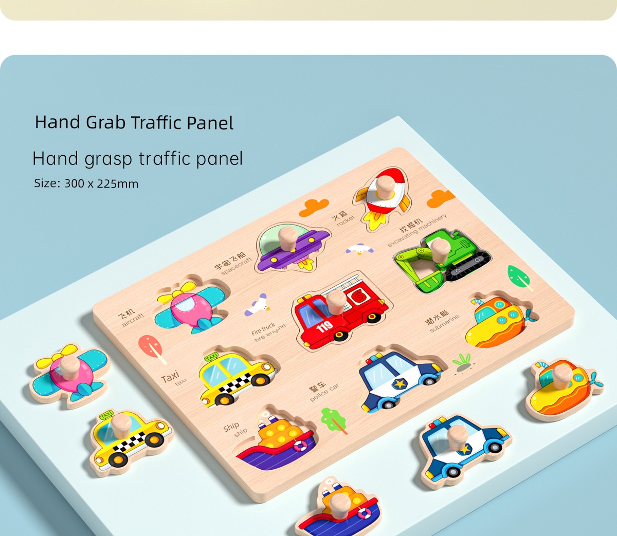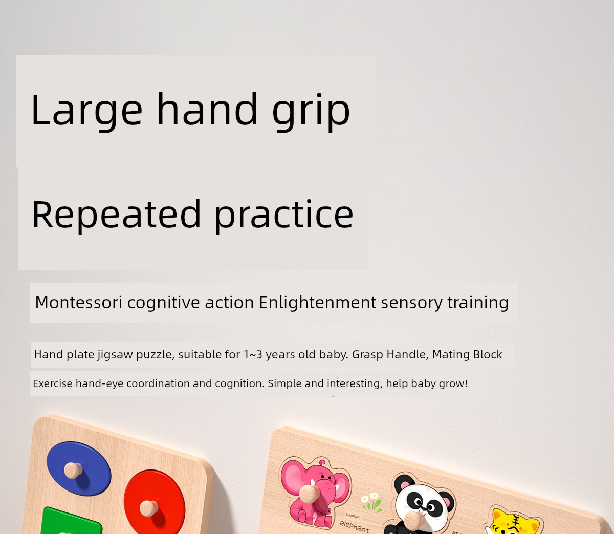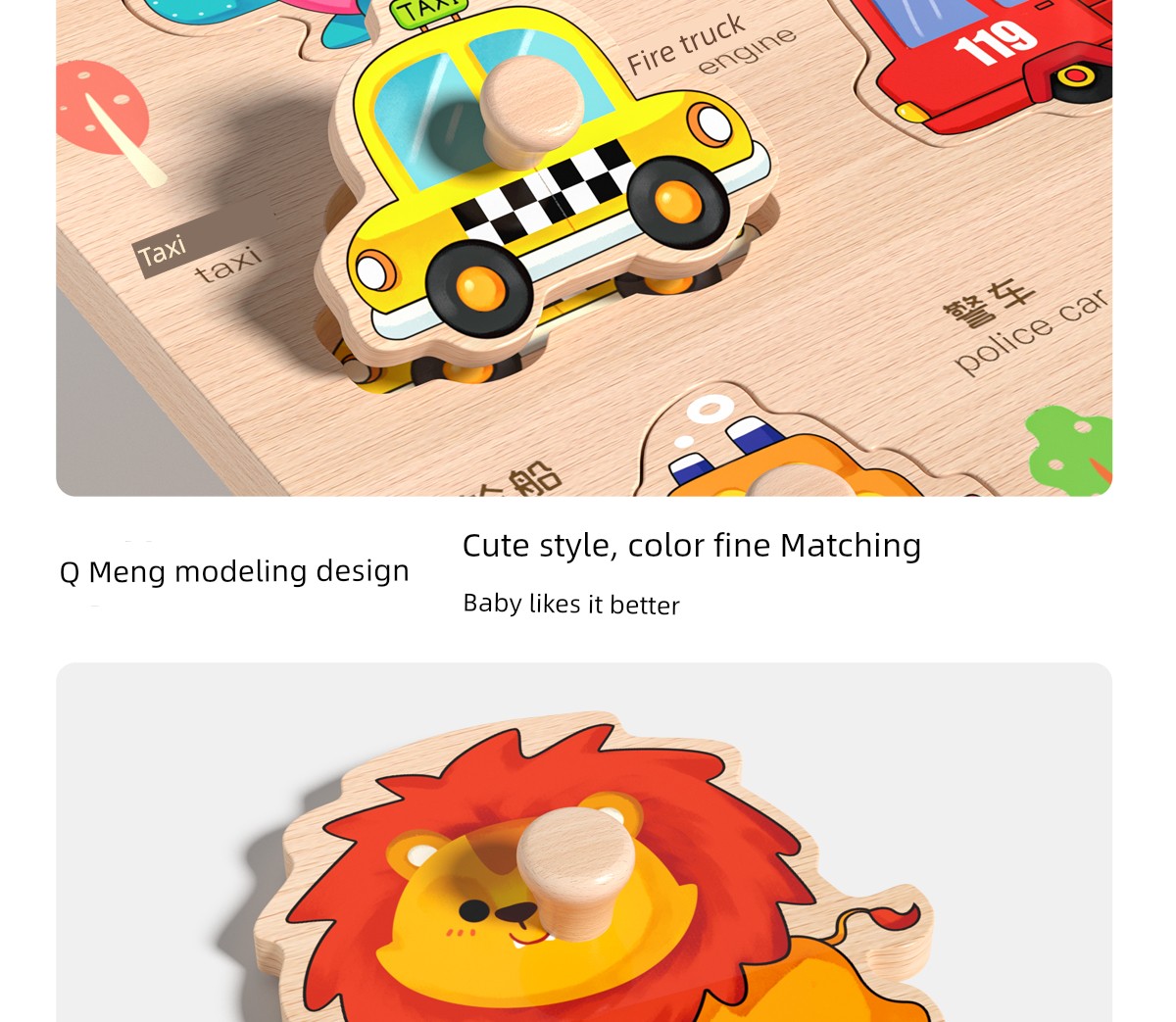 热卖蒙氏拼图1一2儿童形状配对手抓板