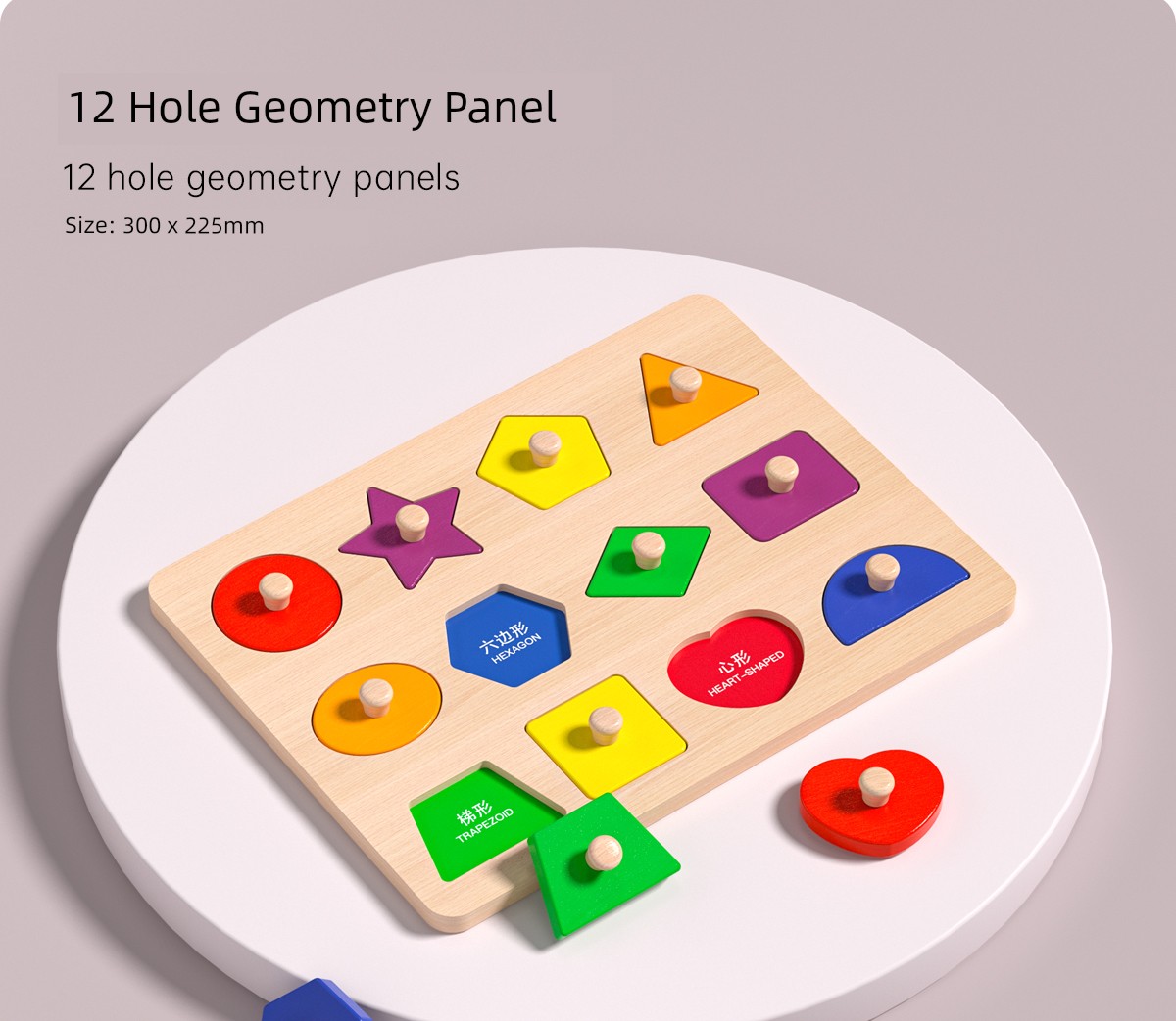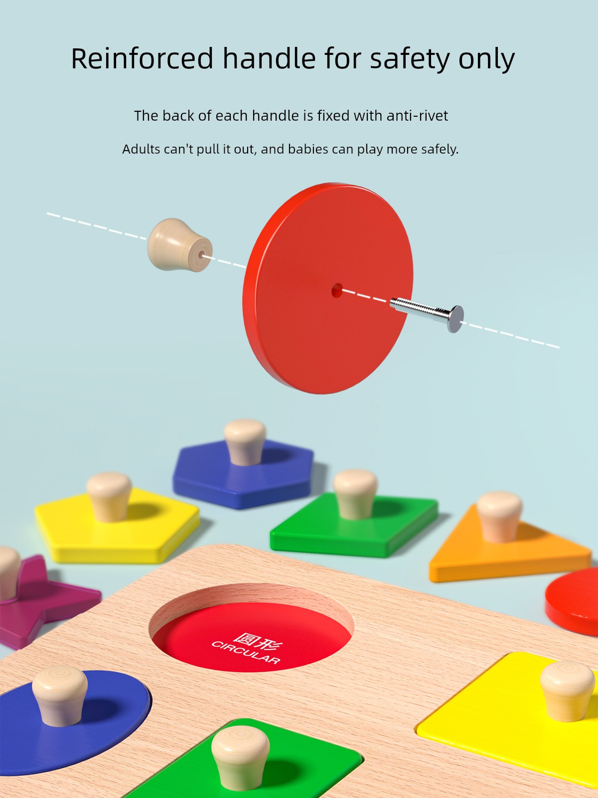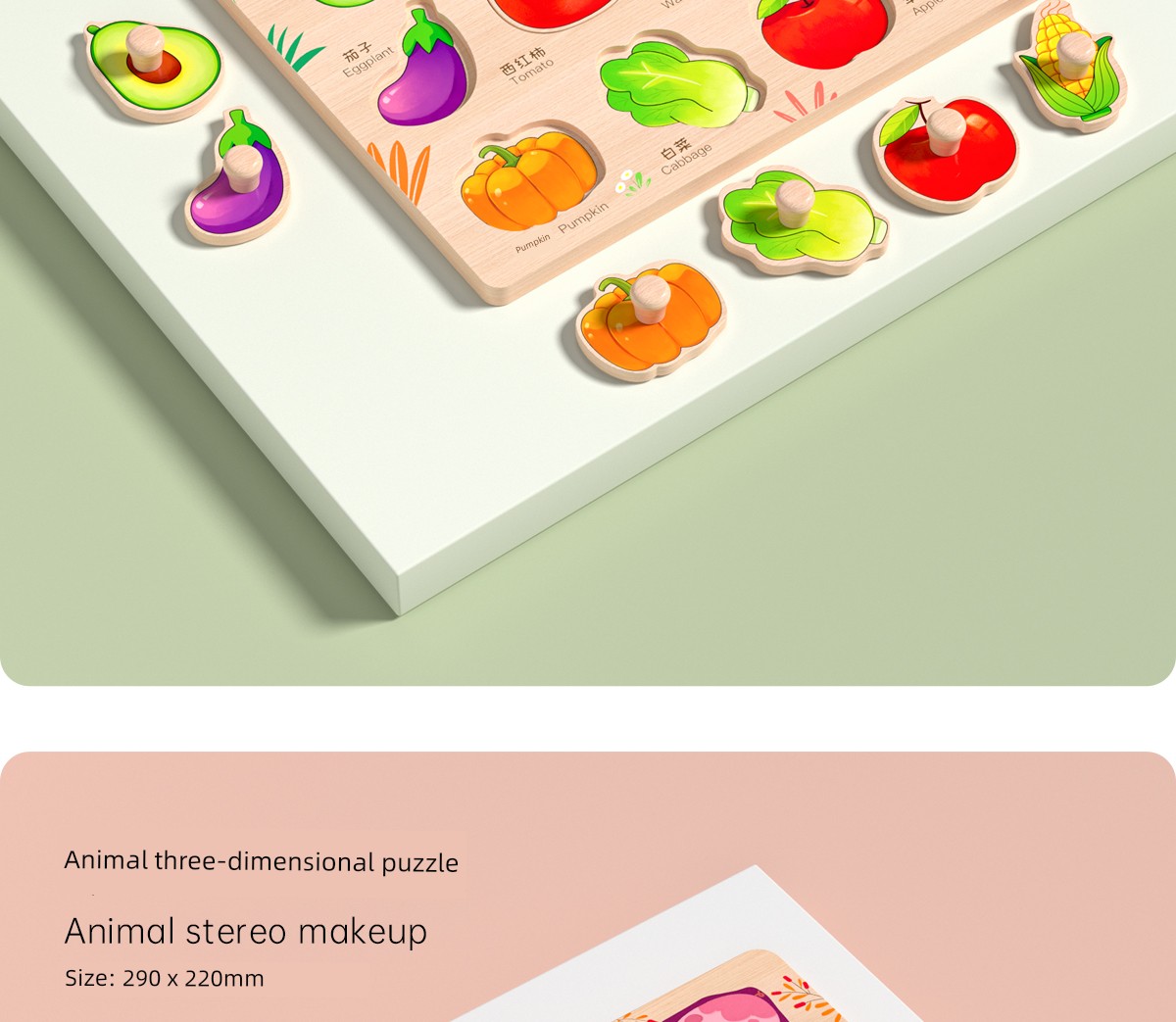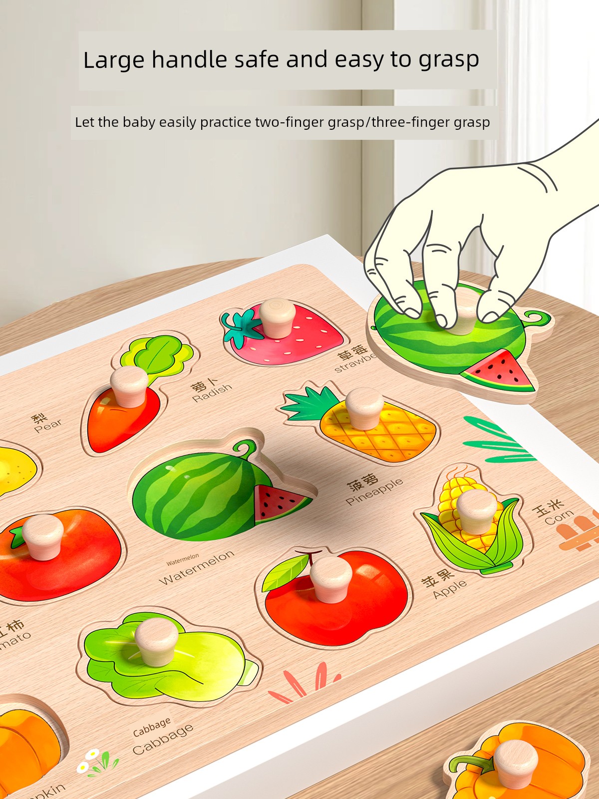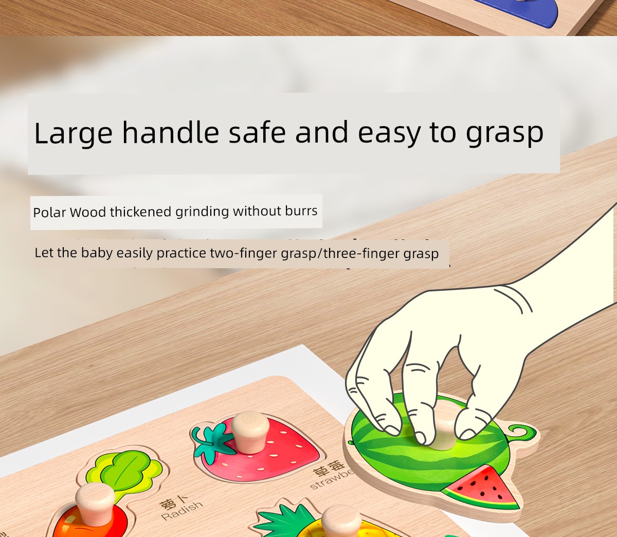 热卖蒙氏拼图1一2儿童形状配对手抓板