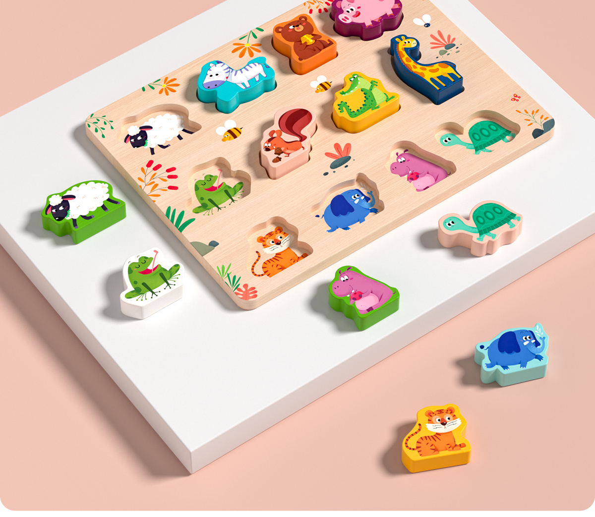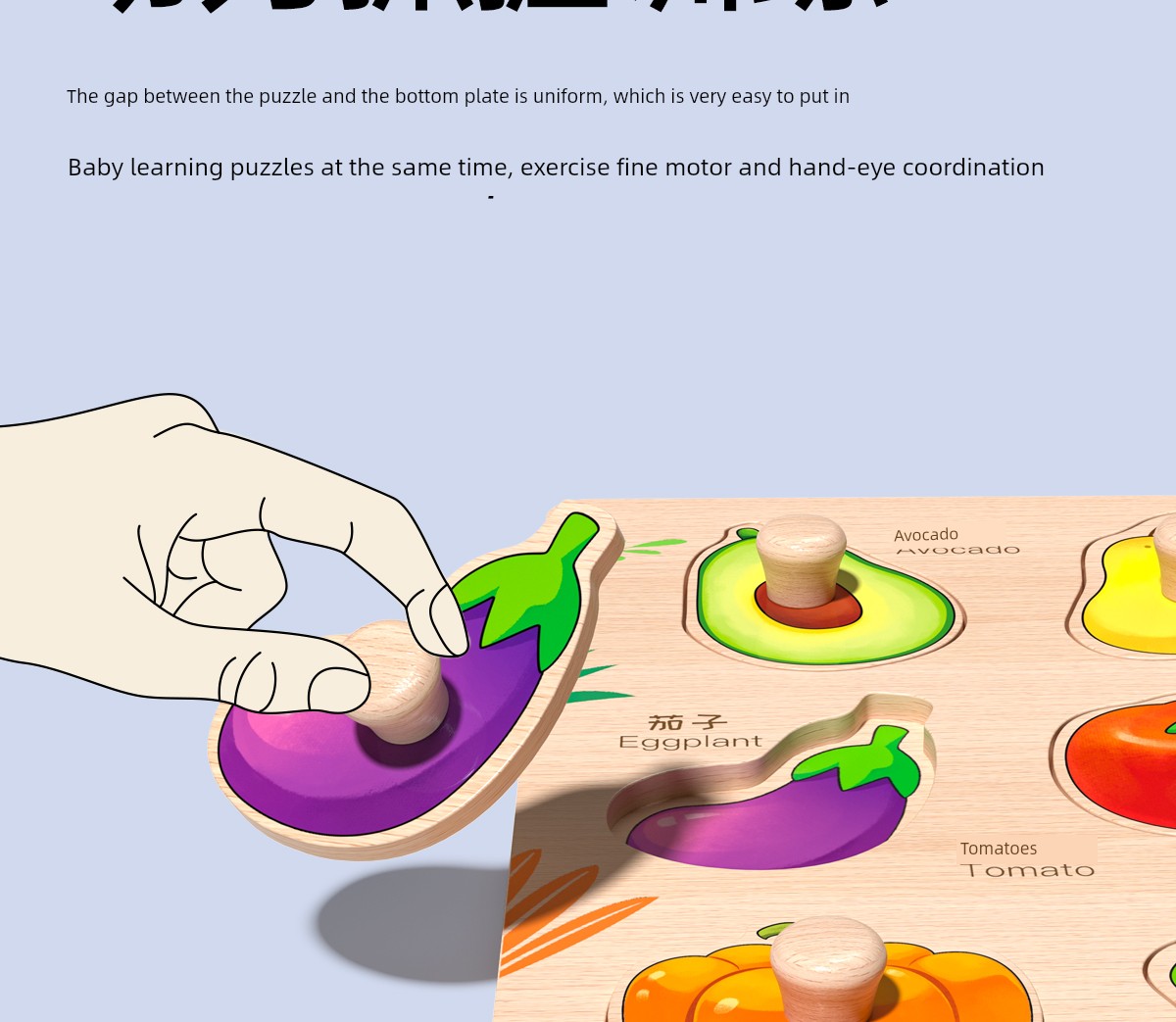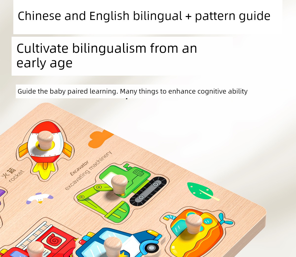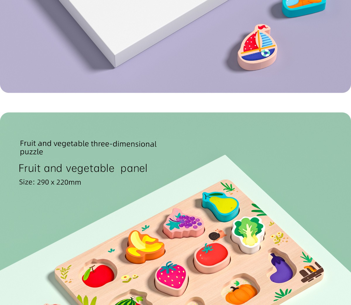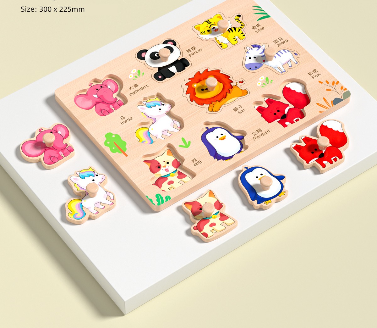 热卖蒙氏拼图1一2儿童形状配对手抓板