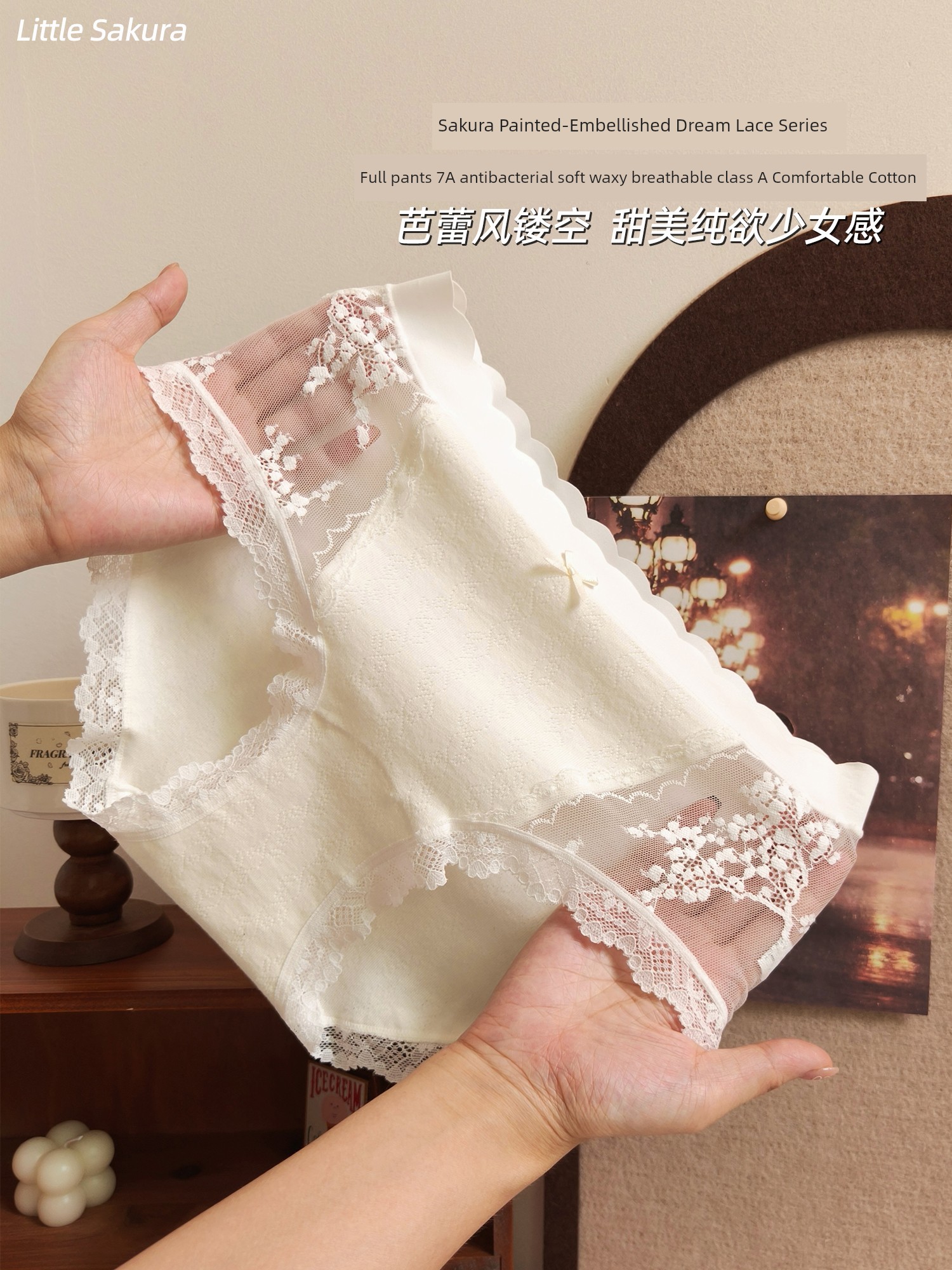 热卖内裤女生纯棉加长全棉裆7a抗菌2025新款纯欲风少女蕾丝女士三角裤