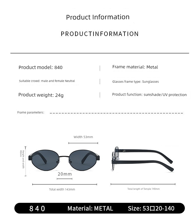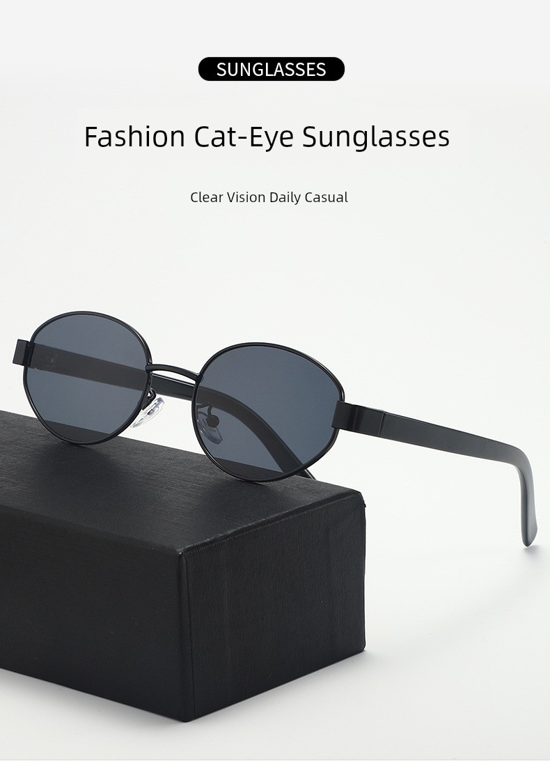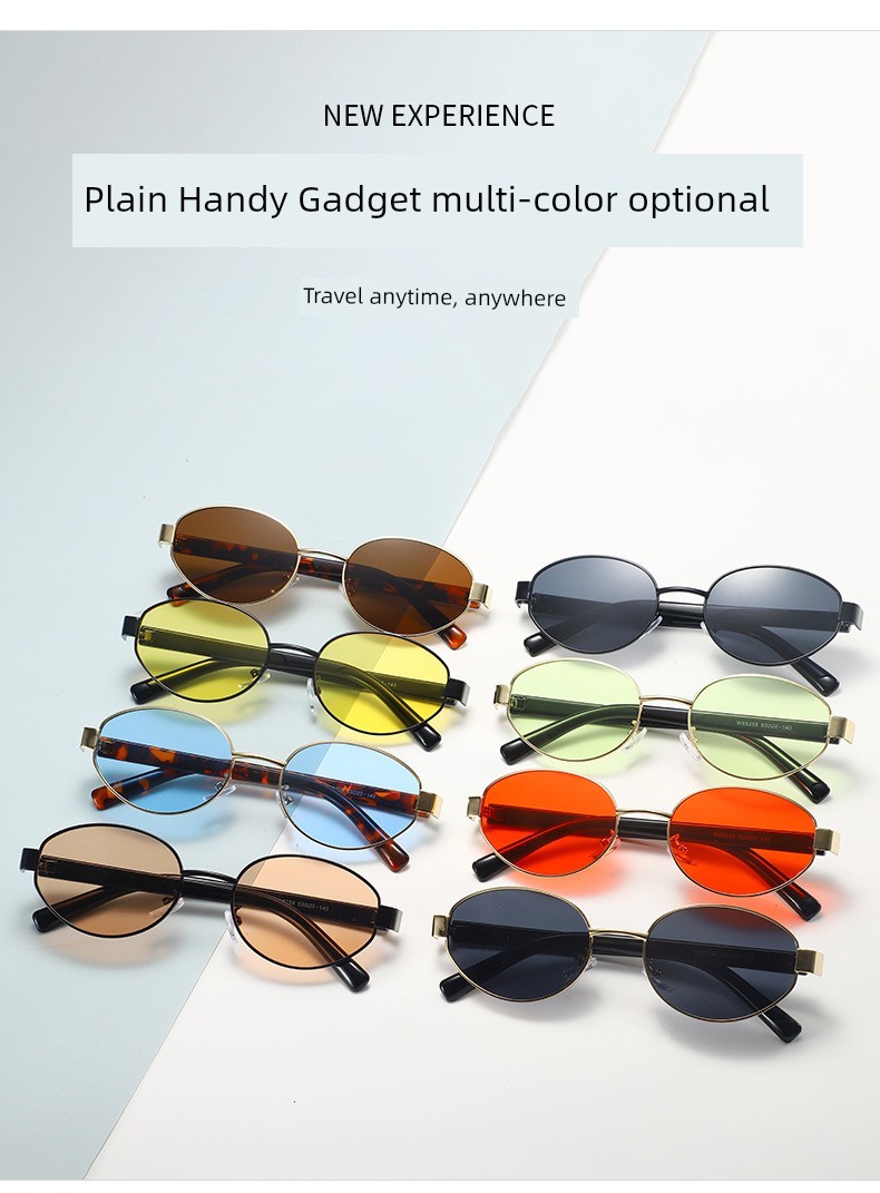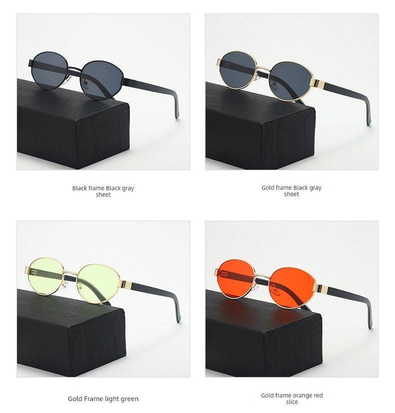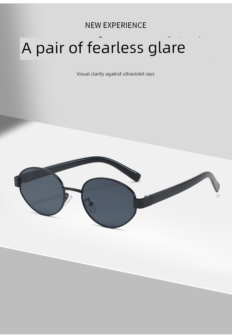 热卖2025新款金属椭圆小框太阳镜拍照墨镜复古高级感潮流女士太阳眼镜