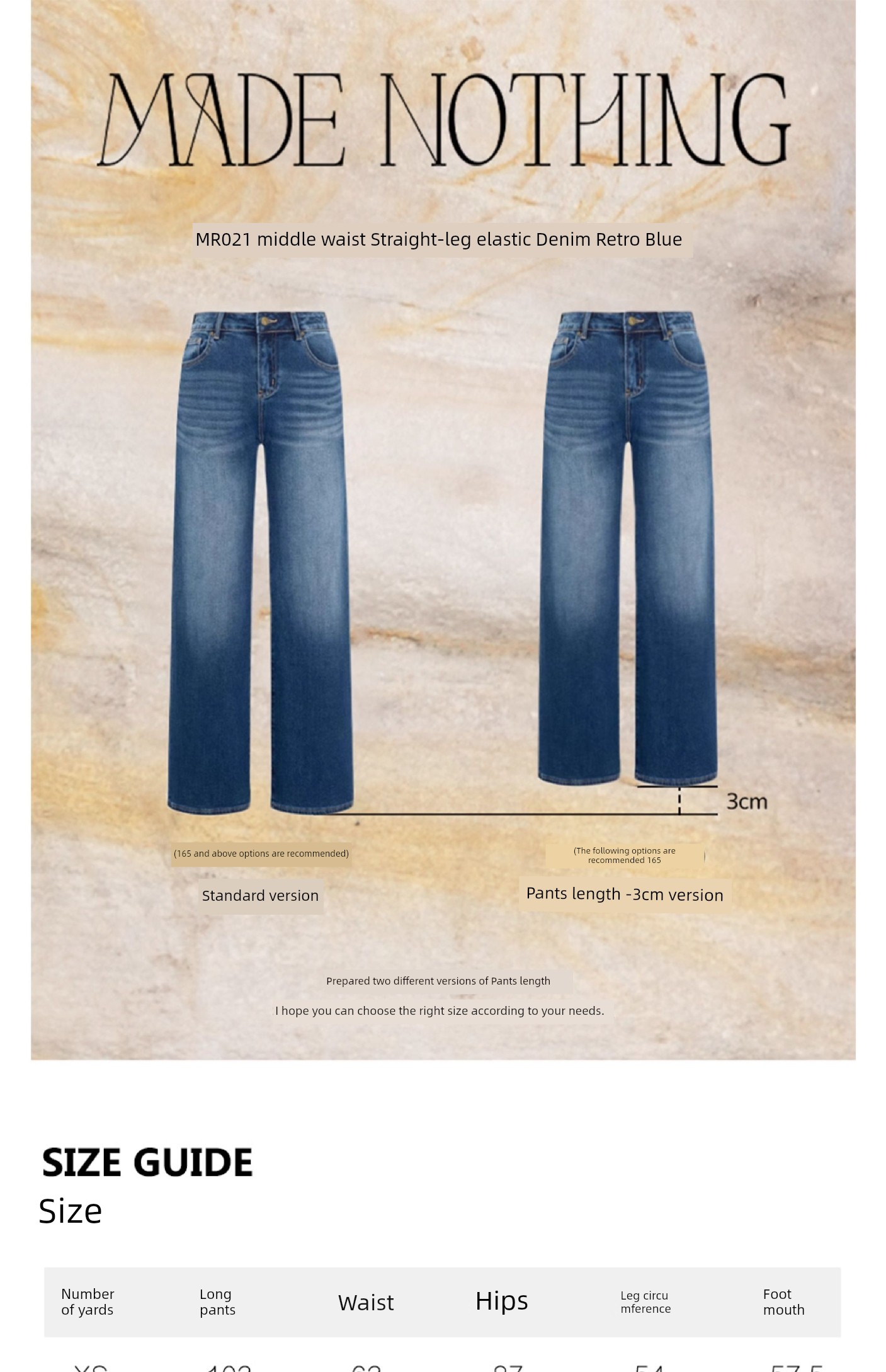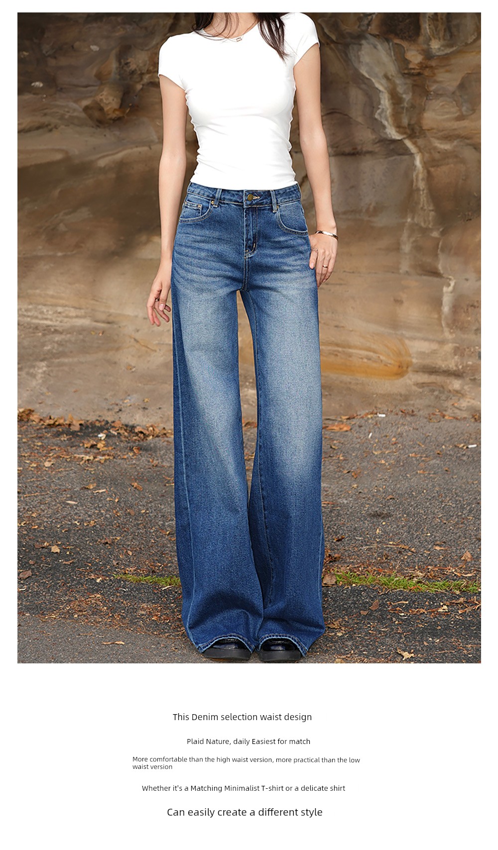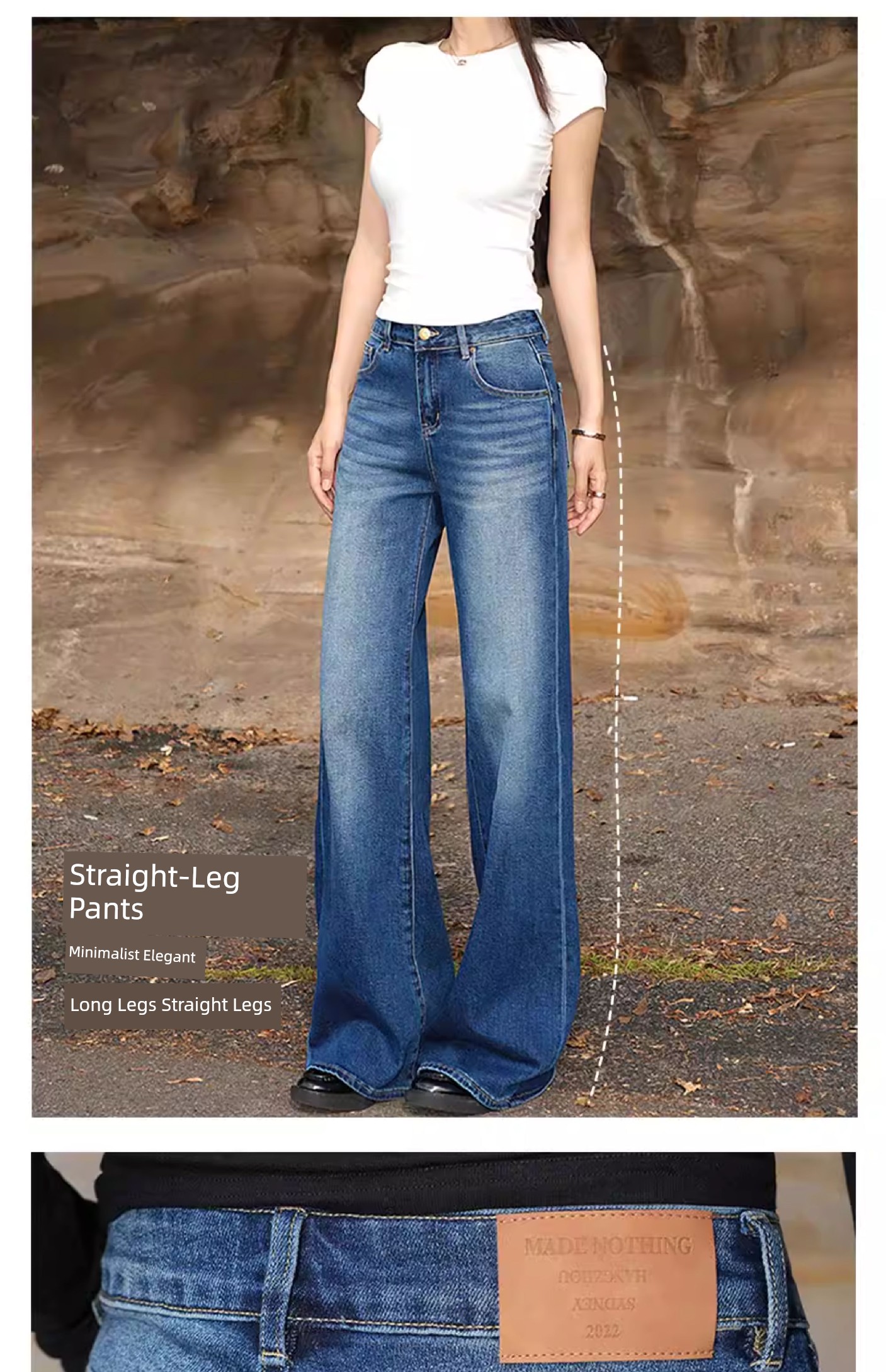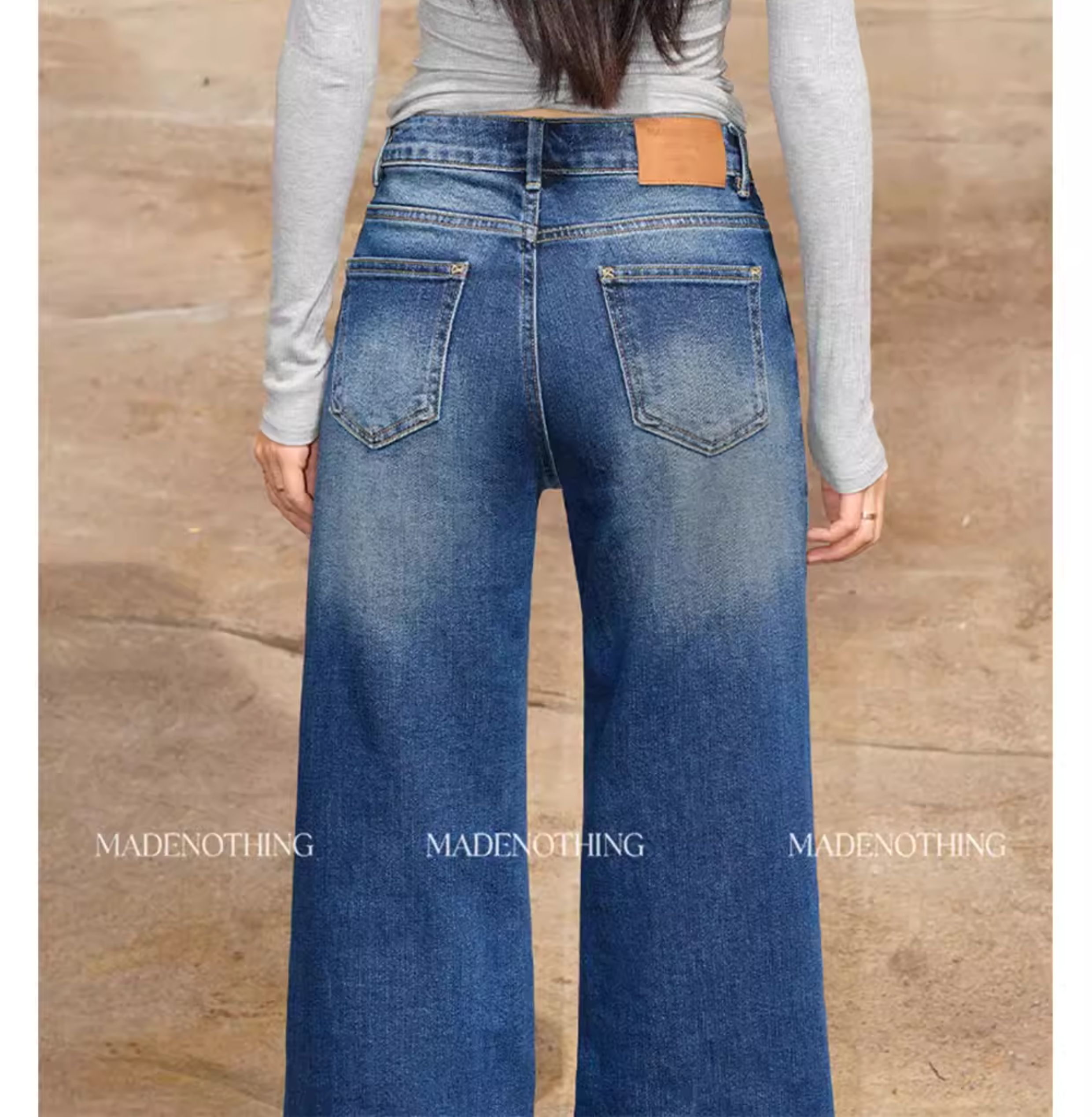 热卖MADE NOTHING 中腰MR021弹力Flare磨白高级水洗复古直筒牛仔裤女