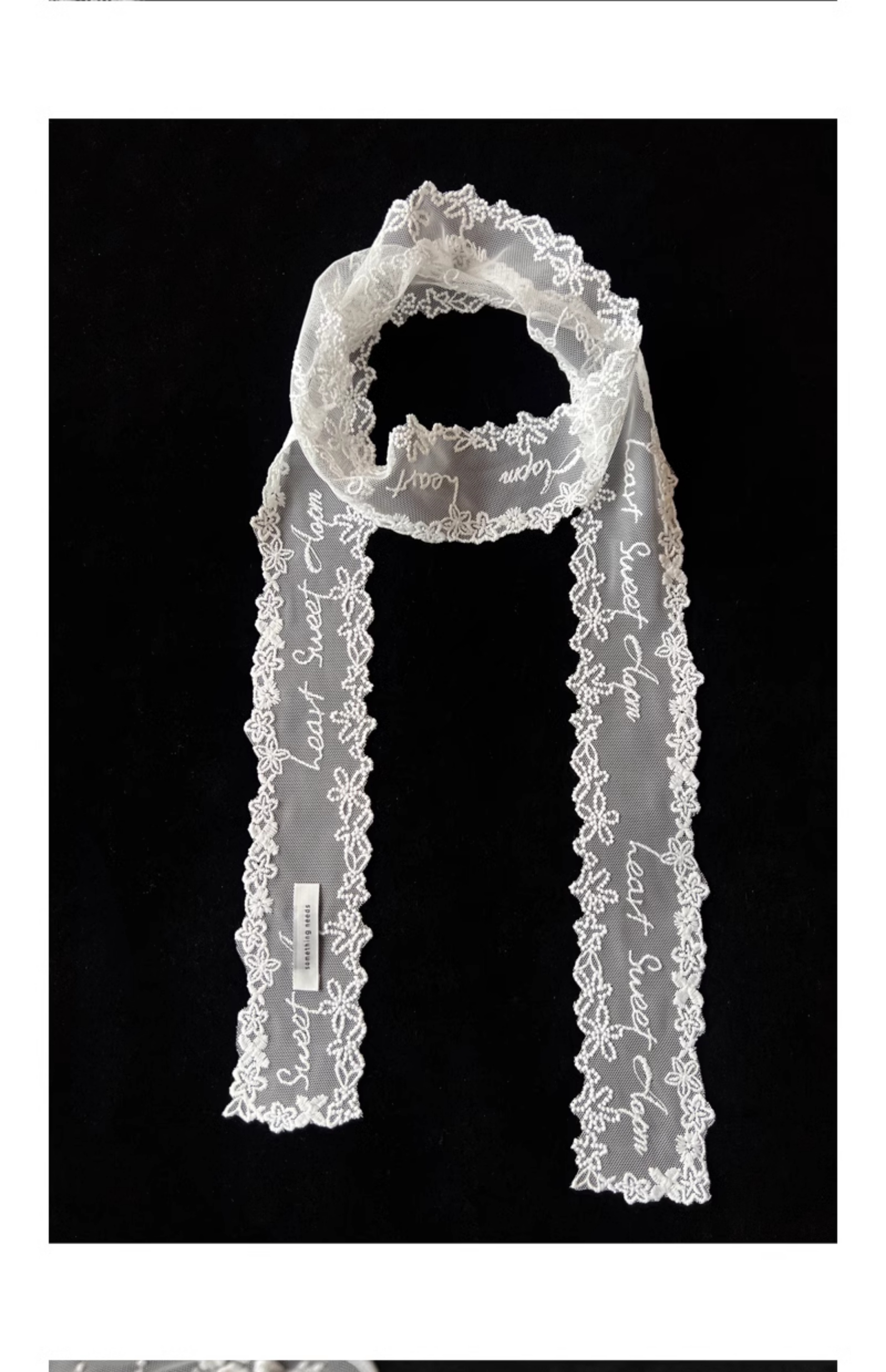 热卖郑佰万 法式蕾丝细窄长条丝巾女春夏百搭围脖装饰气质飘带颈带韩