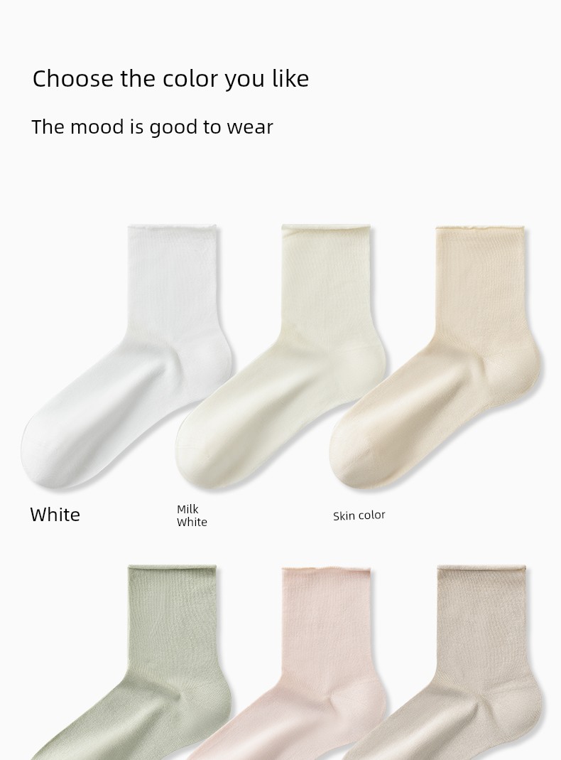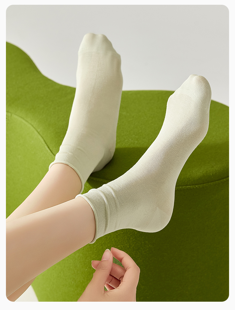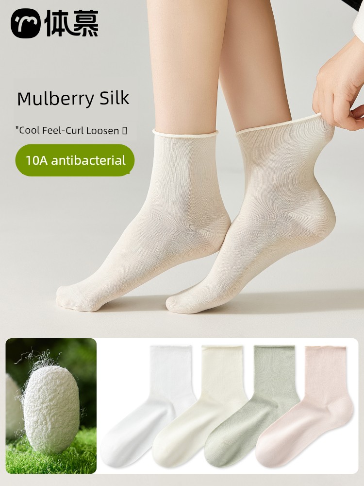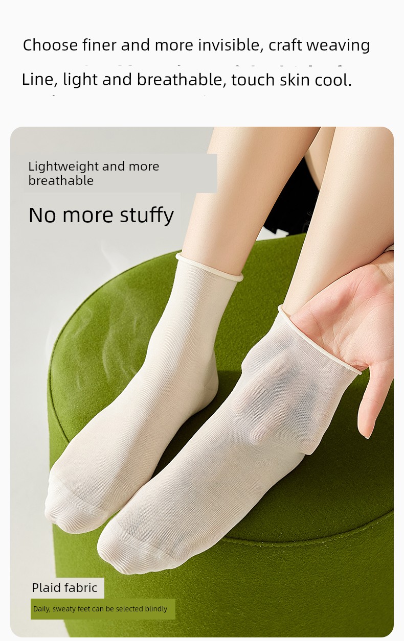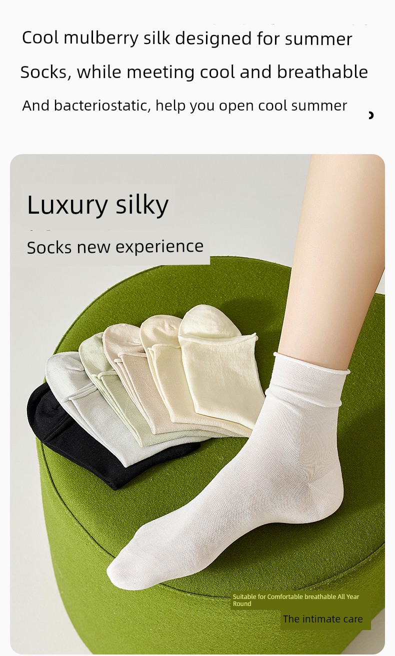热卖袜子女夏季薄款凉感桑蚕丝中筒袜抗菌防臭卷边冰丝袜透气无骨短袜