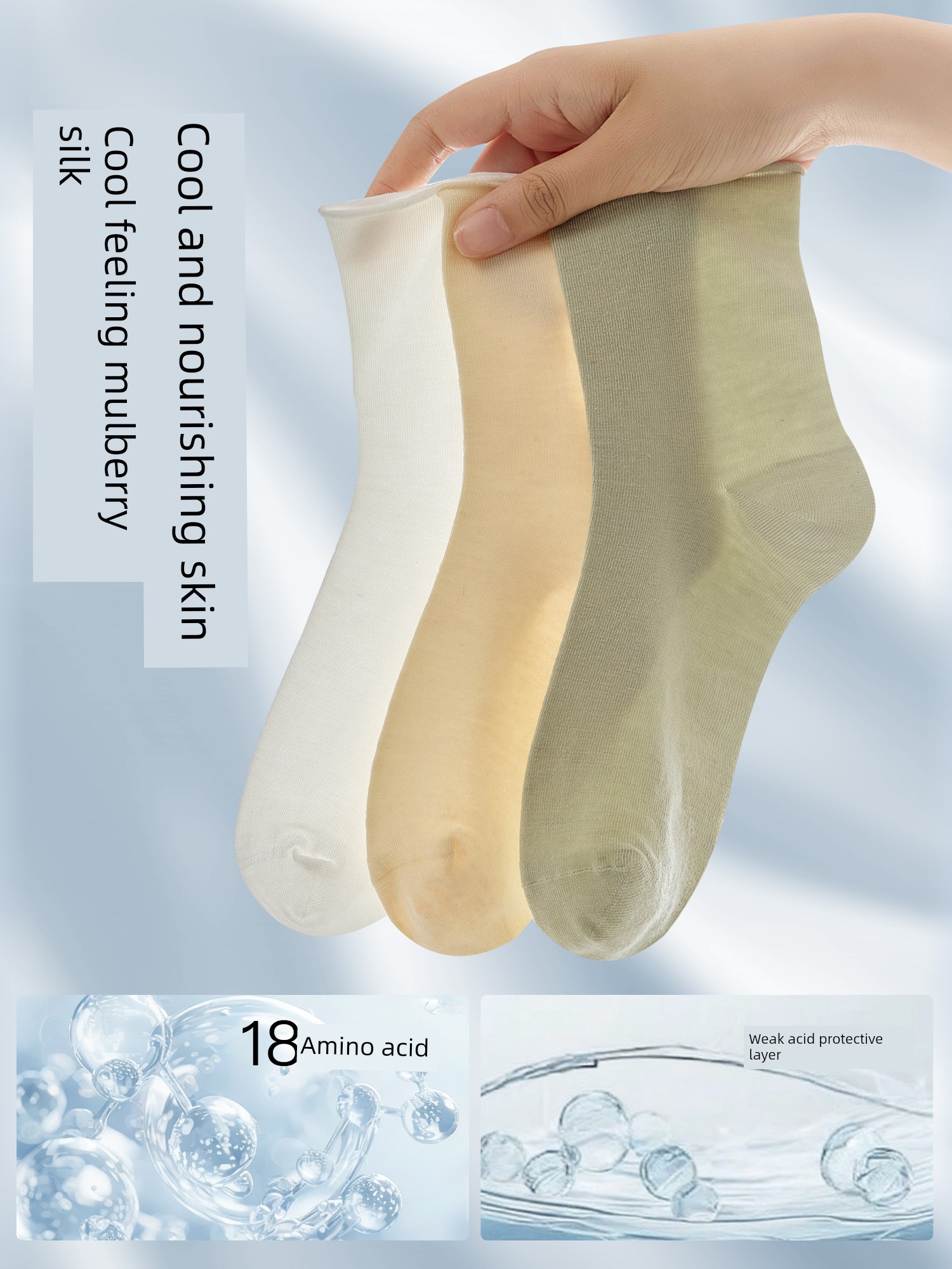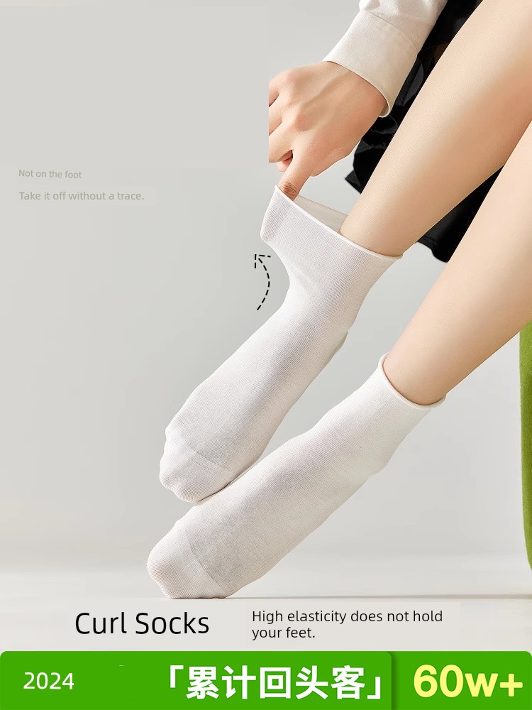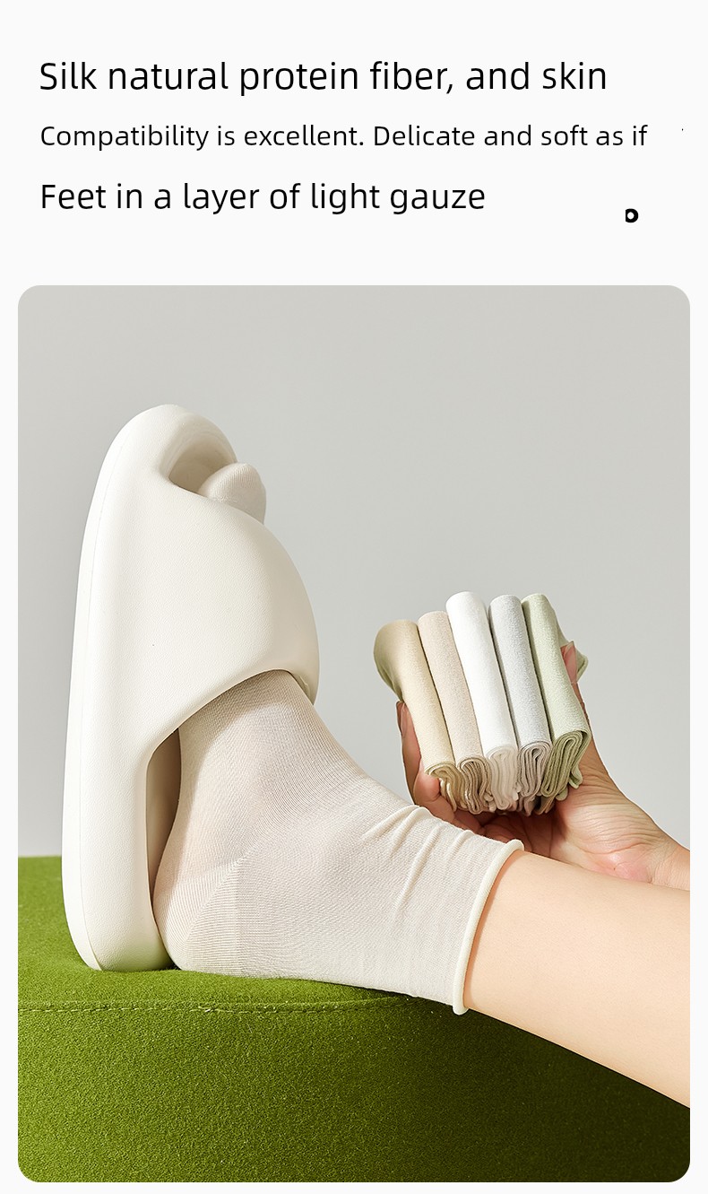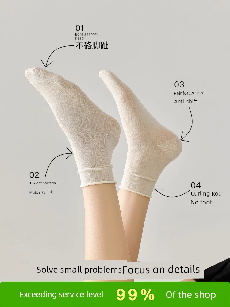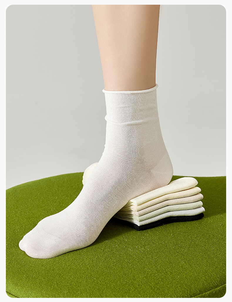热卖袜子女夏季薄款凉感桑蚕丝中筒袜抗菌防臭卷边冰丝袜透气无骨短袜