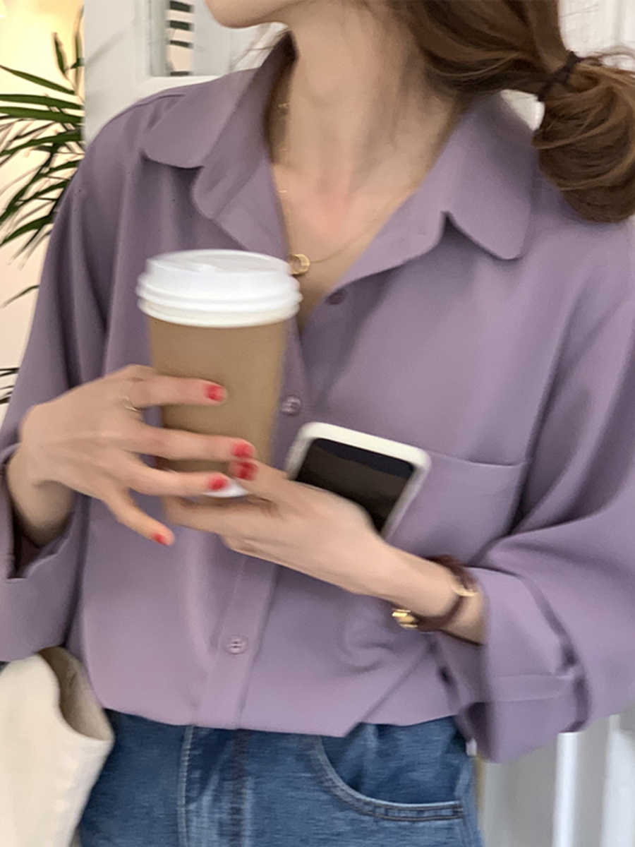 热卖紫色衬衫女秋季早秋轻通勤穿搭长袖雪纺衬衣设计感小众巨好看上衣