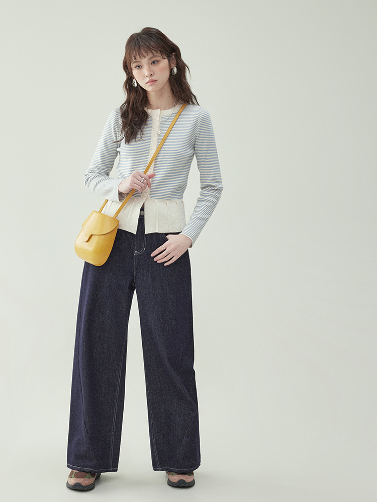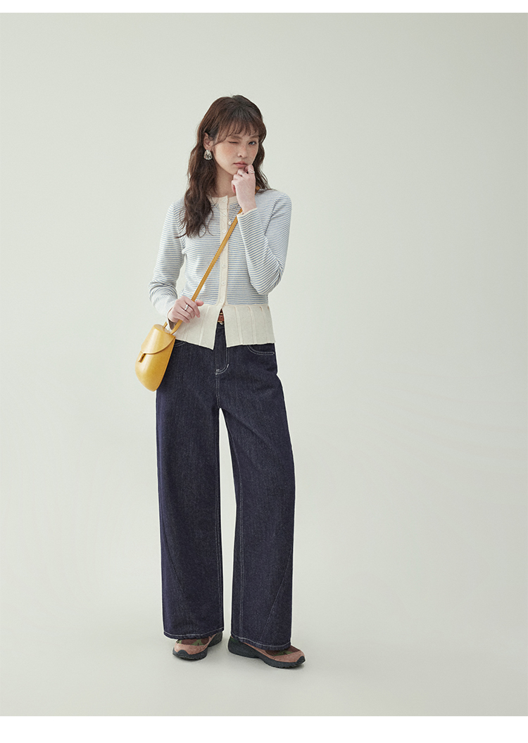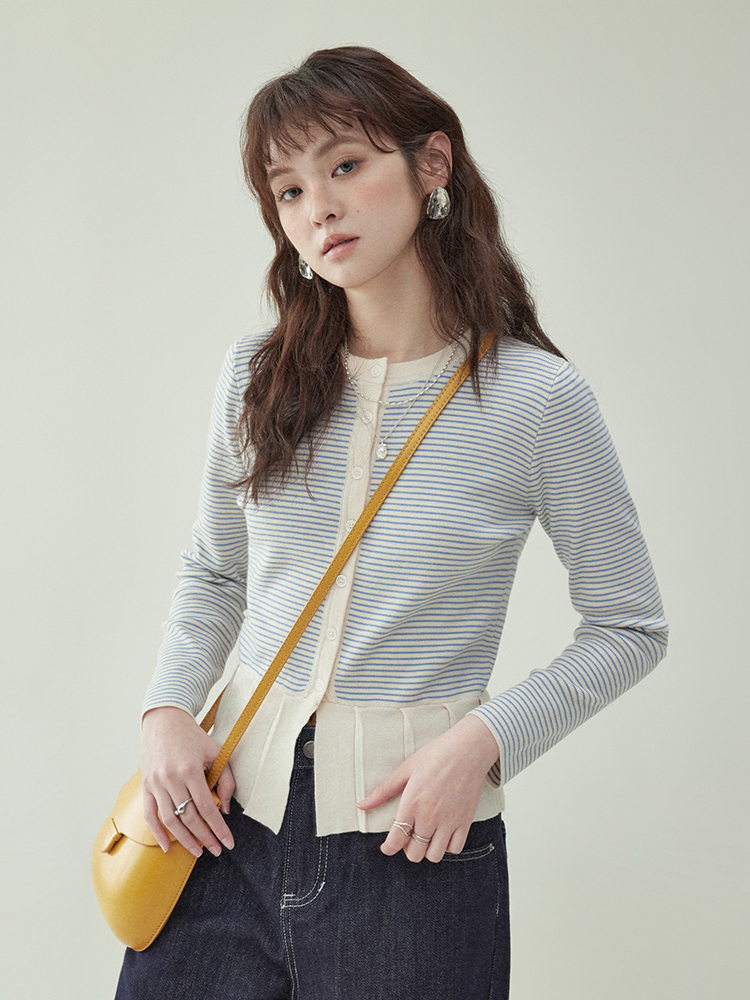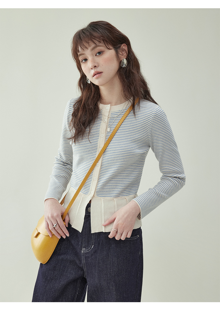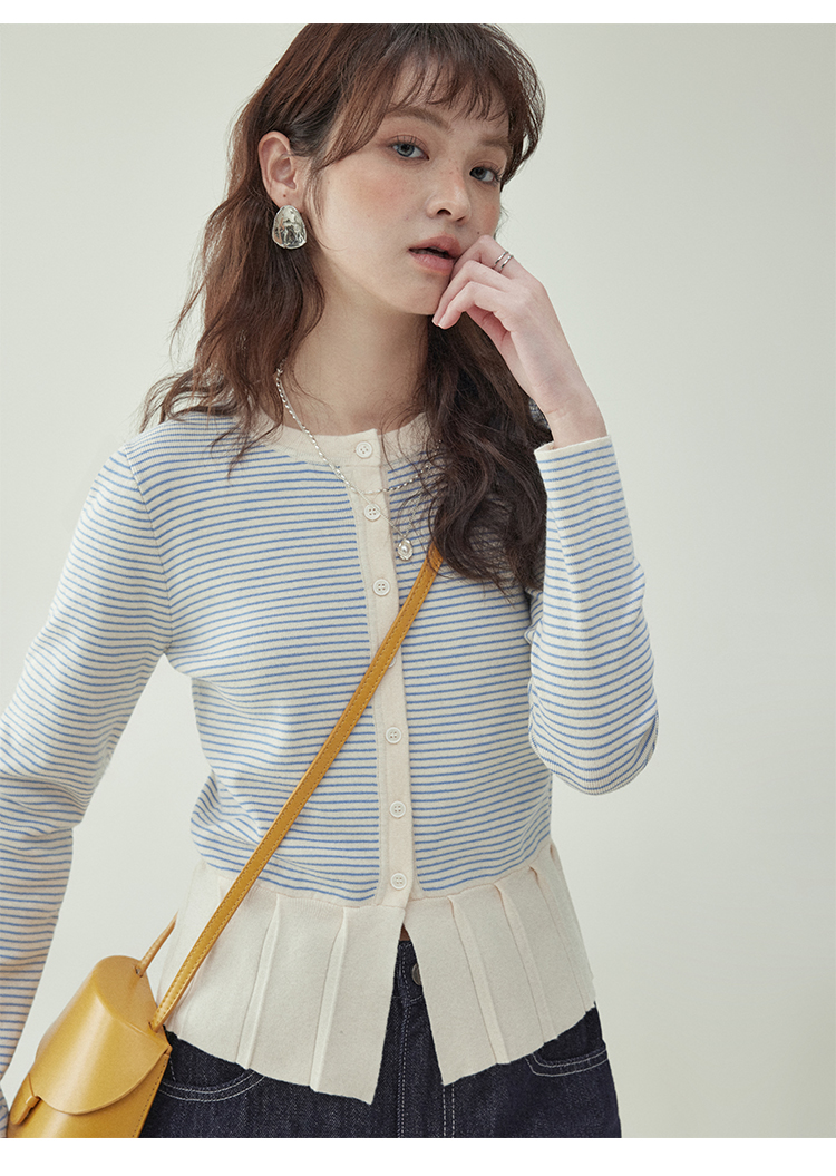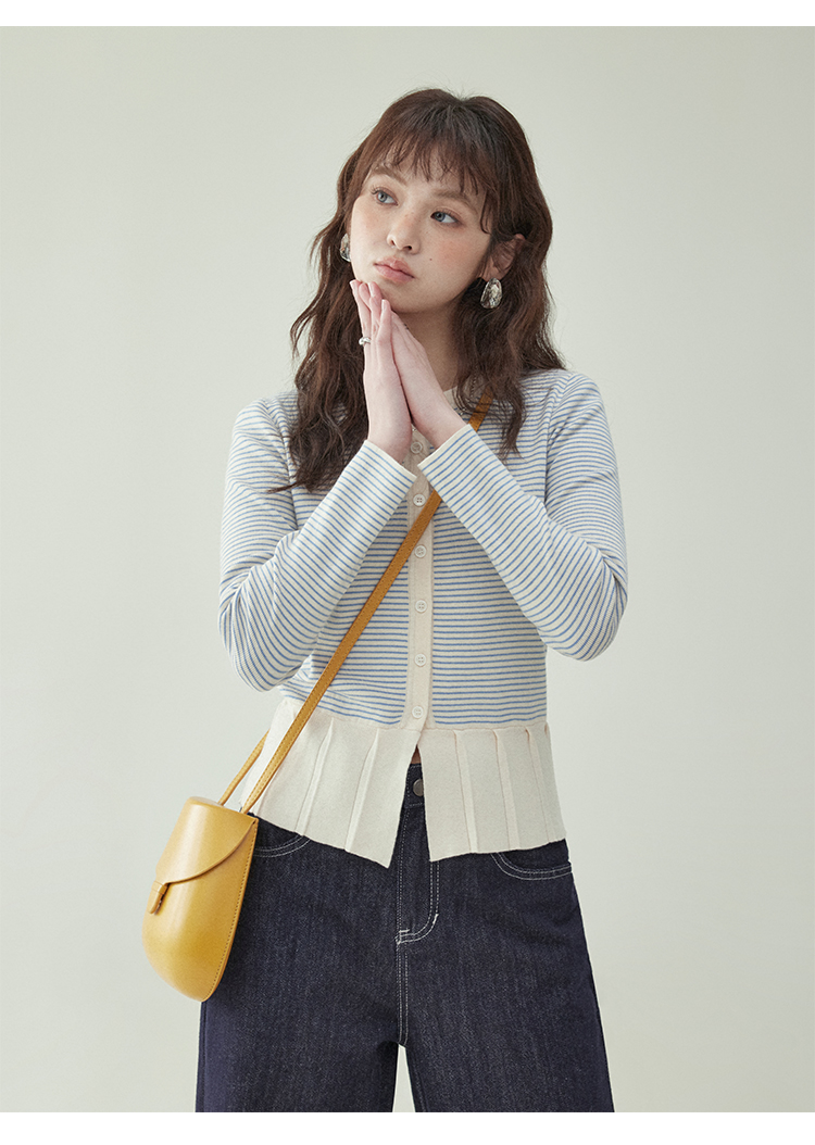 热卖「北岛AMUU原创」拼色条纹百褶下摆针织衫女秋季新款小众长袖上衣