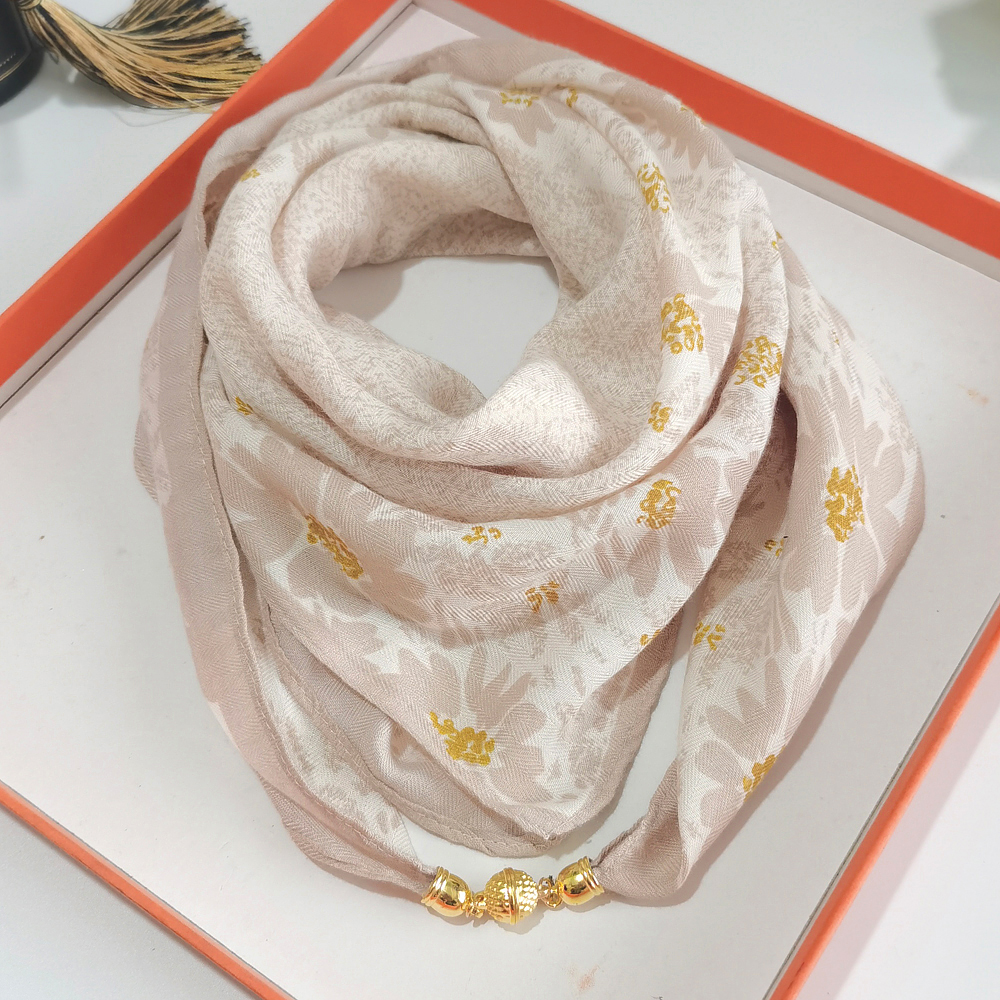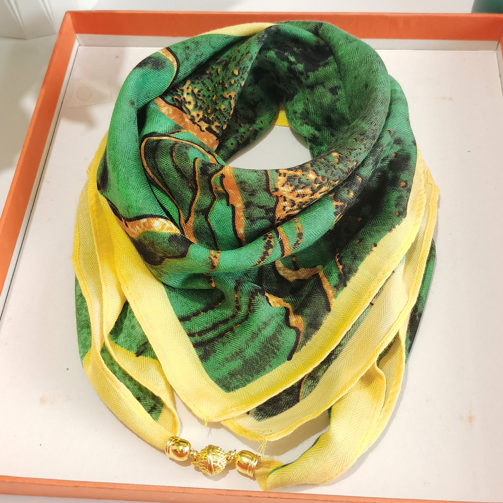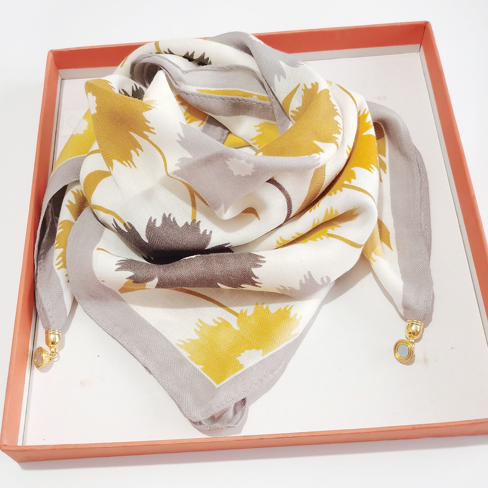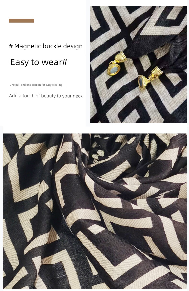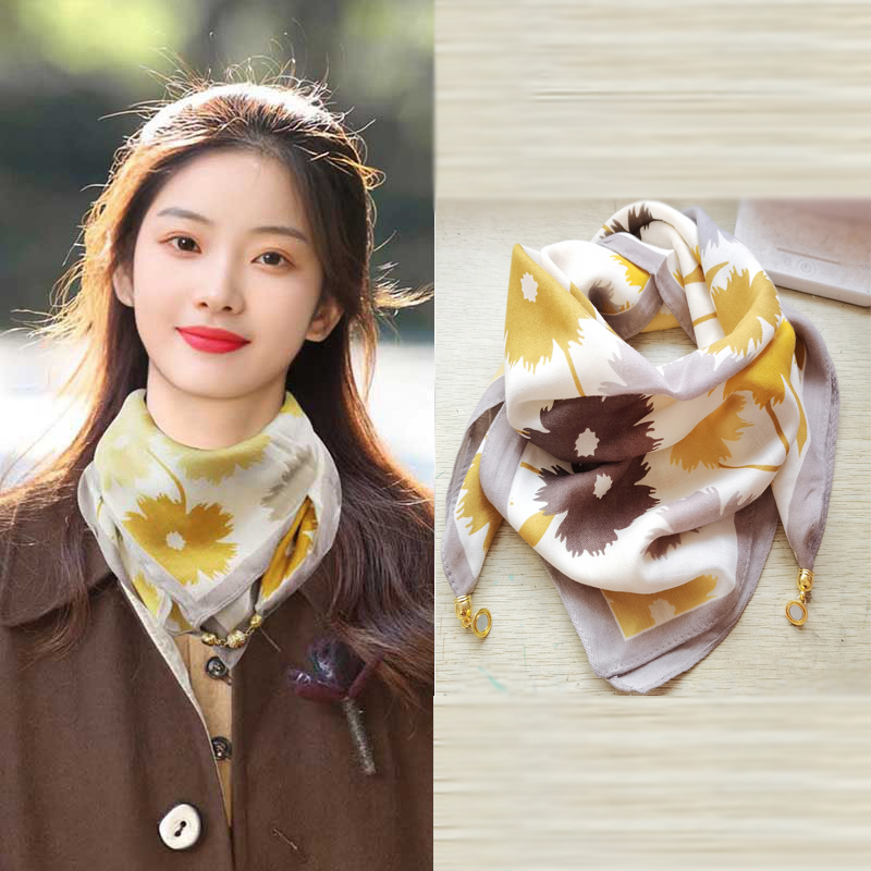 热卖磁吸扣方巾三角丝巾围巾女春夏季护颈棉麻金球百搭送闺蜜轻奢礼物