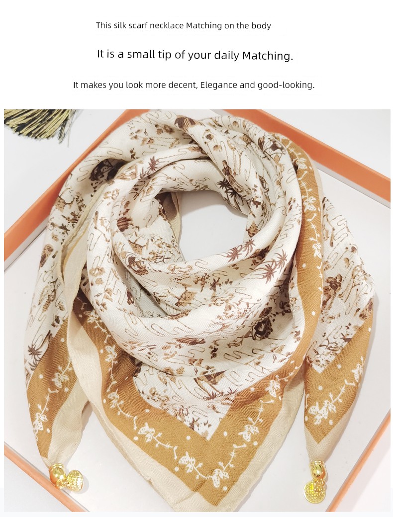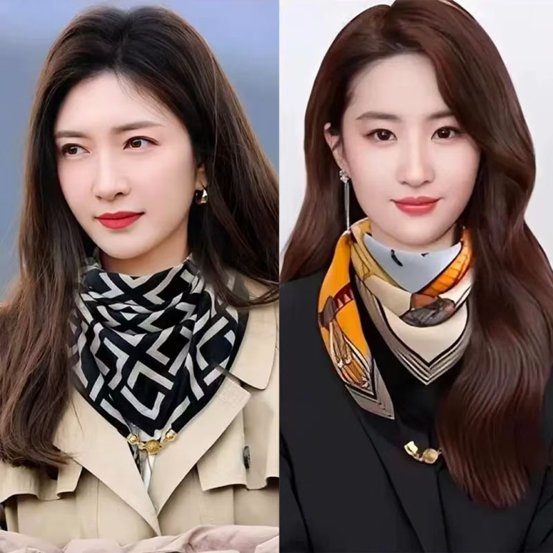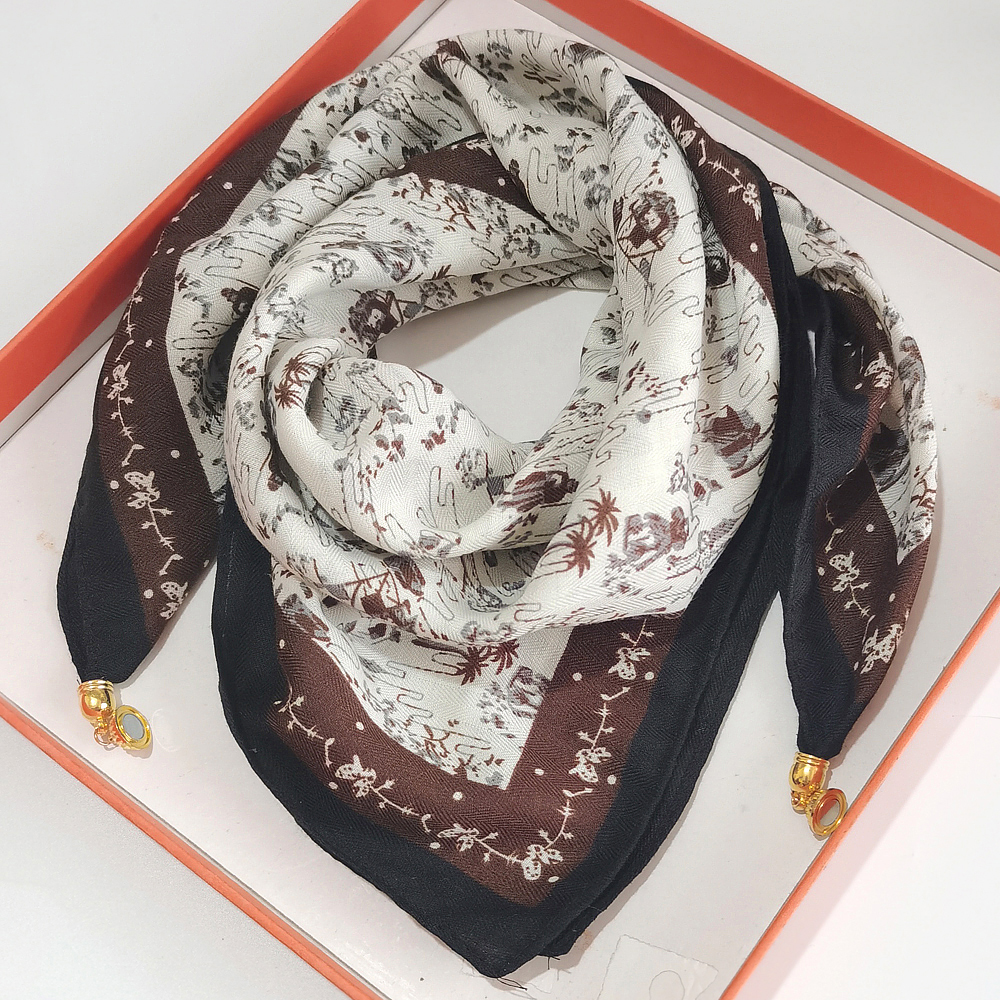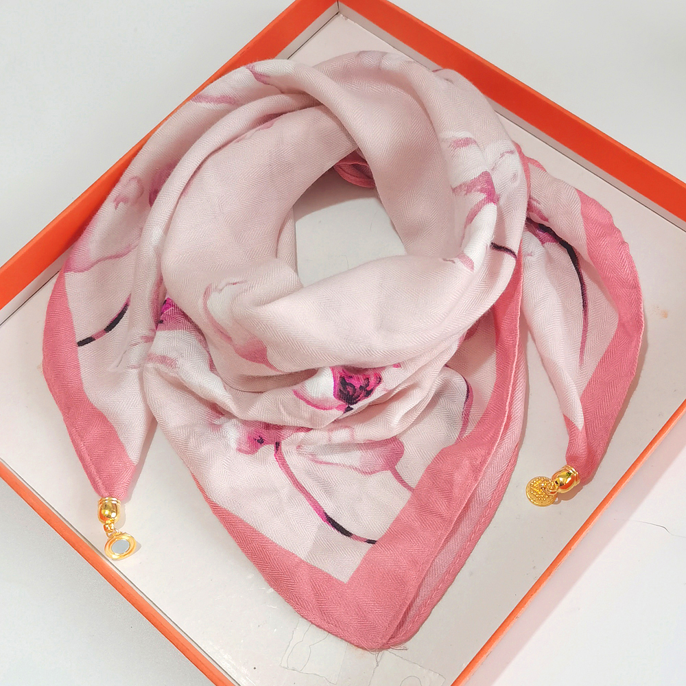 热卖磁吸扣方巾三角丝巾围巾女春夏季护颈棉麻金球百搭送闺蜜轻奢礼物
