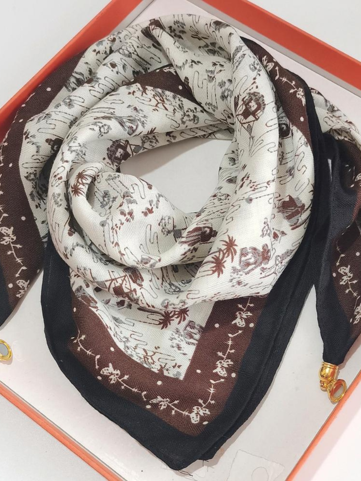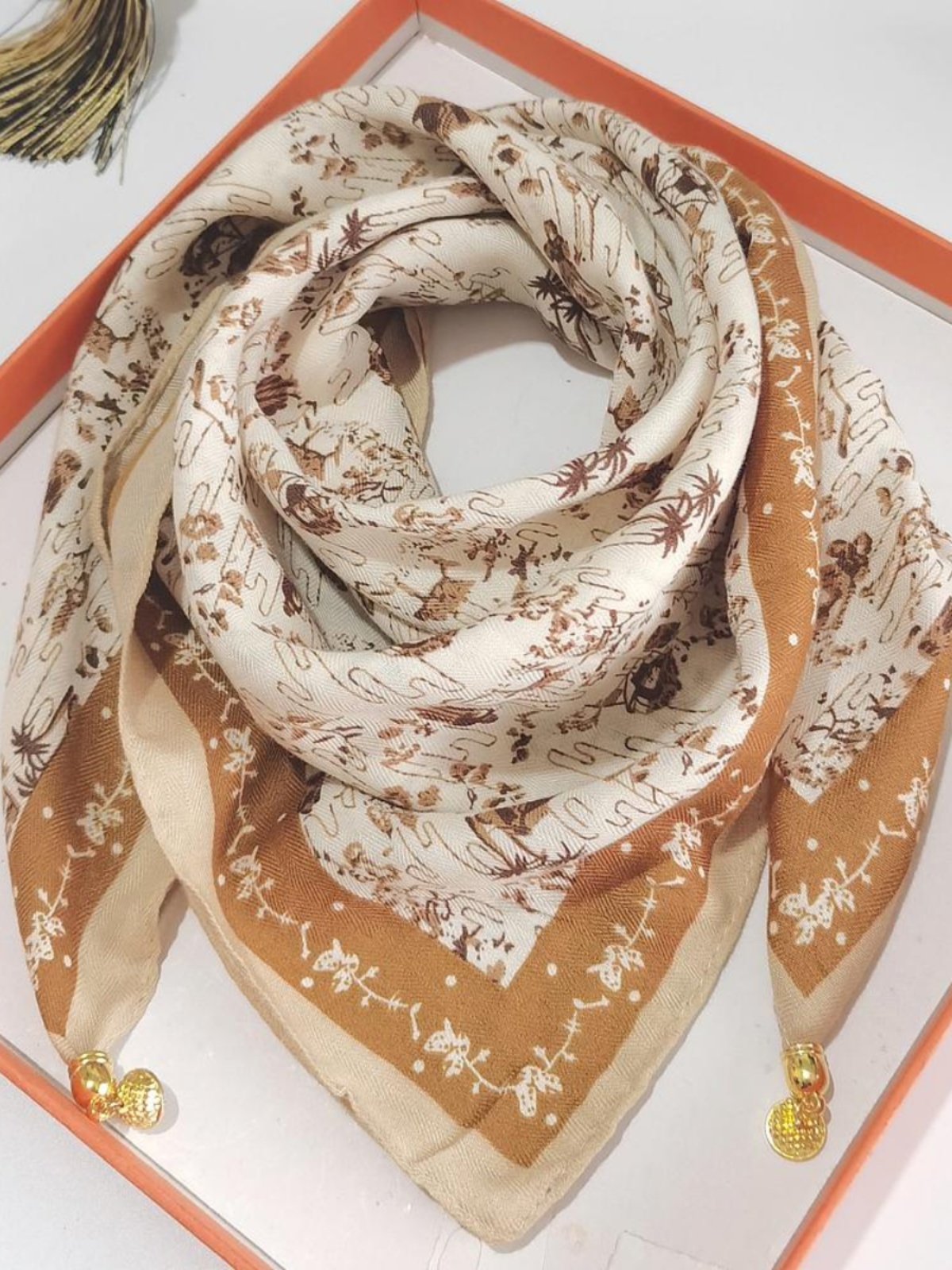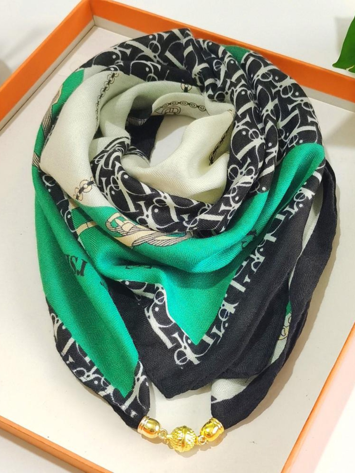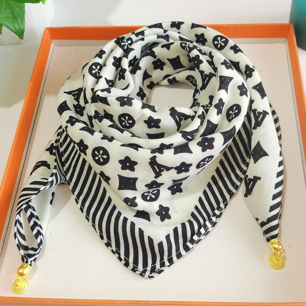 热卖磁吸扣方巾三角丝巾围巾女春夏季护颈棉麻金球百搭送闺蜜轻奢礼物