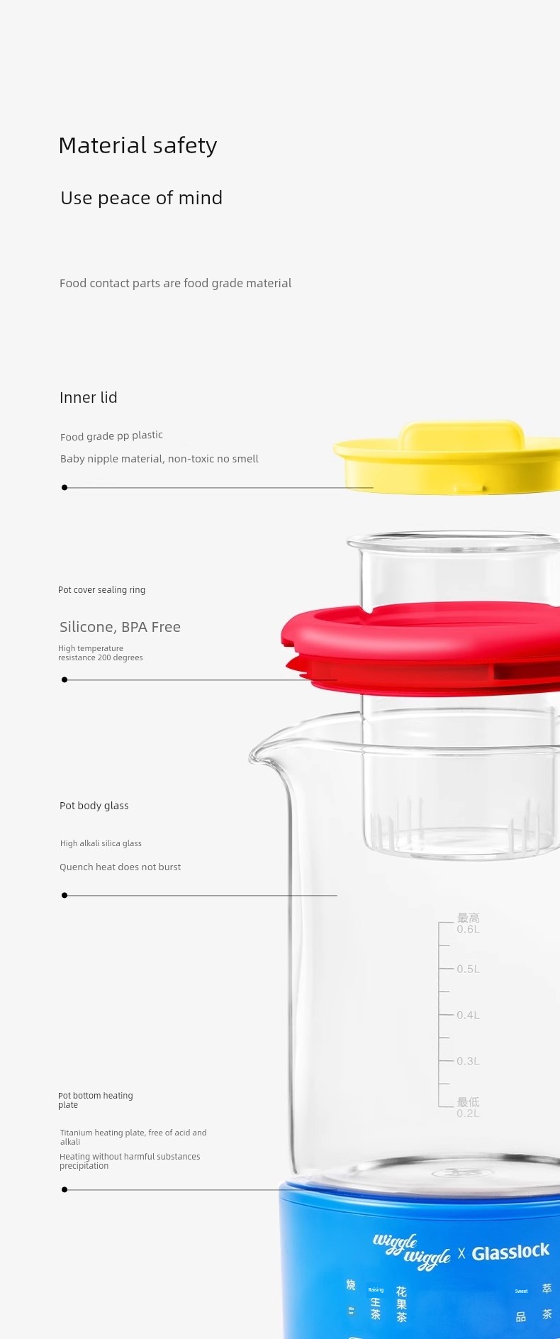 热卖Glasslock盖朗&WiggleWiggle联名迷你养生壶办公室小型煮茶烧水壶