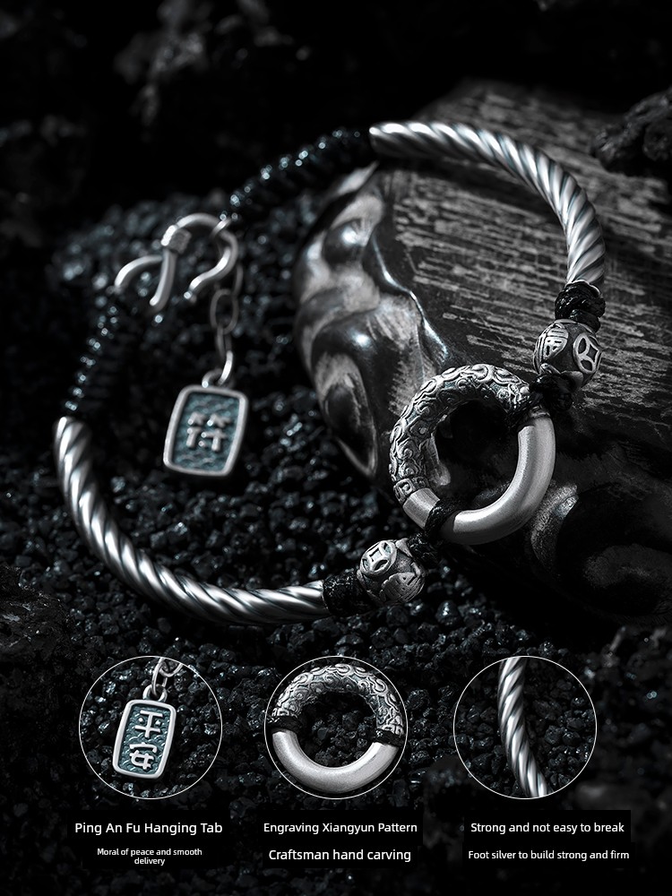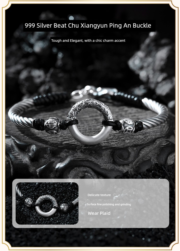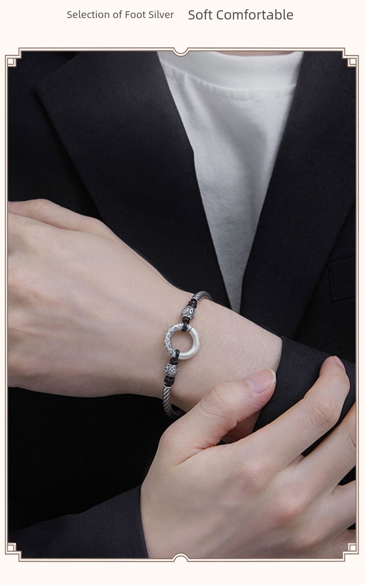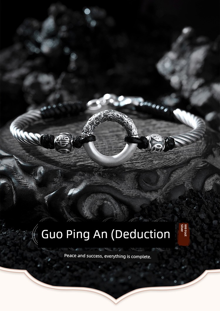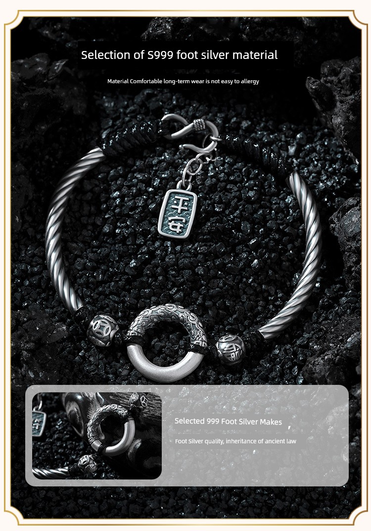 热卖老泰银S999足银手链男款平安扣纯银高级感国风手绳生日送男友礼物