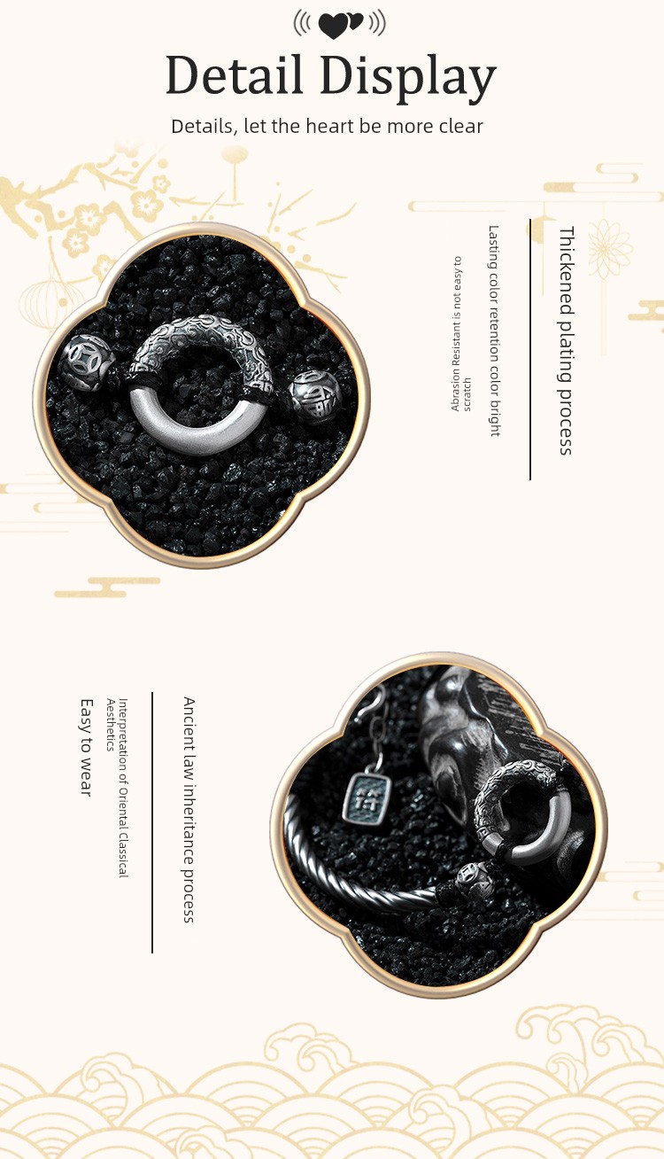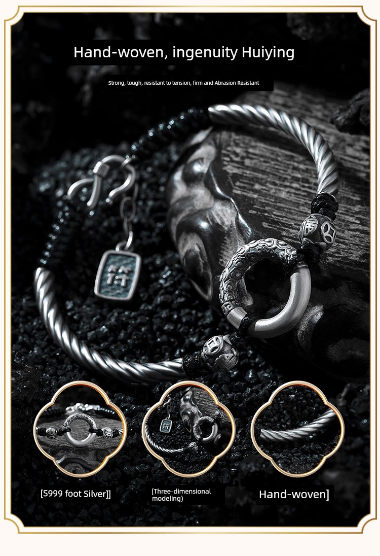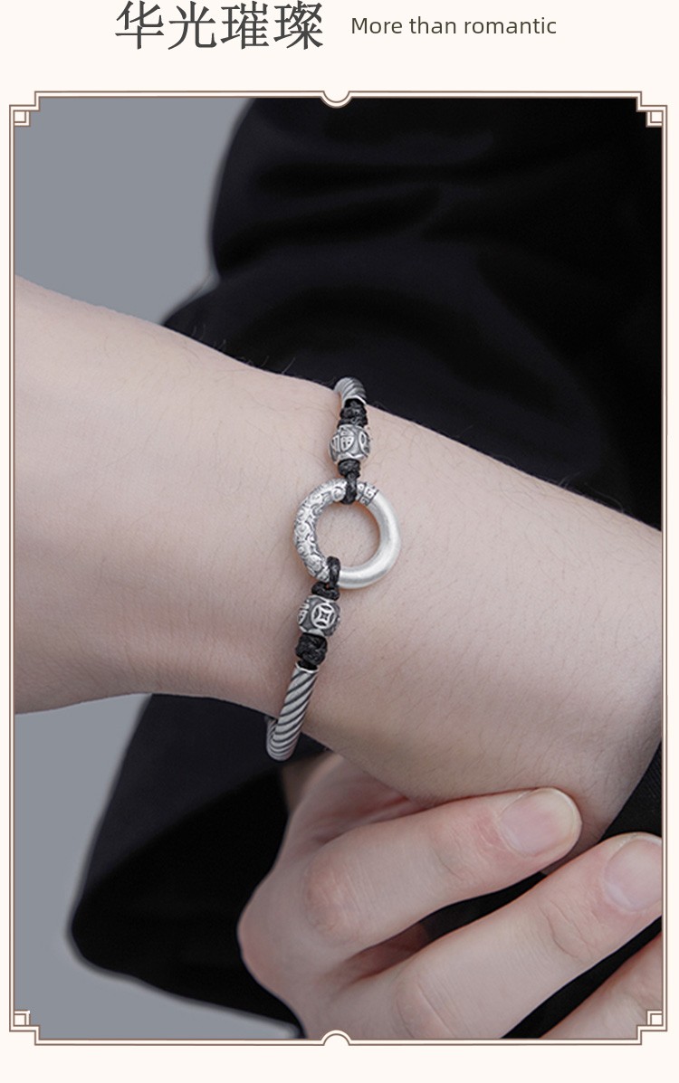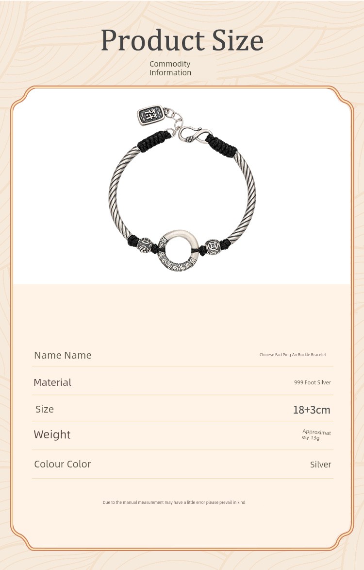 热卖老泰银S999足银手链男款平安扣纯银高级感国风手绳生日送男友礼物