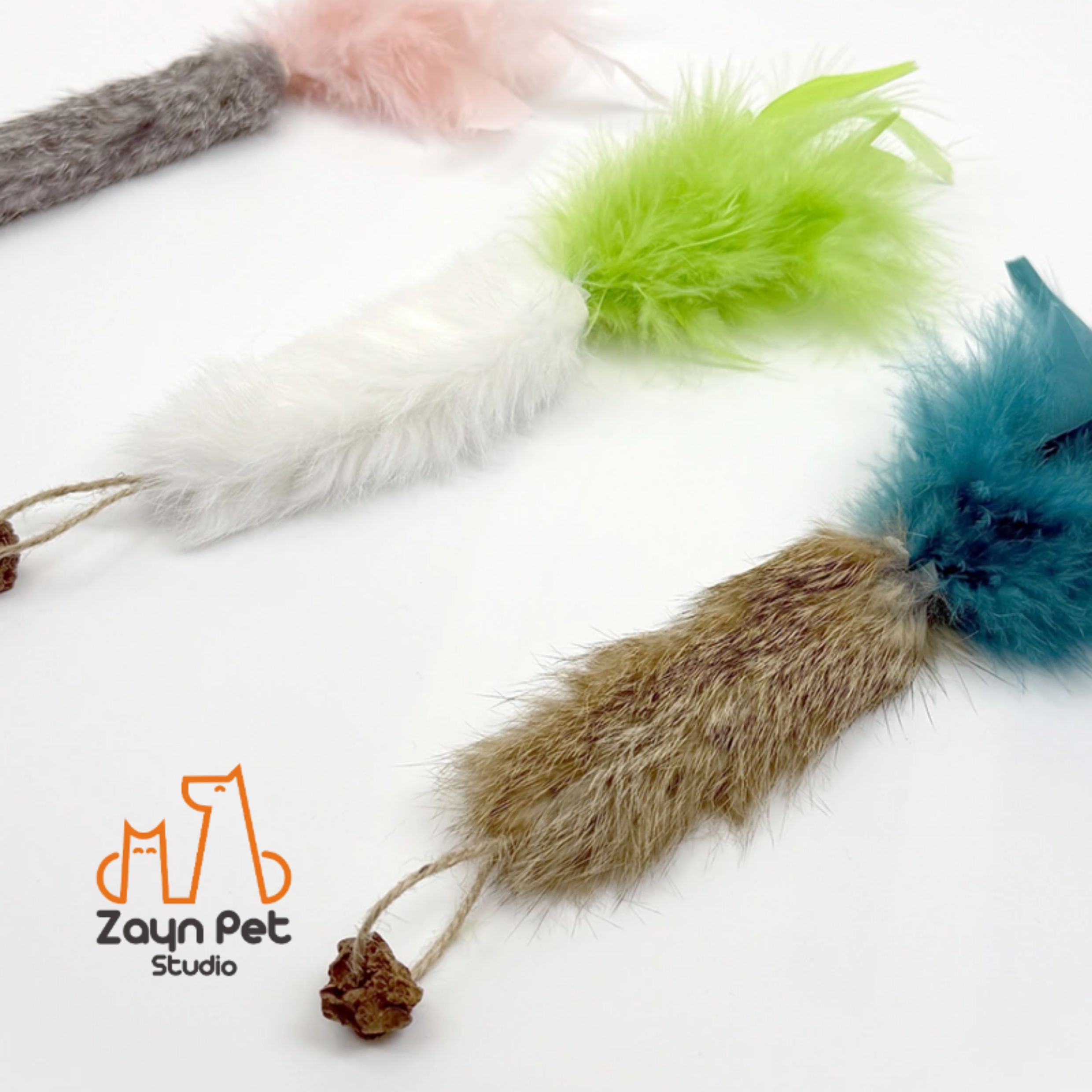 热卖Zayn咱吖丨猫の小萝卜兔毛羽毛玩具虫瘿果耐抓咬猫咪玩具用品自嗨