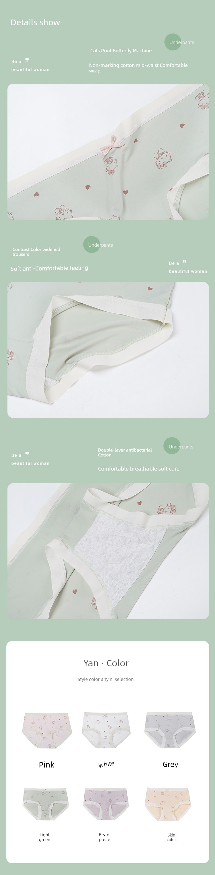 款号: N6606卡通猫冰丝内裤(9.26)