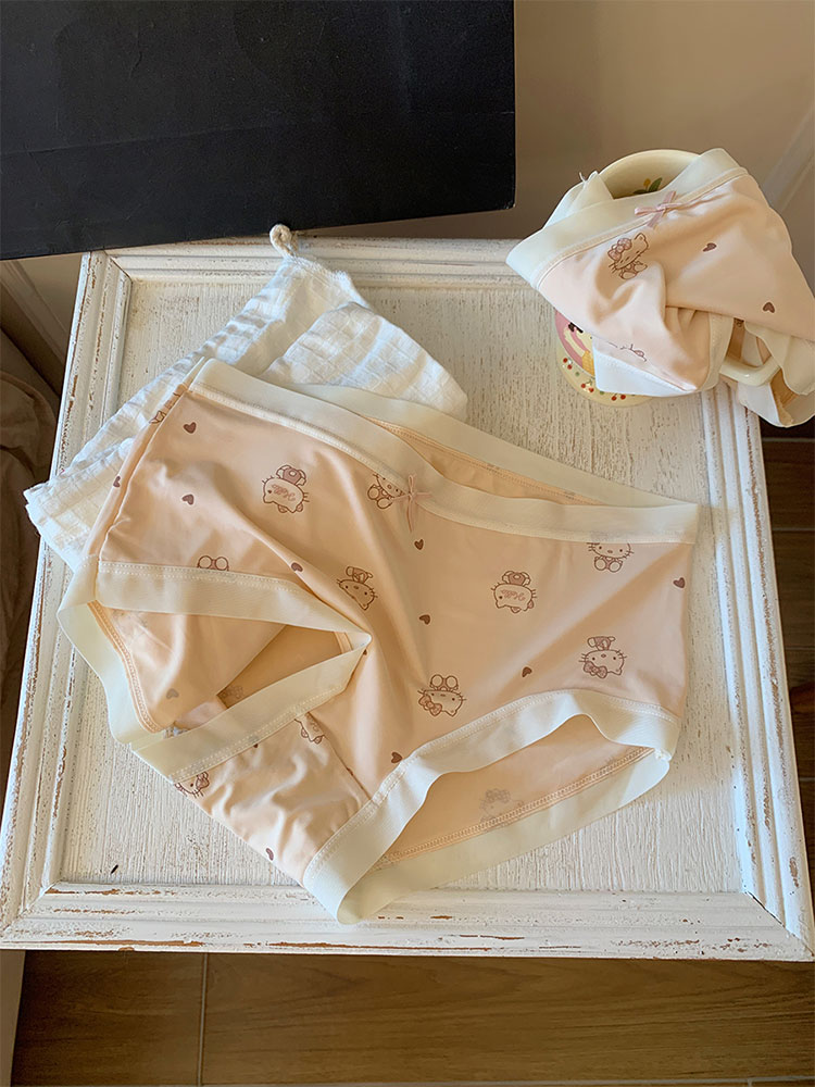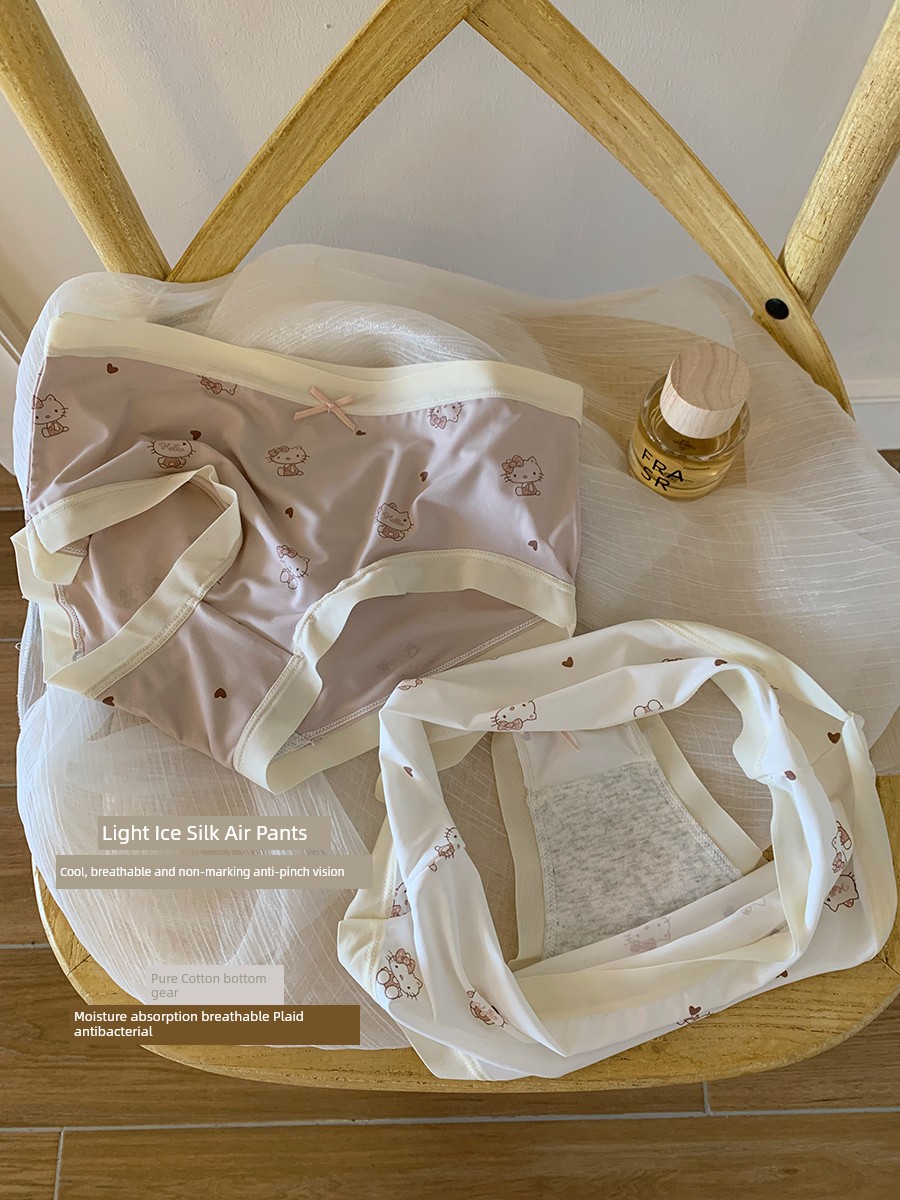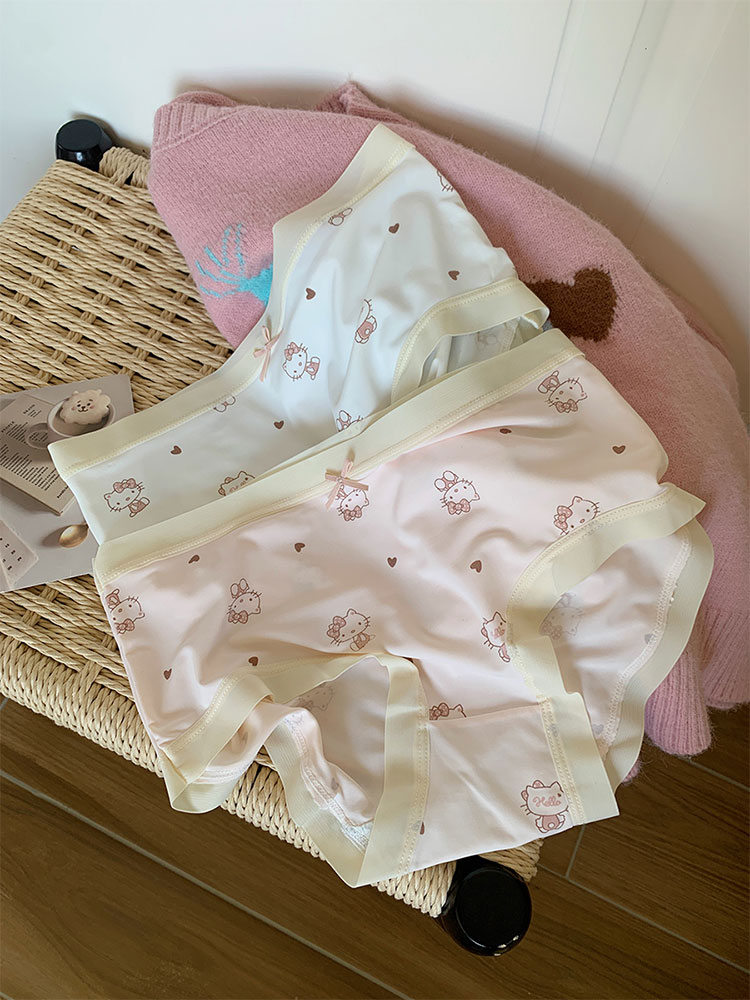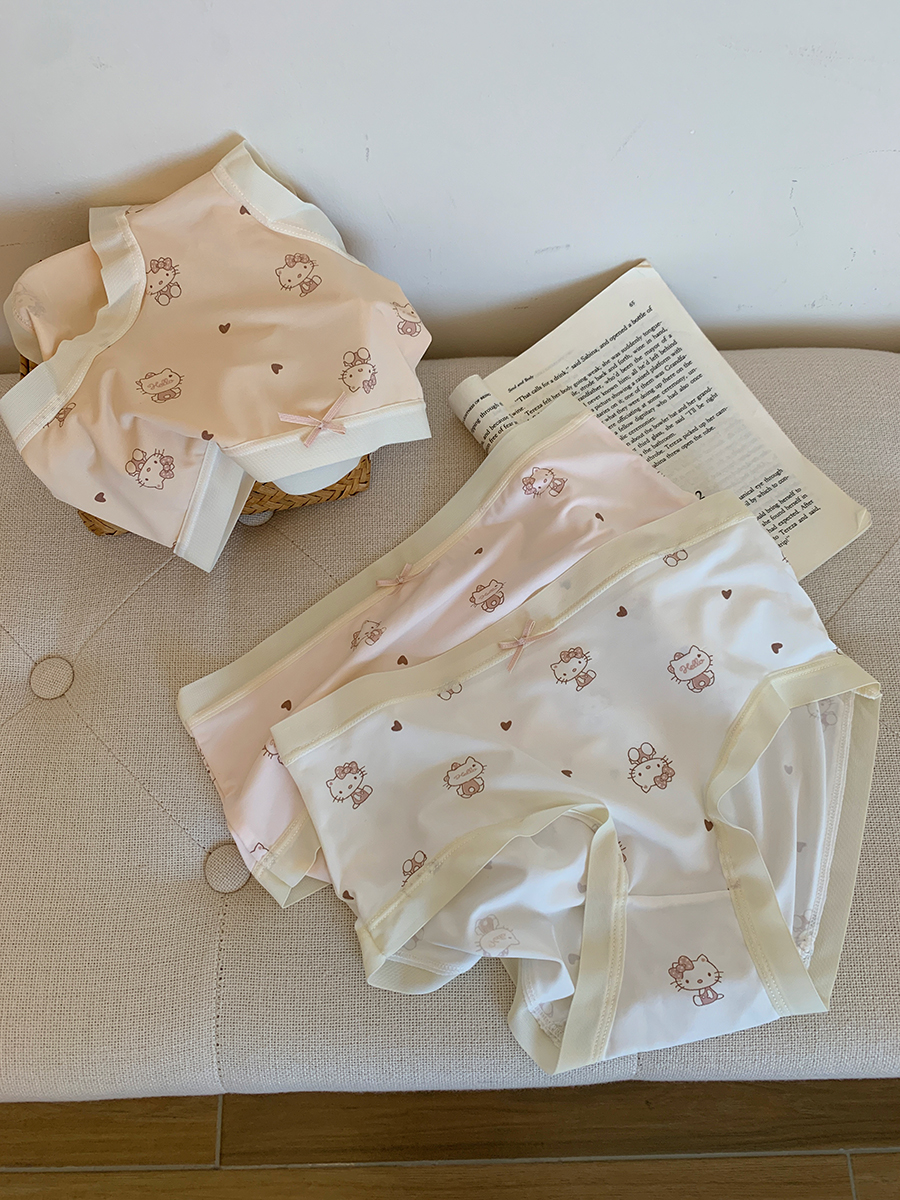 热卖馨帮帮Bra 甜美可爱卡通猫咪冰丝内裤女纯棉裆透气抑菌学生三角裤