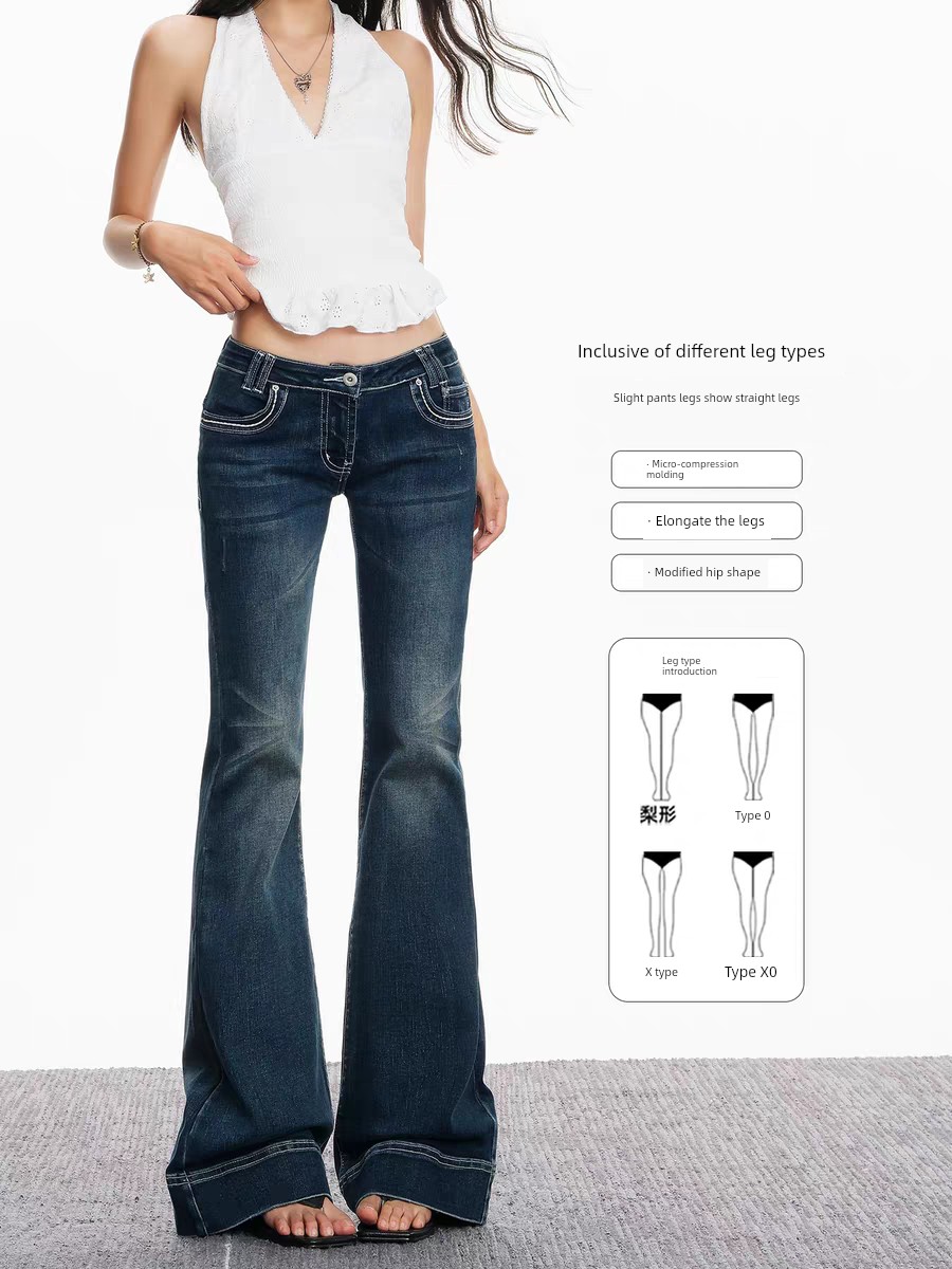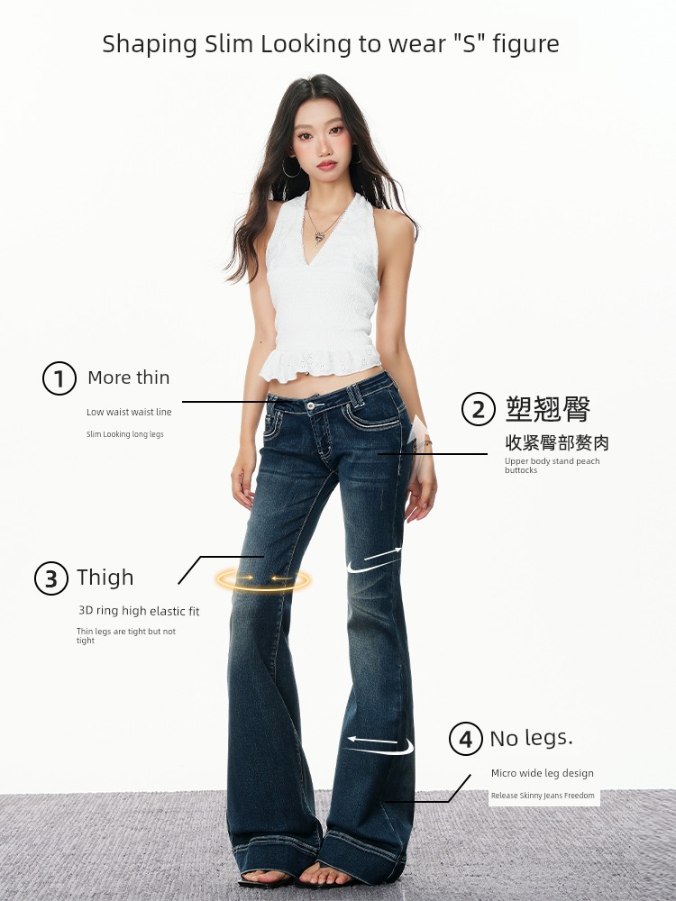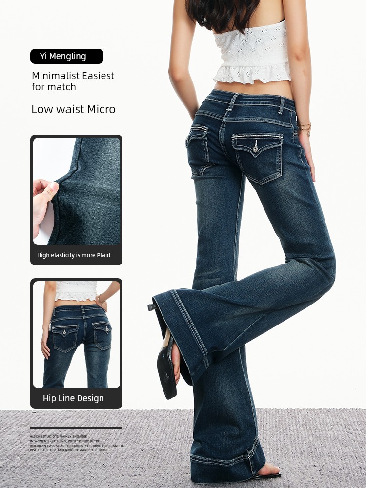 热卖易梦玲同款低腰微喇牛仔裤女秋2025新款美式辣妹显瘦弹力喇叭裤子